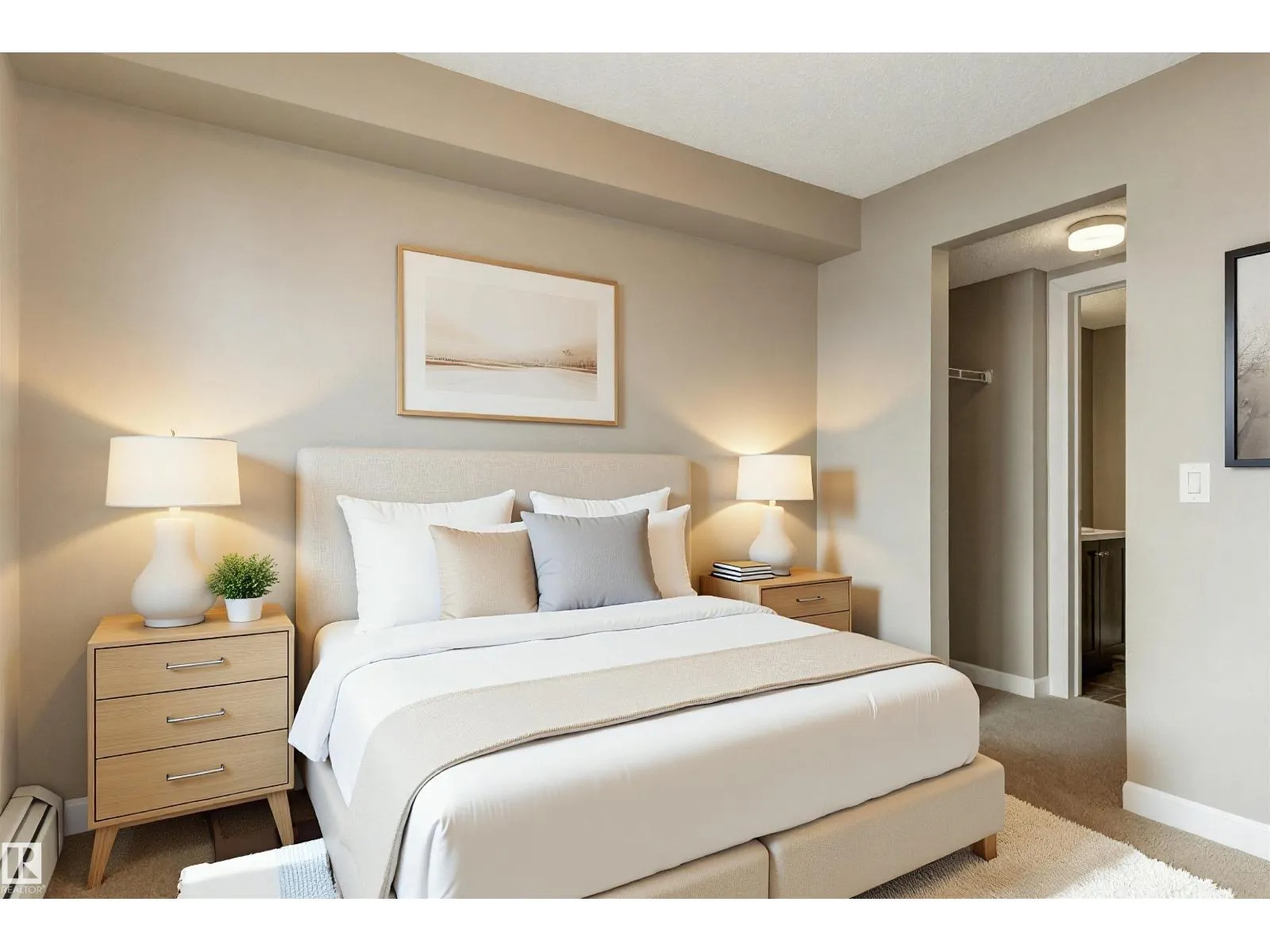 Spacious 2-bed, 2-bath condo in Windermere Village offering 858 sq ft of comfortable second-floor living with plenty of natural light This unit includes two assigned parking stallsâone underground and one surfaceâalong with a convenient storage room. The kitchen provides generous cabinetry, and is open to the dining and living area. You'll also appreciate the neutral colours and in-suite laundry. Both bedrooms feature walk-through closets and full ensuite bathrooms, creating an ideal setup for roommates, families, or guests. Located minutes from schools, shopping, and everyday amenities, with quick access to the Anthony Henday. Condo fees are $560.21/month, including heat and water. A great opportunity for first-time buyers or investors in a desirable community. (id:27476)