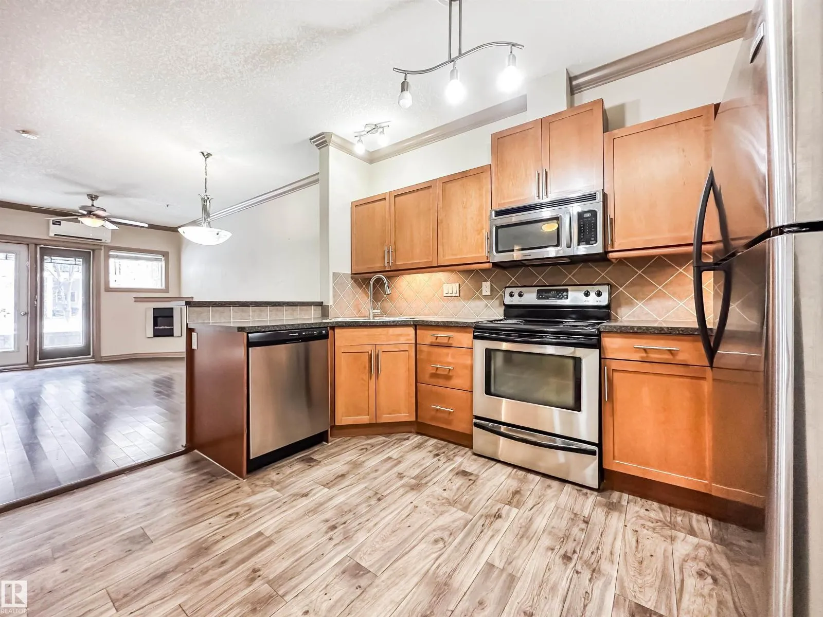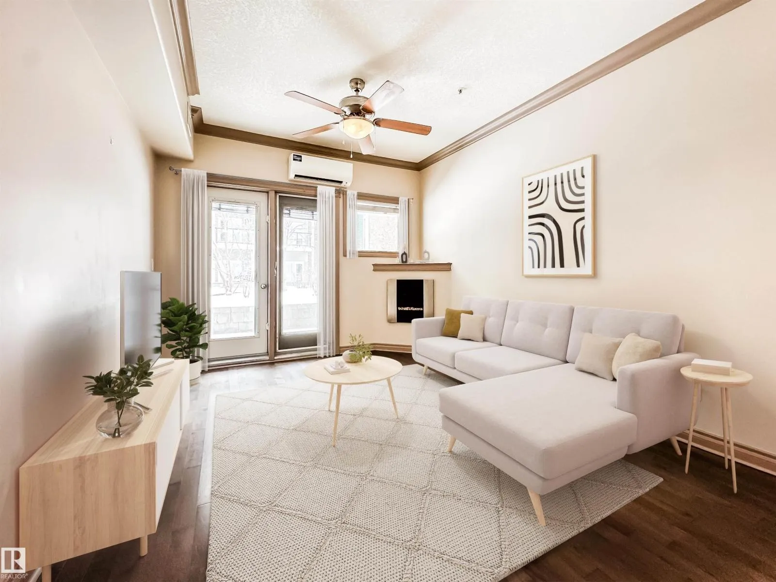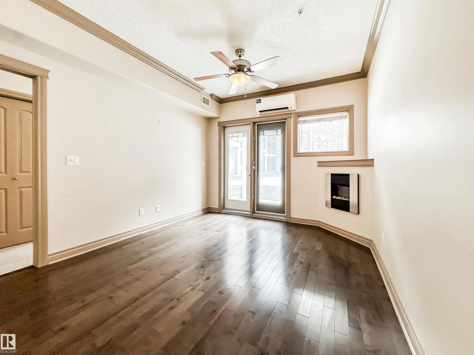 COURTYARD VIEWS & WALKABLE UNIVERSITY LOCATION! This bright and updated 2-bedroom, 2-bath condo offers the perfect blend of comfort and lifestyle. The open-concept layout features hardwood floors, an electric fireplace, and a spacious living and dining area that flows to your private patio overlooking the landscaped courtyard and fountain, a favourite spot in the summer. The kitchen offers stainless steel appliances, plenty of counter space, and updated flooring (2018). The primary bedroom includes a walk-in closet and full ensuite, while the second bedroom and bath work perfectly for guests, roommates, or a home office. In-suite laundry, excellent storage, and underground parking included. Updates: dishwasher (2023), heating coil (2022), and A/C coil (2025). Walk to the University of Alberta, Whyte Ave, the Strathcona Farmersâ Market, and the 99 Street microbreweries. Welcome home! (id:27476)