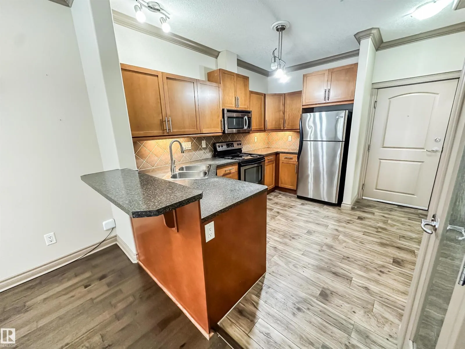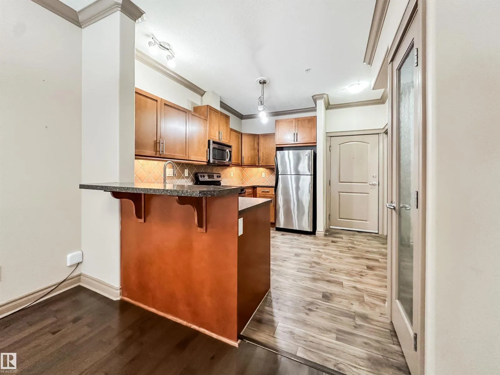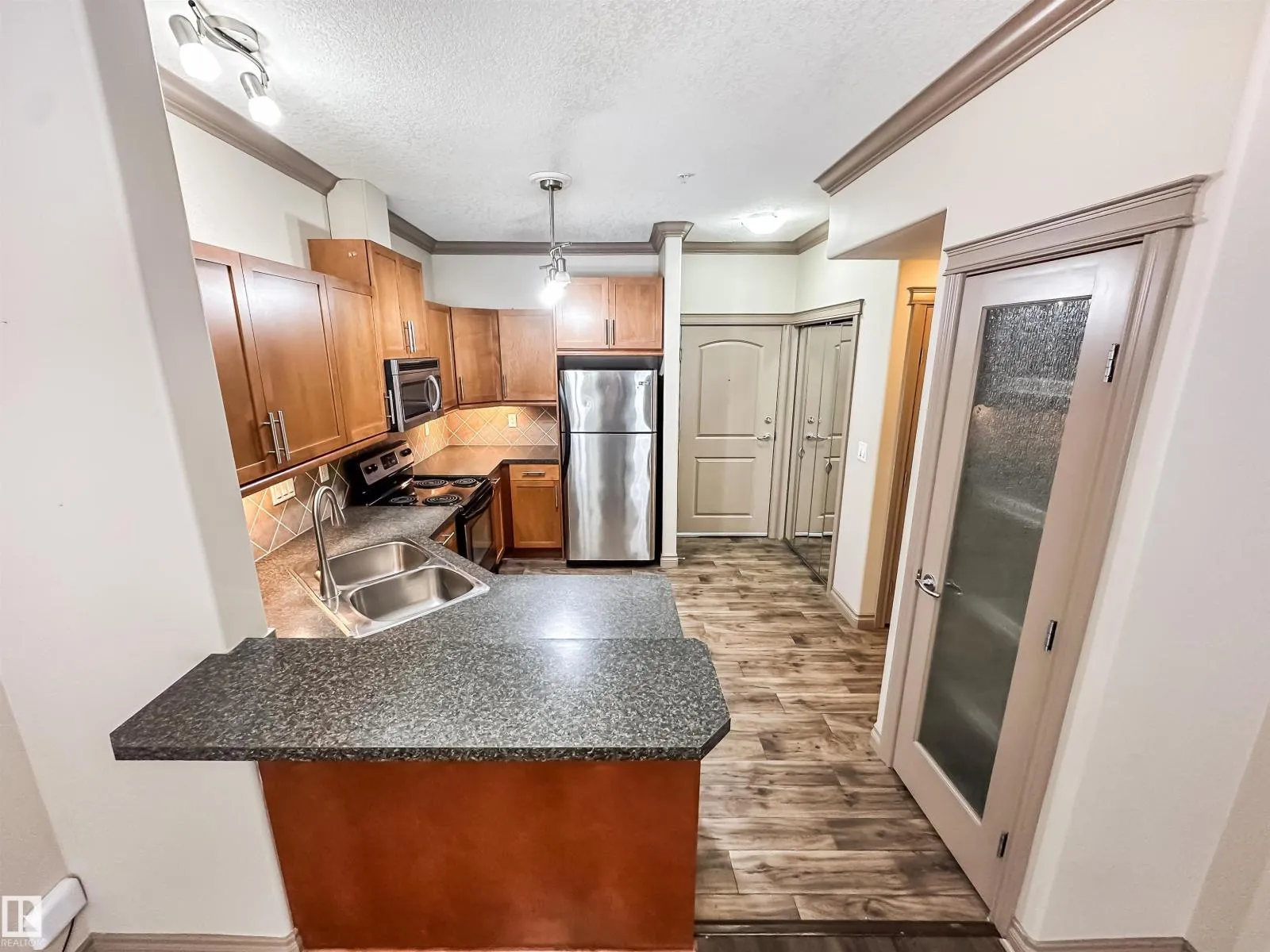 COURTYARD VIEWS & WALKABLE UNIVERSITY LOCATION! This bright and updated 2-bedroom, 2-bath condo offers the perfect blend of comfort and lifestyle. The open-concept layout features hardwood floors, an electric fireplace, and a spacious living and dining area that flows to your private patio overlooking the landscaped courtyard and fountain, a favourite spot in the summer. The kitchen offers stainless steel appliances, plenty of counter space, and updated flooring (2018). The primary bedroom includes a walk-in closet and full ensuite, while the second bedroom and bath work perfectly for guests, roommates, or a home office. In-suite laundry, excellent storage, and underground parking included. Updates: dishwasher (2023), heating coil (2022), and A/C coil (2025). Walk to the University of Alberta, Whyte Ave, the Strathcona Farmersâ Market, and the 99 Street microbreweries. Welcome home! (id:27476)
