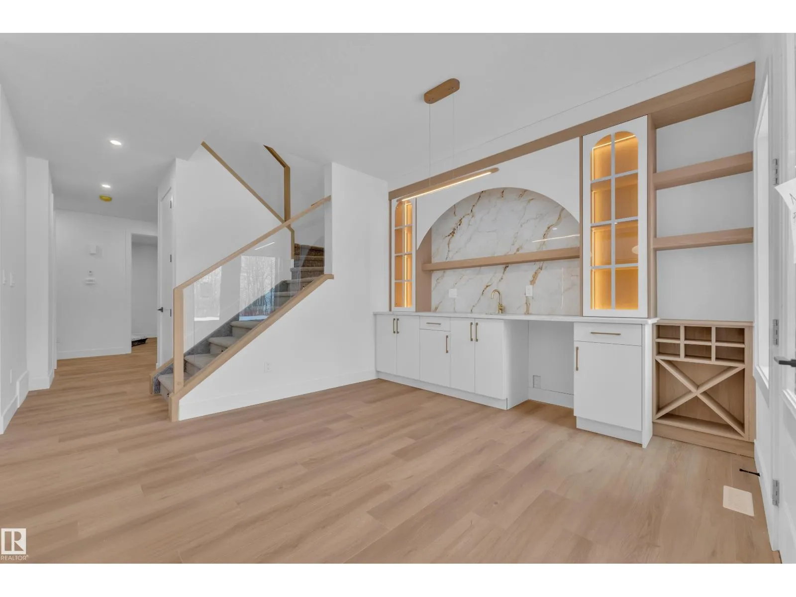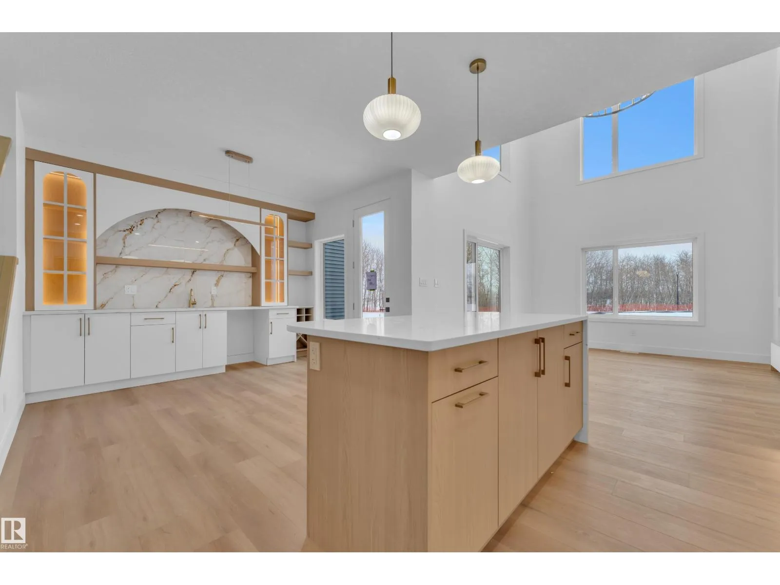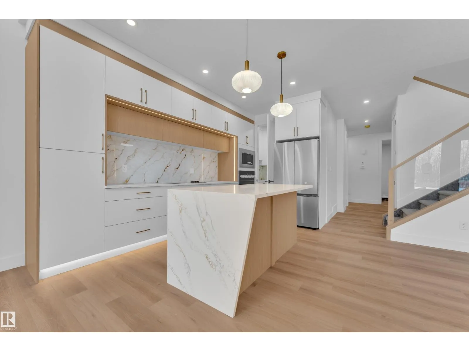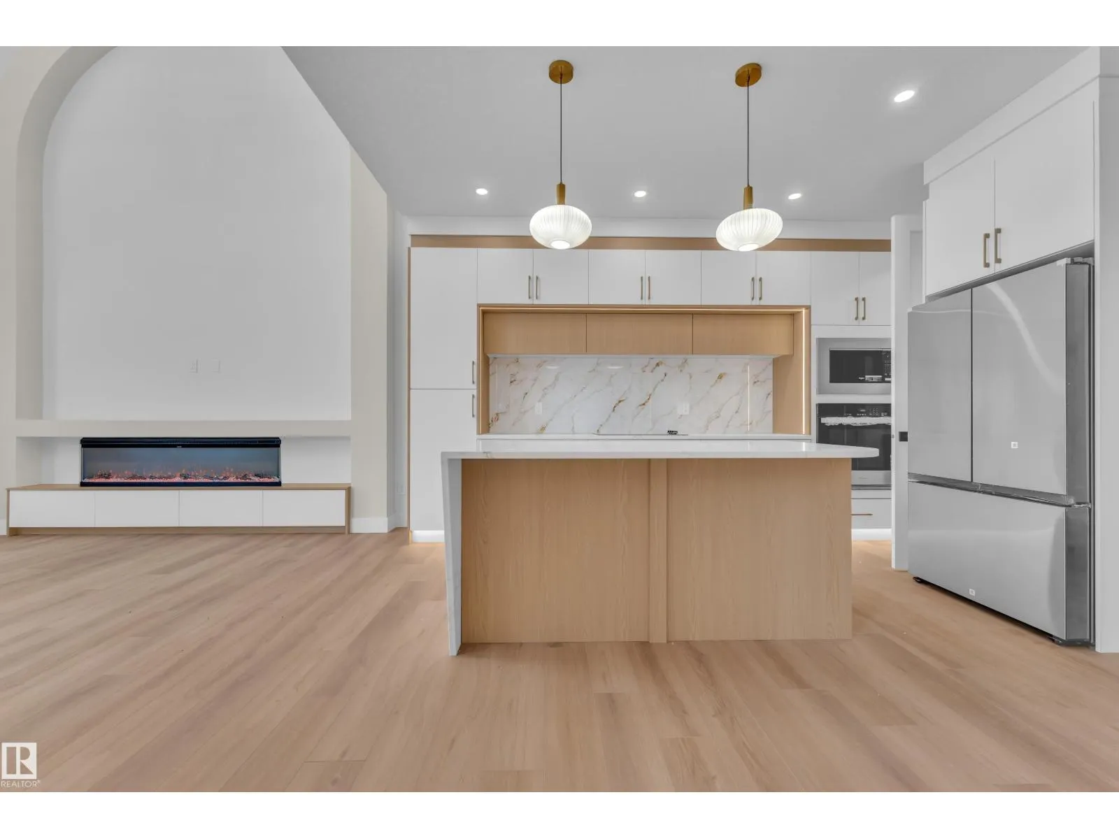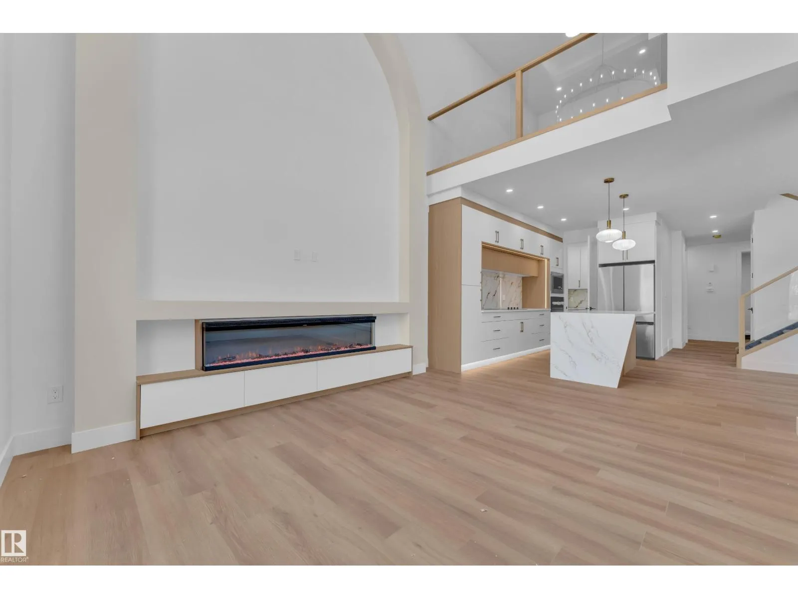 Stunning custom-built home located in the sought-after community of Alces. This beautiful 2 storey home features an open-concept layout with modern finishings throughout. The main floor offers a FULL BED/DEN and a 3 PC bathroom, along with an elegantly finished MODULAR KITCHEN with APPLIANCES , a separate SPICE KITCHEN, and an EXTENDED KITCHEN in the dining area. The OPEN TO BELOW living area features a stunning arc-designed feature wall with a 3-sided fireplace, complemented by large windows that bring in abundant natural sunlight. The second floor features a spacious Master bedroom with a Vaulted Ceiling, feature wall with ambient lighting and a 5PC Ensuite. 2 additional Bedrooms share a common 3-PC bathroom. A conveniently located upstairs Laundry Room and a Bonus Room provide the perfect space for family living and entertainment. The Basement includes 9-ft ceilings, two windows, and a Separate Entrance, offering excellent future development potential. All WINDOW BLINDS are included. (id:27476)
