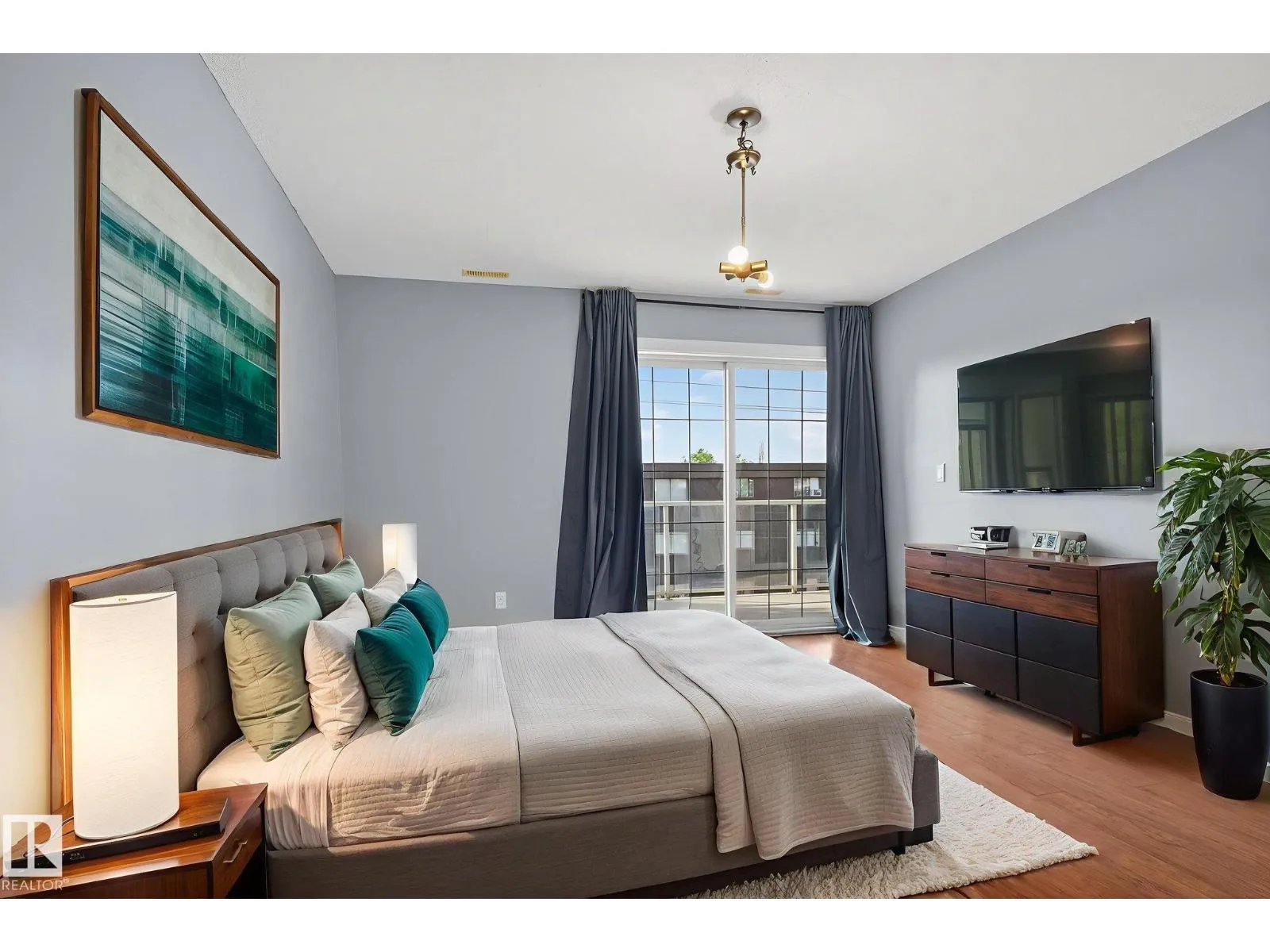 Welcome to Glenora Mansion! This spacious 1,125 sq ft condo offers 2 bedrooms plus a versatile denâperfect for a home office or guest space. Featuring 2 full bathrooms and 2 titled parking stalls, including one heated underground stall for winter comfort and one above-ground stall for added convenience. The open-concept layout creates a bright and functional living space that flows seamlessly to a large west-facing patio with a gas BBQ hookupâideal for relaxing or entertaining. Enjoy the comfort of in-suite laundry, air conditioning, and access to the buildingâs fully equipped fitness centre. The well-designed layout offers generous room sizes and great natural light throughout. Located just minutes from Grant MacEwan University, Rogers Place, Downtown, and LRT/public transit, this home offers exceptional convenience for professionals, students, or investors. A fantastic opportunity to enjoy comfortable condo living in a prime location. note: one or more photos have been virtually staged. (id:27476)