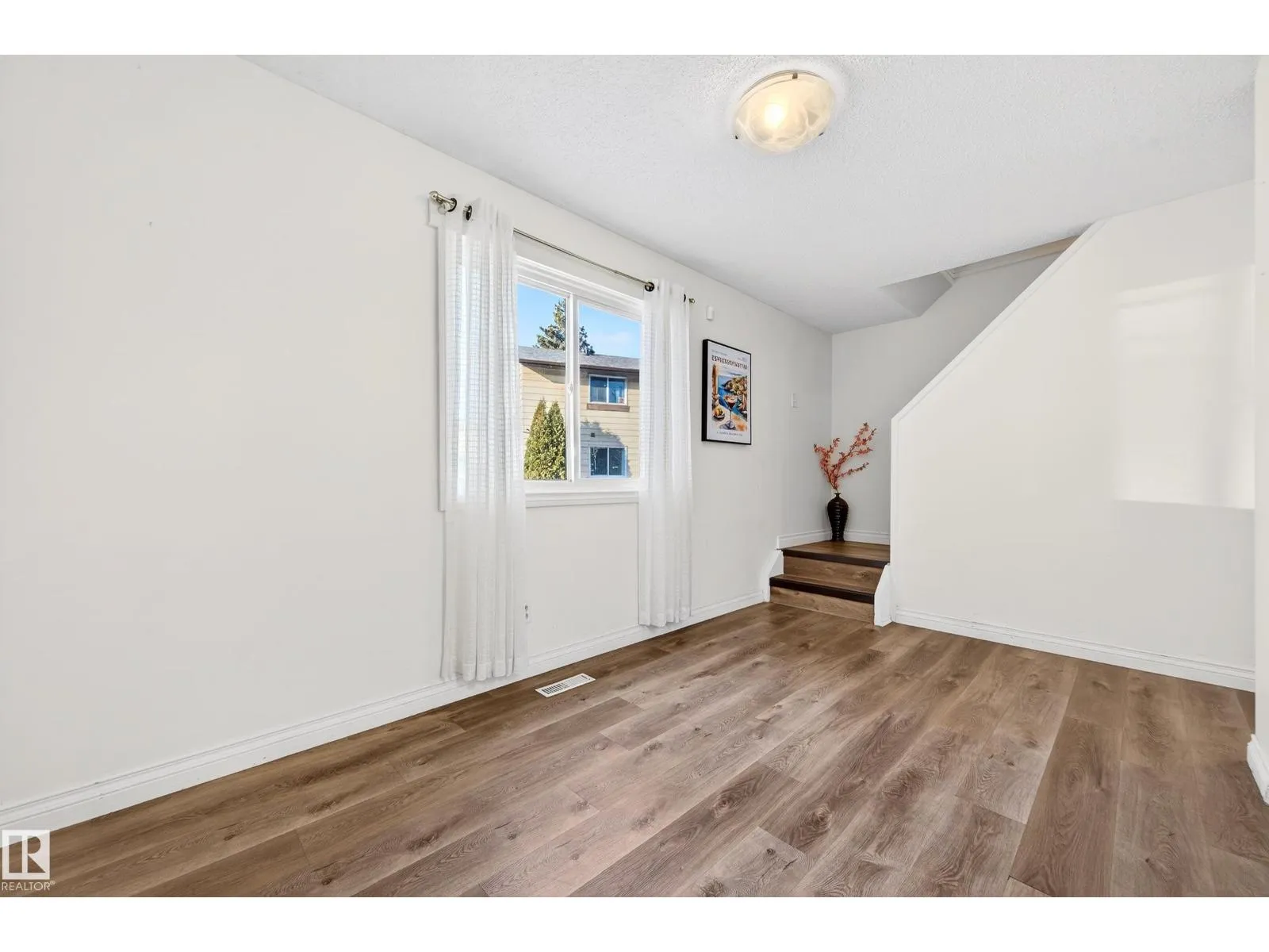 Welcome to 107 Woodstock, a bright two-storey townhome ideally located minutes from West Edmonton Mall and within walking distance to school, parks, shopping, and public transit. On the main level you enjoy a spacious living room with access to a private fenced yard, and a dining area open to the galley kitchen with updated countertops, backsplash, and refreshed cabinets. There is a main f 2-piece washroom and modern vinyl plank flooring throughout the living room, stairs, and upper hallway. Second level offers a large primary bedroom plus two additional bedrooms and an updated 4-piece bathroom. The almost finished basement provides a family room and plenty of storage space. A rare bonus is the private parking for 2â3 vehicles directly in front of the unit. Conveniently located near West Edmonton Mall, Collingwood Shopping Centre, schools, parks, and transit. Ideal for first-time buyers, young families, or investors. (id:27476)