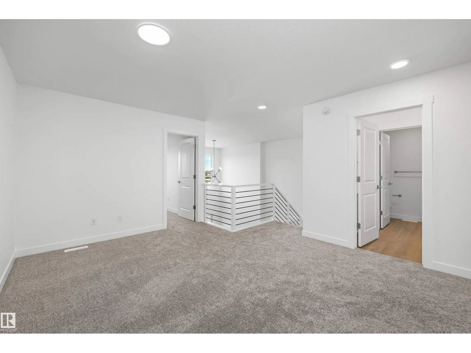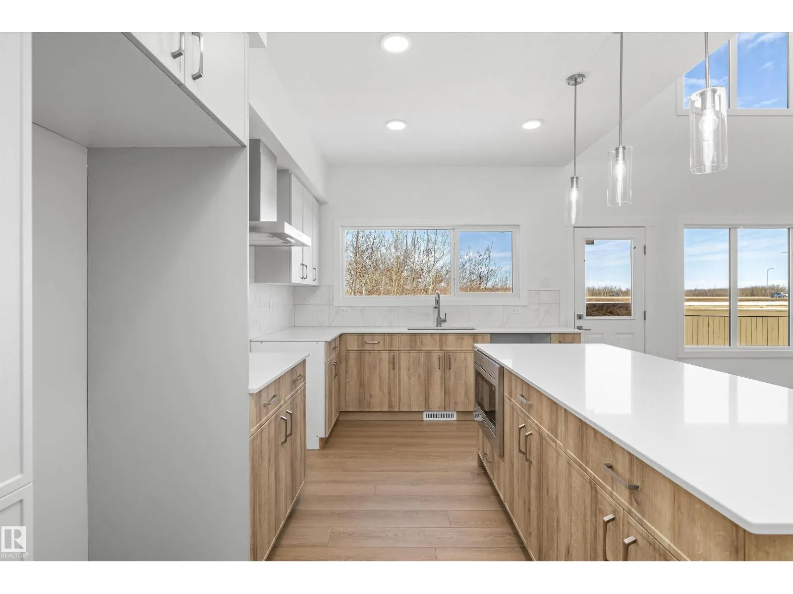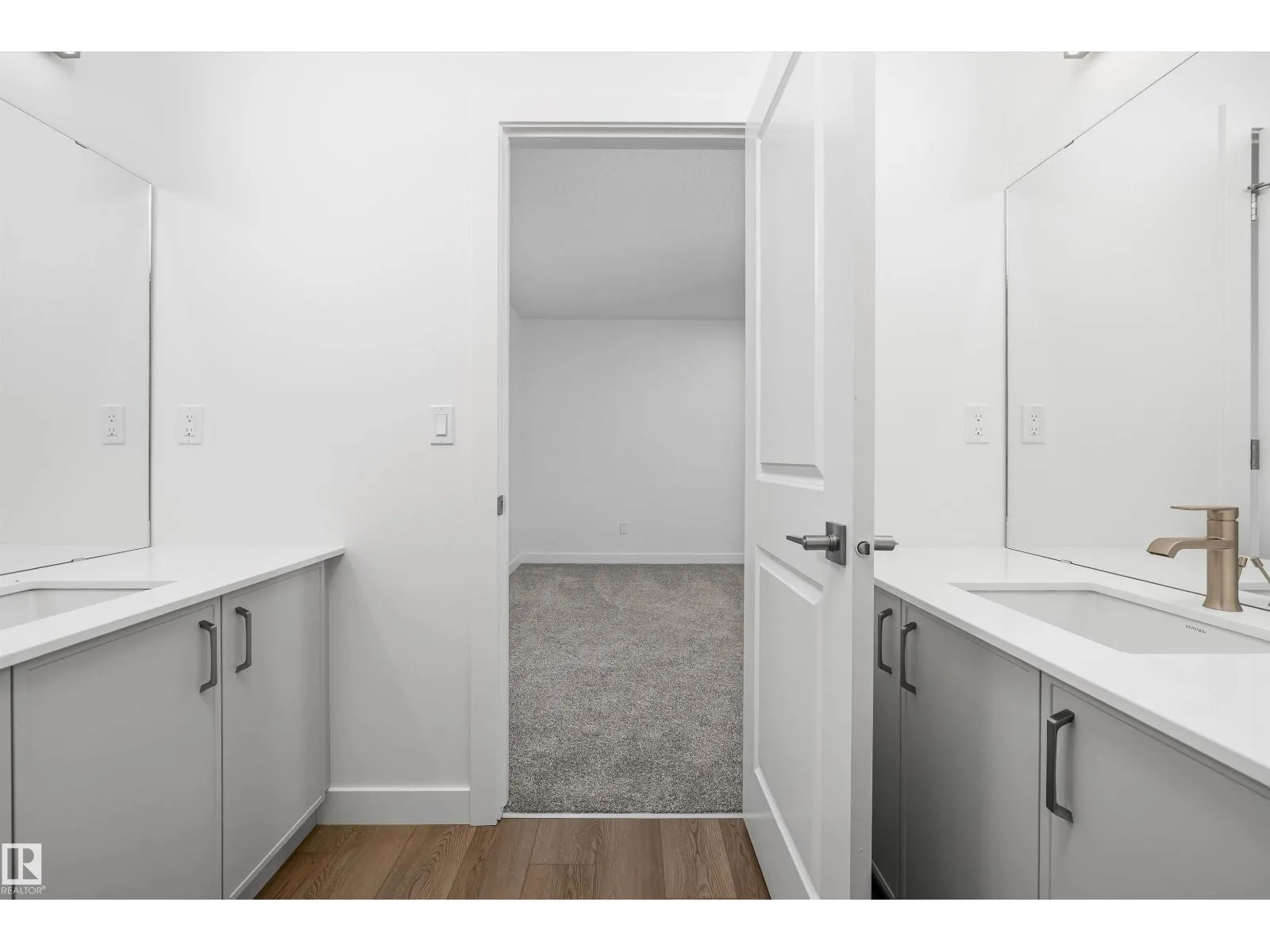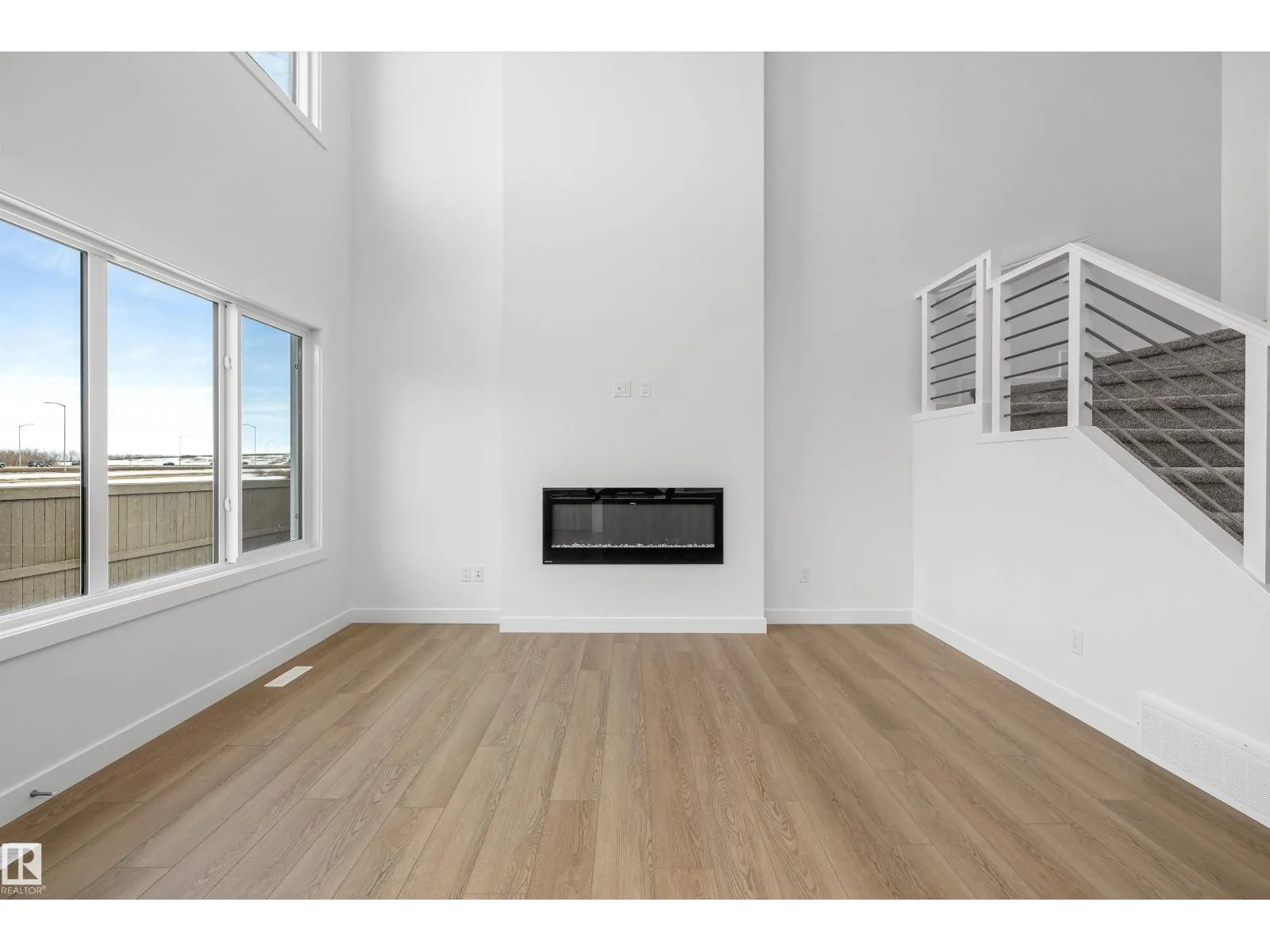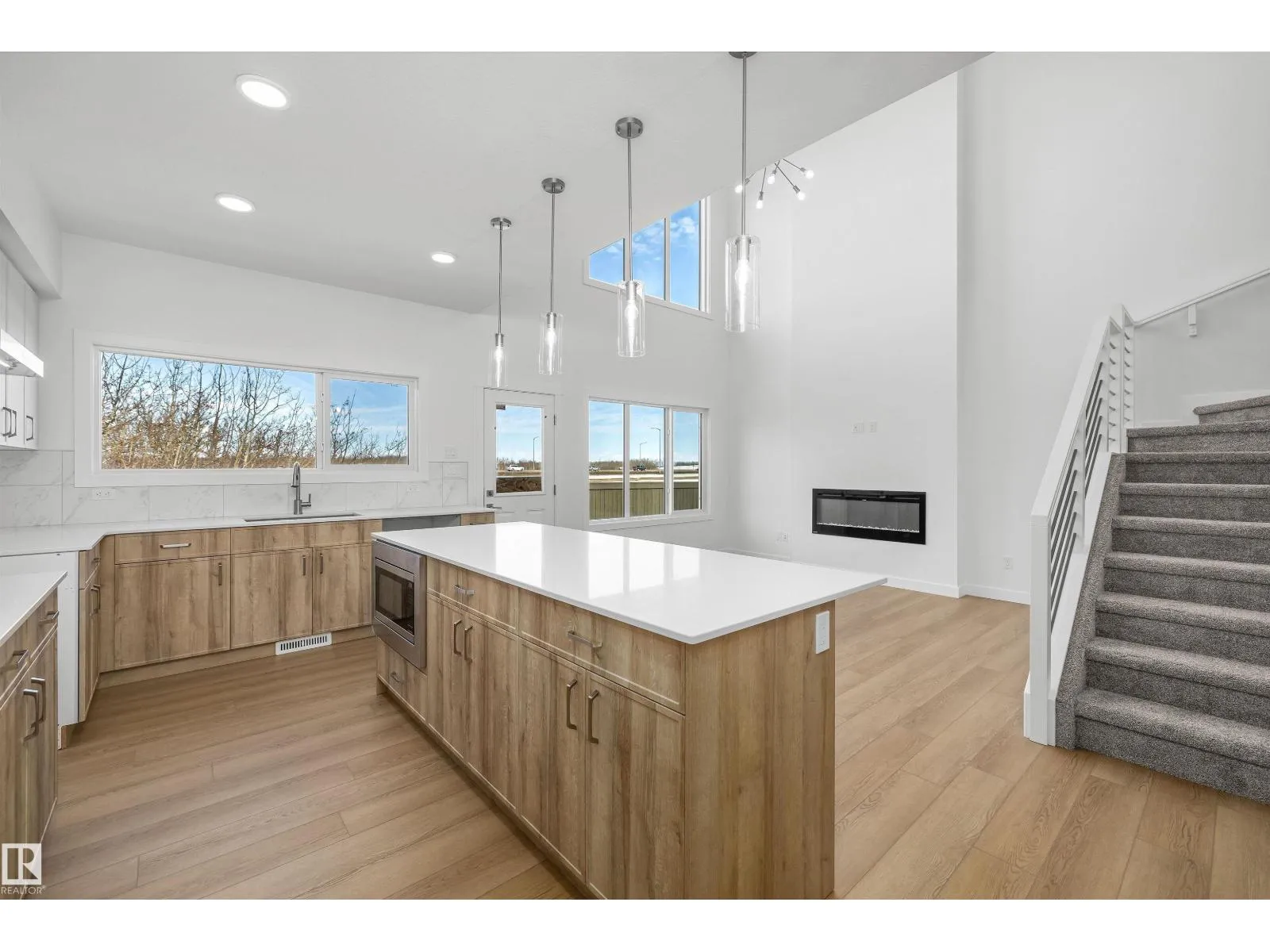 Built by Sterling Homes, this front-attached home in North Edmonton offers bright, modern living in a quiet, nature-focused community. Triple pane windows and 9â ceilings create an open feel on the main floor. A welcoming foyer leads to a flexible den and half bath, with a mudroom connecting to the kitchen. The rear great room features an electric fireplace and large windows overlooking the yard. The kitchen offers quartz countertops, a spacious island, full-height backsplash, chimney hood fan, built-in microwave, ceiling-height cabinetry, and a corner pantry. Upstairs, the primary suite includes walk-in closets and a 5-piece ensuite with double sinks, soaker tub, and shower. A bonus room, upper laundry, double-sink main bath, and two bedrooms complete the level. Finished with luxury vinyl plank flooring, upgraded railings, side entrance, garage with floor drain, and basement rough-ins, this home blends comfort and style in a sought-after North Edmonton neighbourhood. (id:27476)
