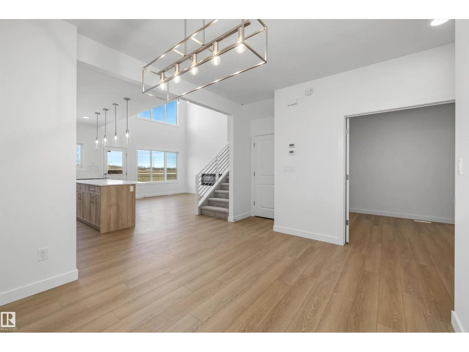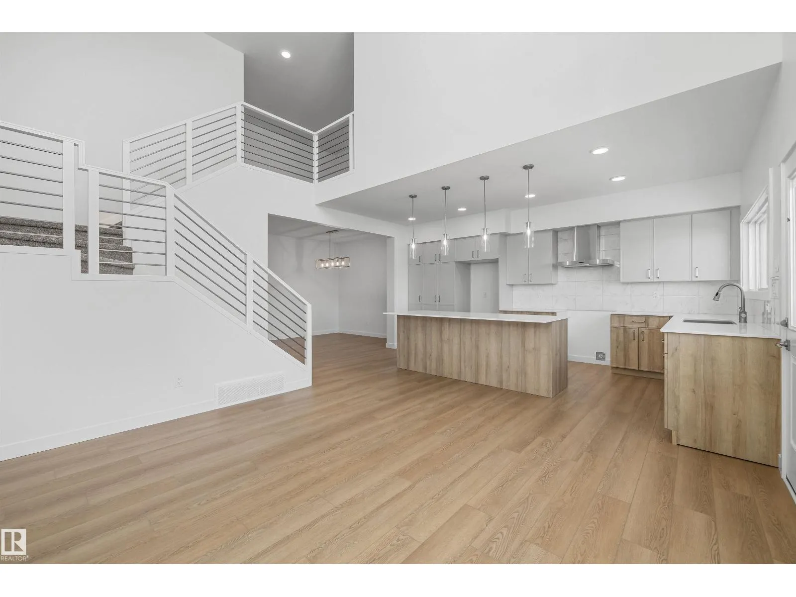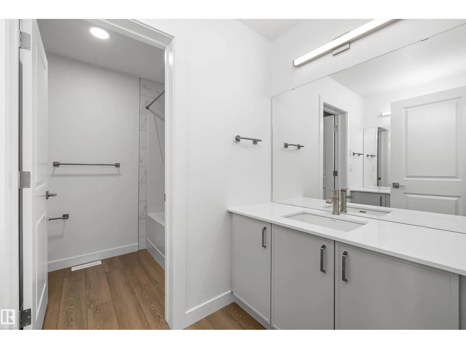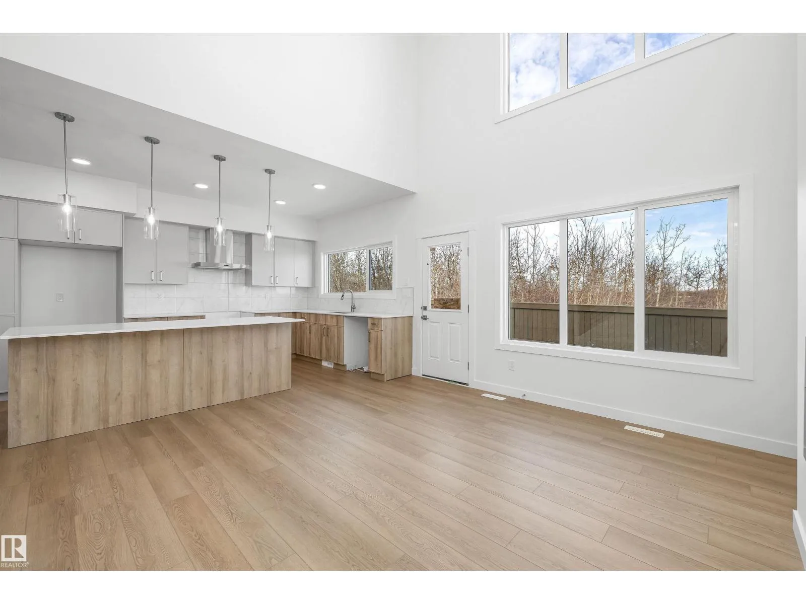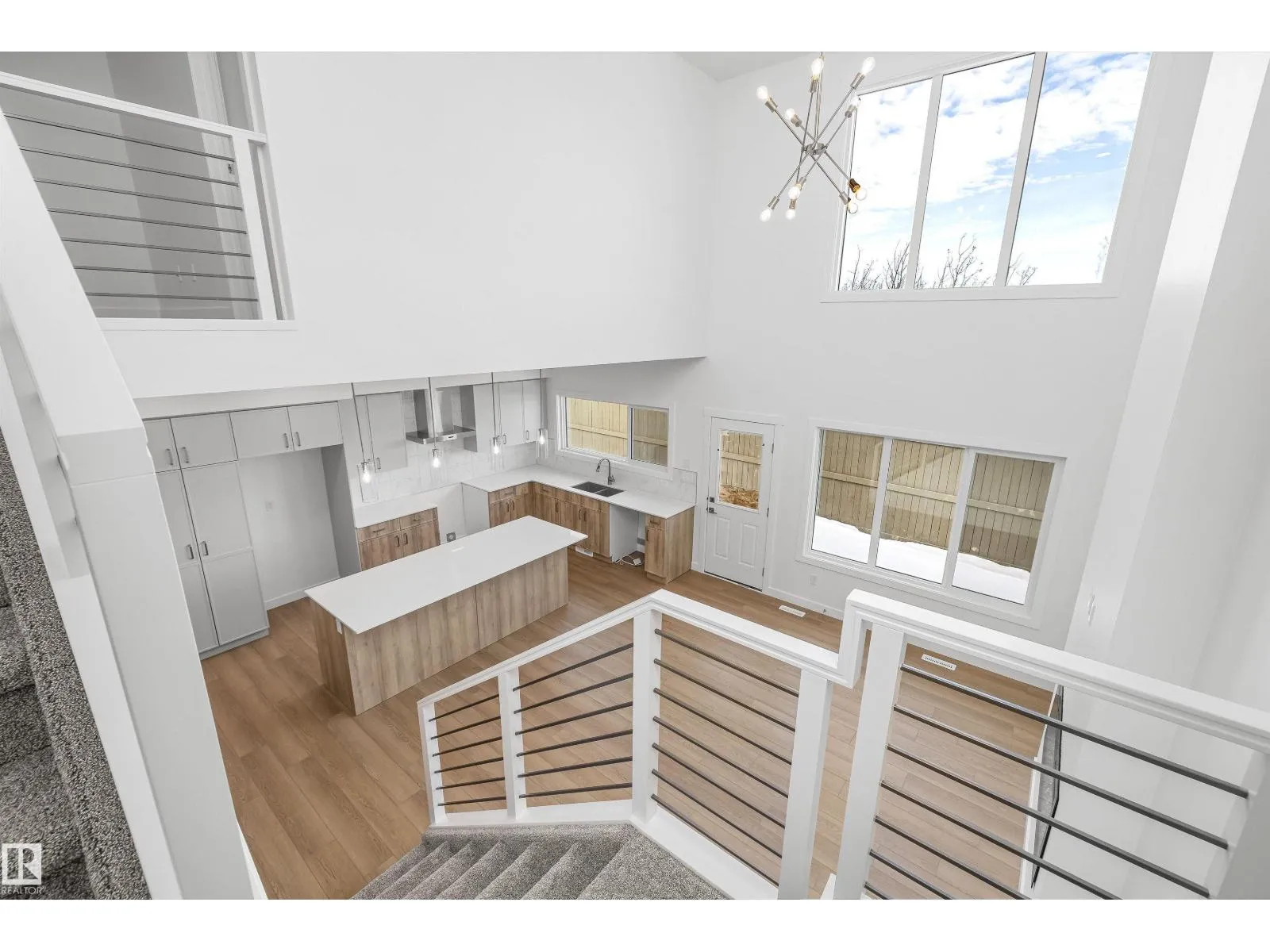 Built by Sterling Homes, this front-attached home in North Edmonton offers bright, modern living in a quiet, nature-focused community. Triple pane windows and 9â ceilings create an open feel on the main floor. A welcoming foyer leads to a flexible den and half bath, with a mudroom connecting to the kitchen. The rear great room features an electric fireplace and large windows overlooking the yard. The kitchen offers quartz countertops, a spacious island, full-height backsplash, chimney hood fan, built-in microwave, ceiling-height cabinetry, and a corner pantry. Upstairs, the primary suite includes walk-in closets and a 5-piece ensuite with double sinks, soaker tub, and shower. A bonus room, upper laundry, double-sink main bath, and two bedrooms complete the level. Finished with luxury vinyl plank flooring, upgraded railings, side entrance, garage with floor drain, and basement rough-ins, this home blends comfort and style in a sought-after North Edmonton neighbourhood. (id:27476)