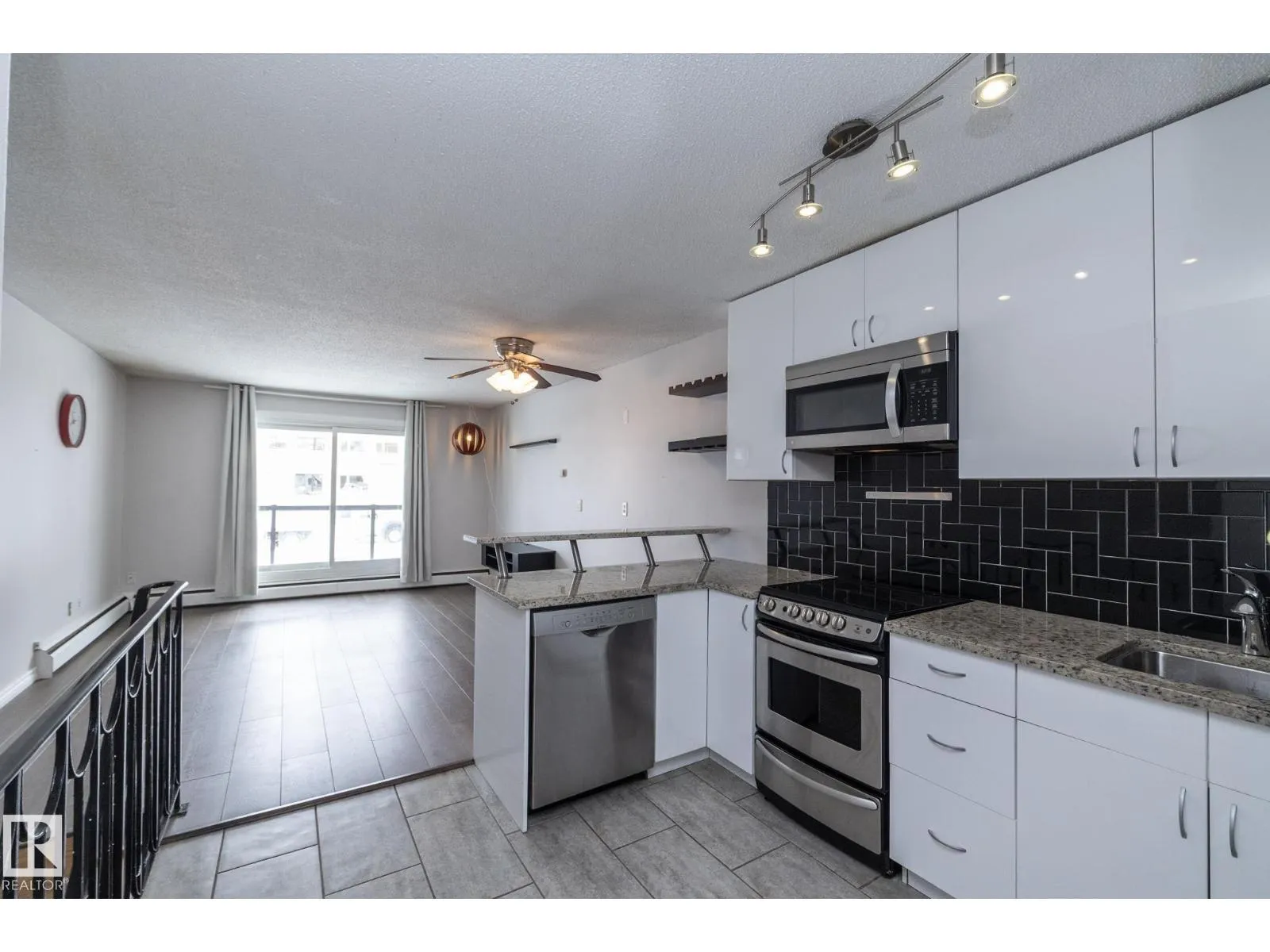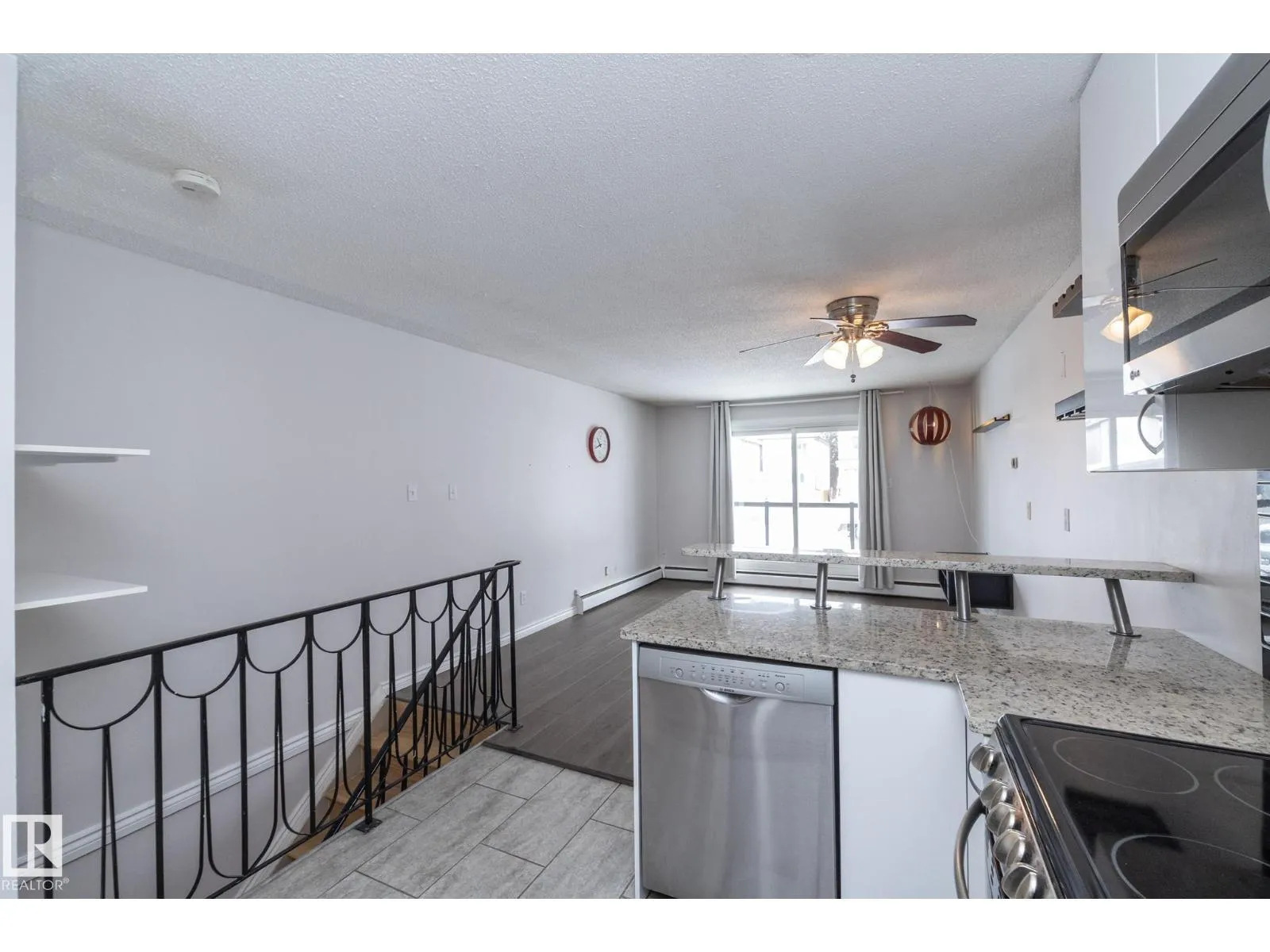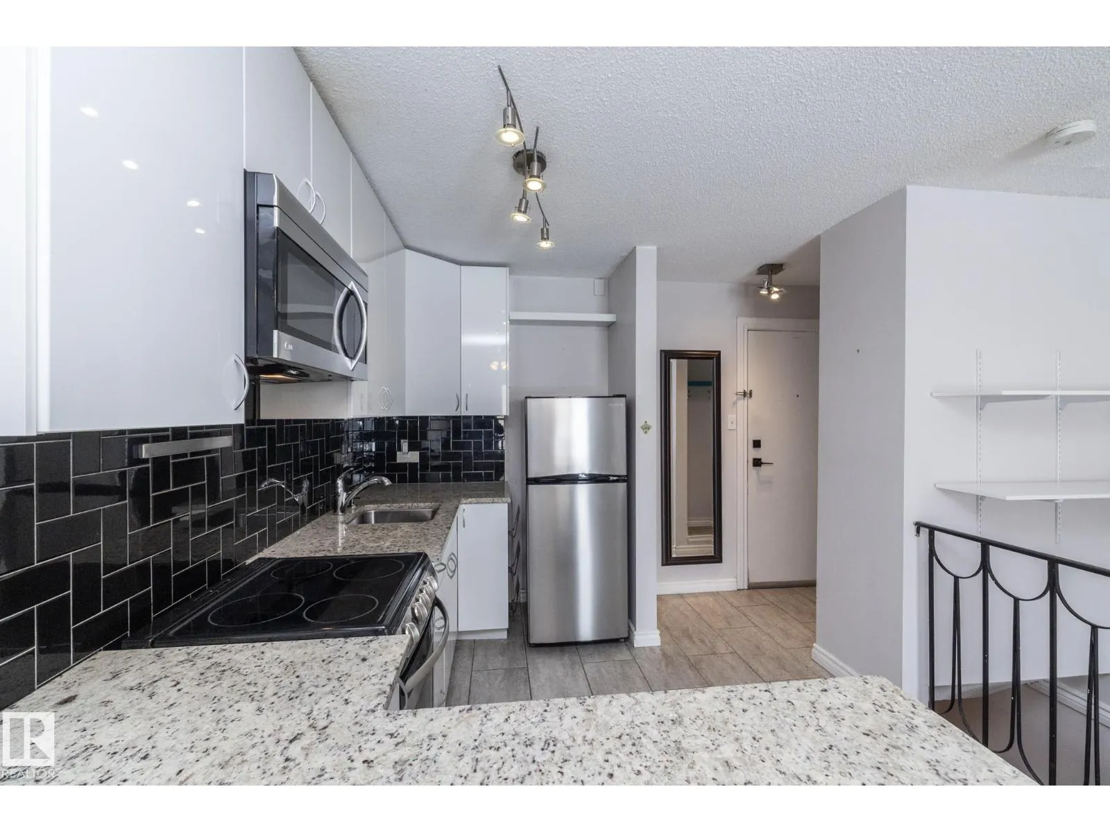 Prime location just steps from Edmontonâs vibrant 124 Street district, one of the cityâs most desirable areas known for its boutique shopping, cafés, art galleries, & top restaurants. This centrally located condo places you minutes from Grant MacEwan, the River Valley trail system, downtown, & convenient public transit, making it an ideal choice for professionals, students, or investors. Inside, the thoughtfully designed 2-level layout offers a unique separation of living & sleeping space. The upper level features an open-concept design w/durable laminate throughout the main living areas. The modern kitchen is finished w/high-gloss cabinetry & granite countertops, flowing seamlessly into the open space perfect for everyday living or entertaining.The lower level offers a quiet sleeping area. The spacious bedroom includes a custom walk-in closet. The renovated bath includes the laundry. This well-maintained complex also features newer balconies, updated windows & renovated common hallways. (id:27476)