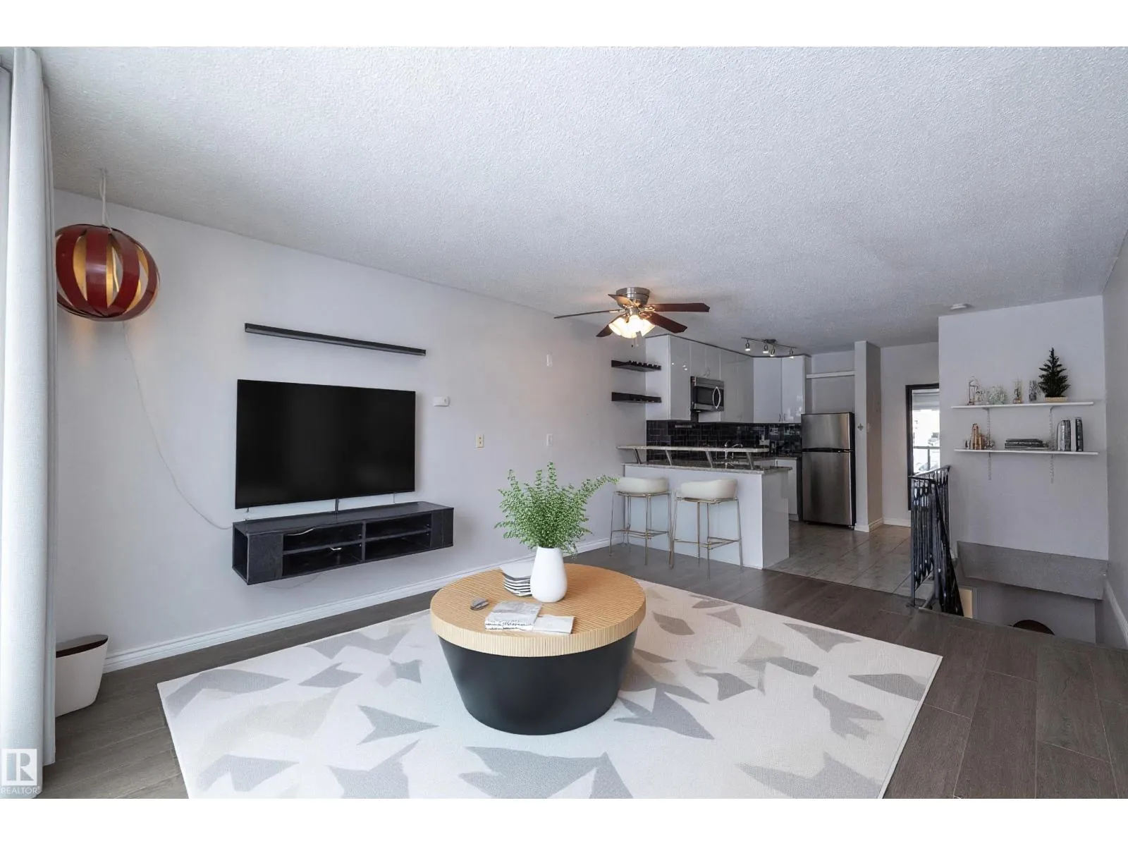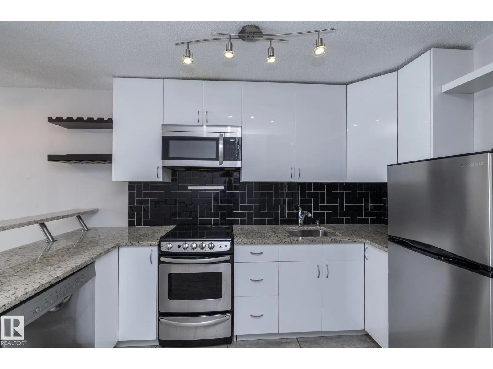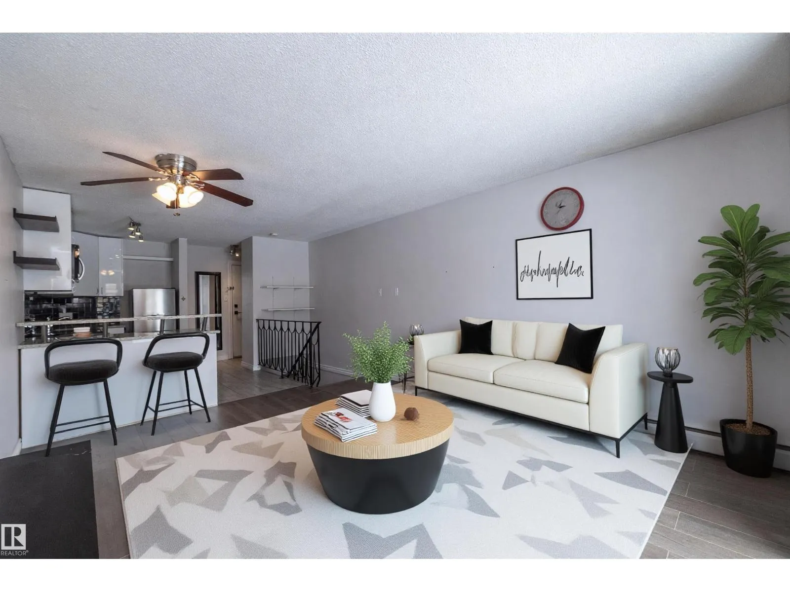 Prime location just steps from Edmontonâs vibrant 124 Street district, one of the cityâs most desirable areas known for its boutique shopping, cafés, art galleries, & top restaurants. This centrally located condo places you minutes from Grant MacEwan, the River Valley trail system, downtown, & convenient public transit, making it an ideal choice for professionals, students, or investors. Inside, the thoughtfully designed 2-level layout offers a unique separation of living & sleeping space. The upper level features an open-concept design w/durable laminate throughout the main living areas. The modern kitchen is finished w/high-gloss cabinetry & granite countertops, flowing seamlessly into the open space perfect for everyday living or entertaining.The lower level offers a quiet sleeping area. The spacious bedroom includes a custom walk-in closet. The renovated bath includes the laundry. This well-maintained complex also features newer balconies, updated windows & renovated common hallways. (id:27476)