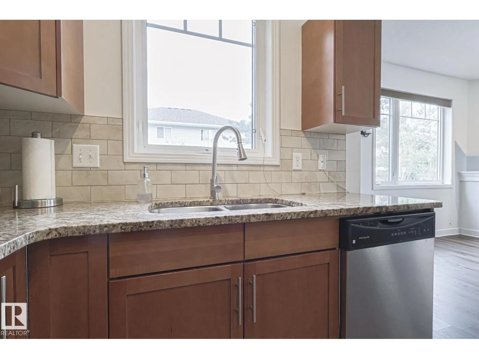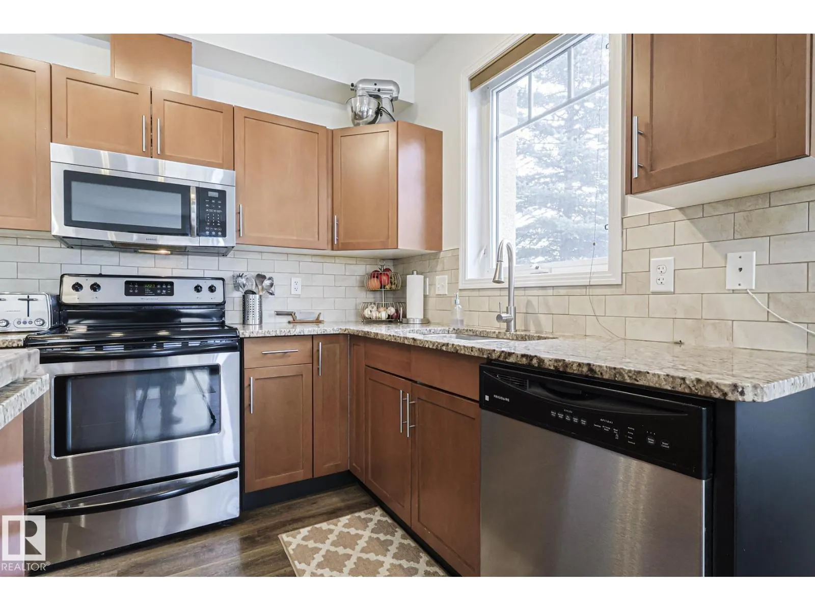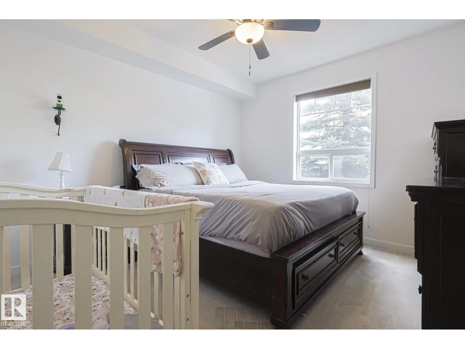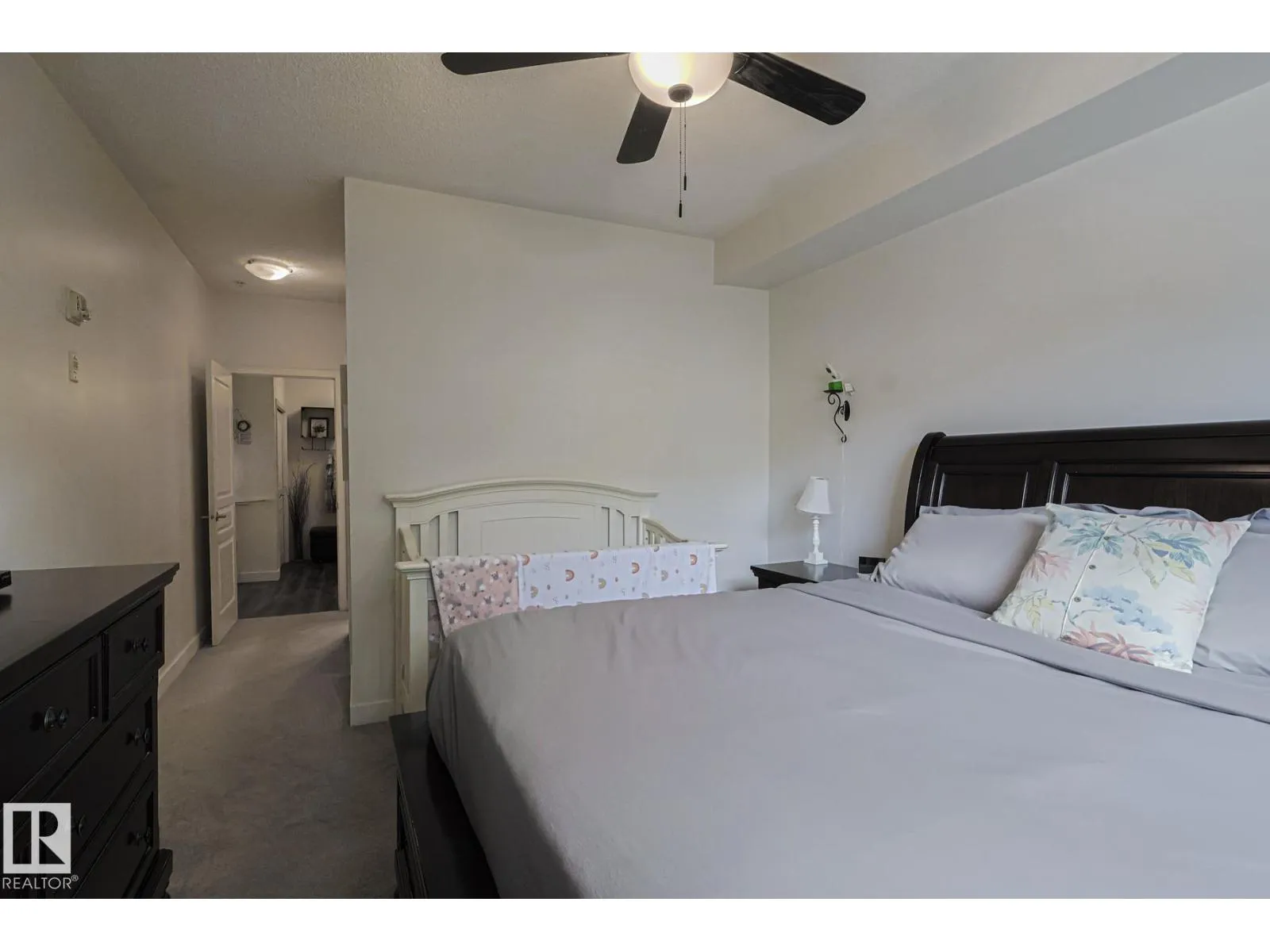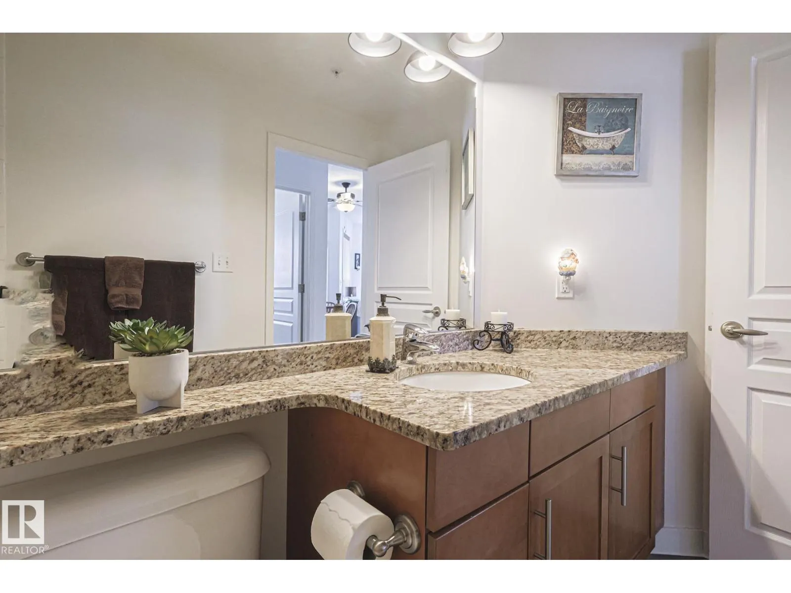 Welcome to this stunning corner unit with 9â ceilings which offers the perfect blend of style, comfort, and convenience. The open-concept kitchen features stainless steel appliances, granite countertops and a functional island with seating - making it ideal for both everyday living and entertaining. Rich wood cabinetry and a convenient pantry provide ample storage. The spacious primary bedroom includes a walk-in closet and private ensuite. The second bedroom is big enough to fit in king size bed and second full bathroom is across the living space âperfect for guests, or a home office. Relax in the inviting living room with a beautiful corner fireplace, adding warmth and charm to the space. The unit offers private balcony, in-suite front load washer and dryer, one secured heated underground parking stall. The building offers social room, gym and a guest suite. Minutes to park, lake, shopping, school and transportation and a perfect place to call home (id:27476)