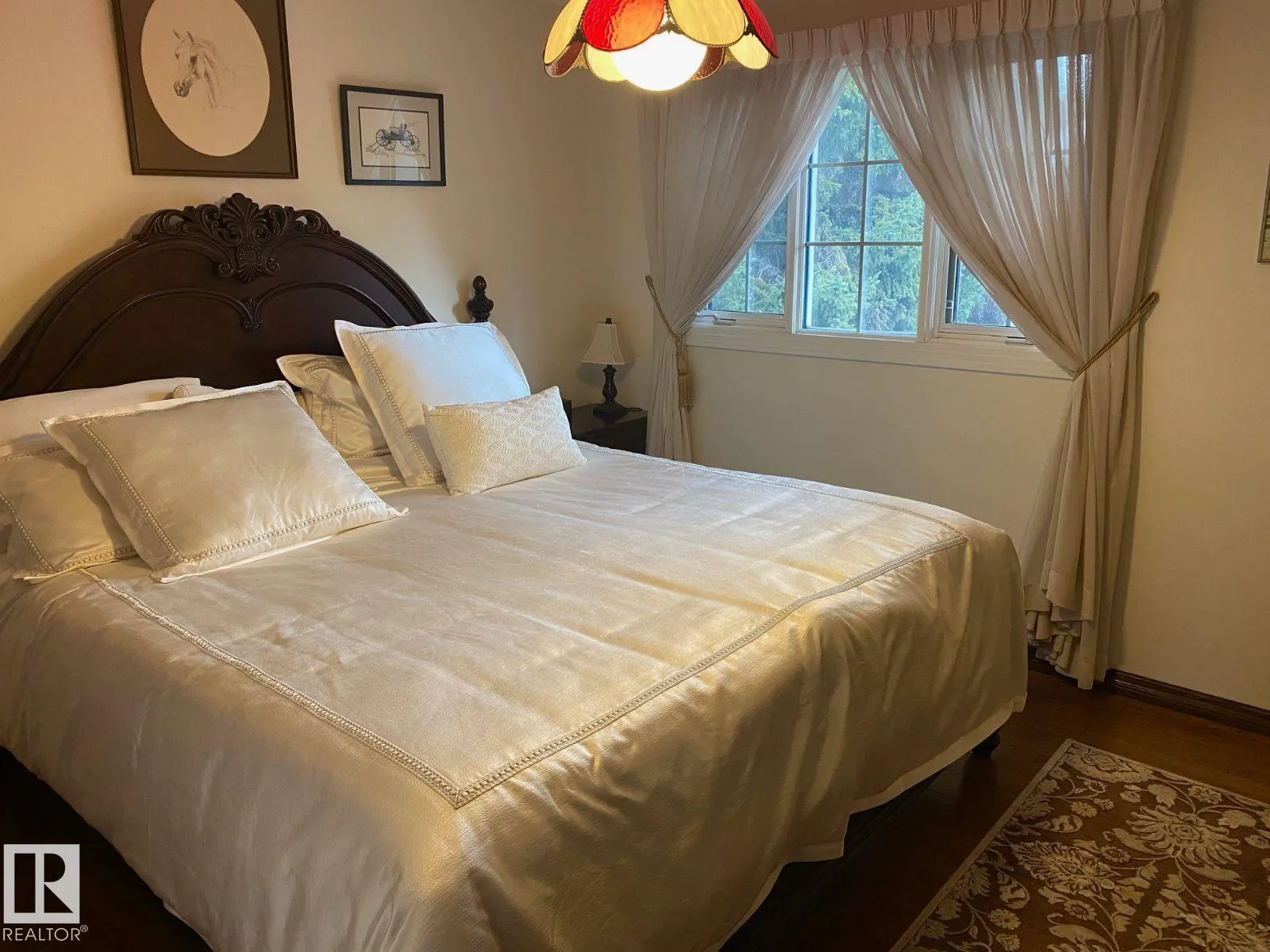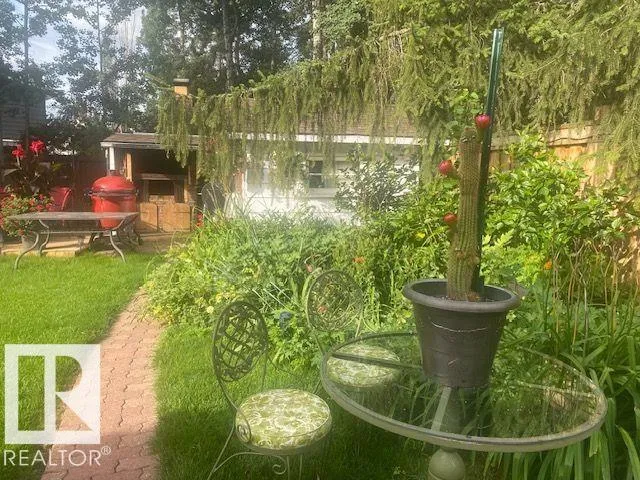 Visit the Listing Brokerage (and/or listing REALTOR®) website to obtain additional information. A beautiful home on a large quiet lot Solid well built with open beam floor plans House and yard is well maintained This home is your diamond in the rough Located in a prestigious area in West Edmonton directly across from a green belt and adjacent to multiple $2m+ homes and river access near by 2 story 2400 sf 4 bedrooms 3.5 bathrooms 2 car attached garage Hardwood floors main & upstairs 2 wood burning fireplaces all masonry Attached 3 seasons sunroom Upper deck off master suite Finished basement w/ wet bar full carpet Upgraded furnace,humidifier,hot water tank AC Includes central vac fridge stove dishwasher microwave carburetor washer and dryer 879 m2 treed lot with garden areas all irrigated Large outdoor brick smoker/barbecue rotisserie Built in 1977 Taxes $7600 Furniture not included but negotiable (id:27476)