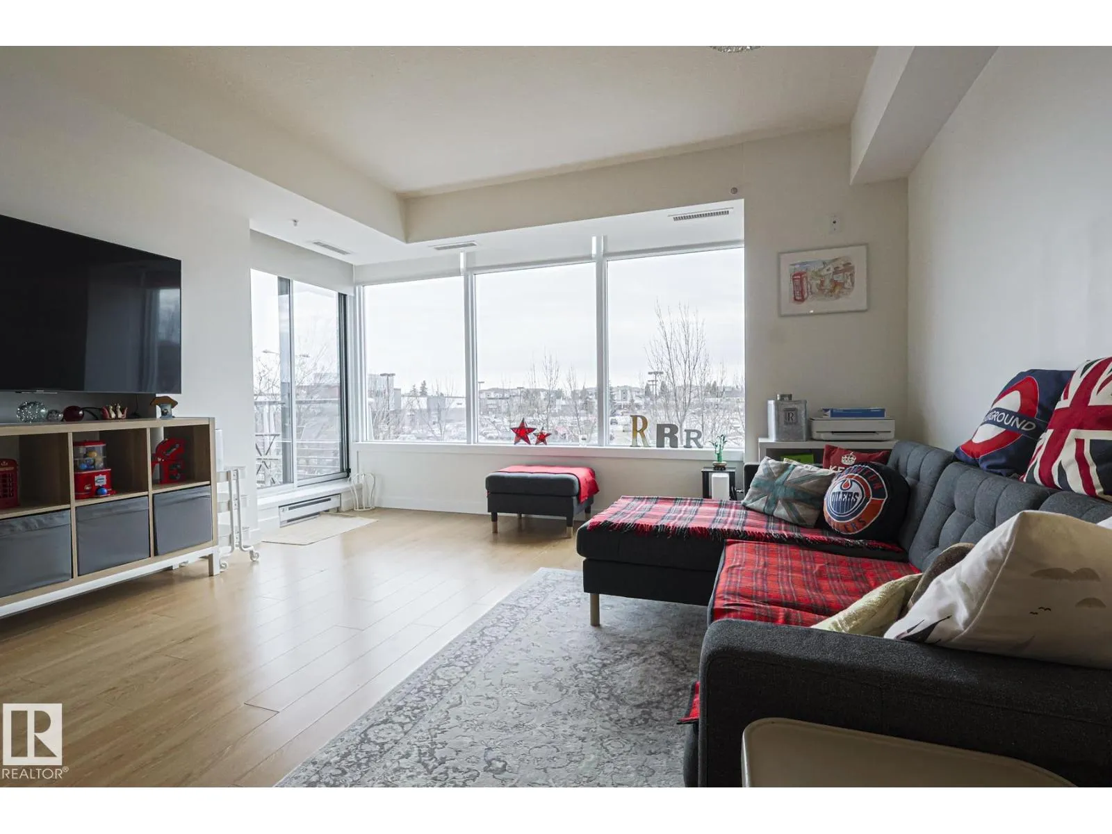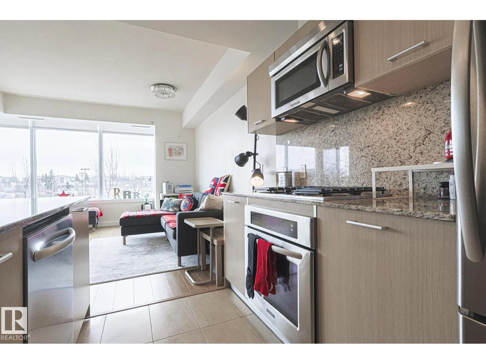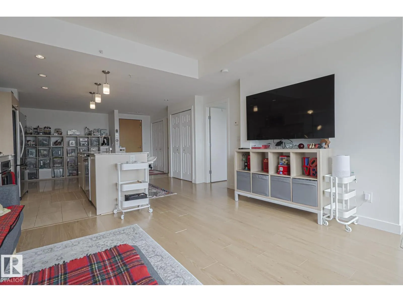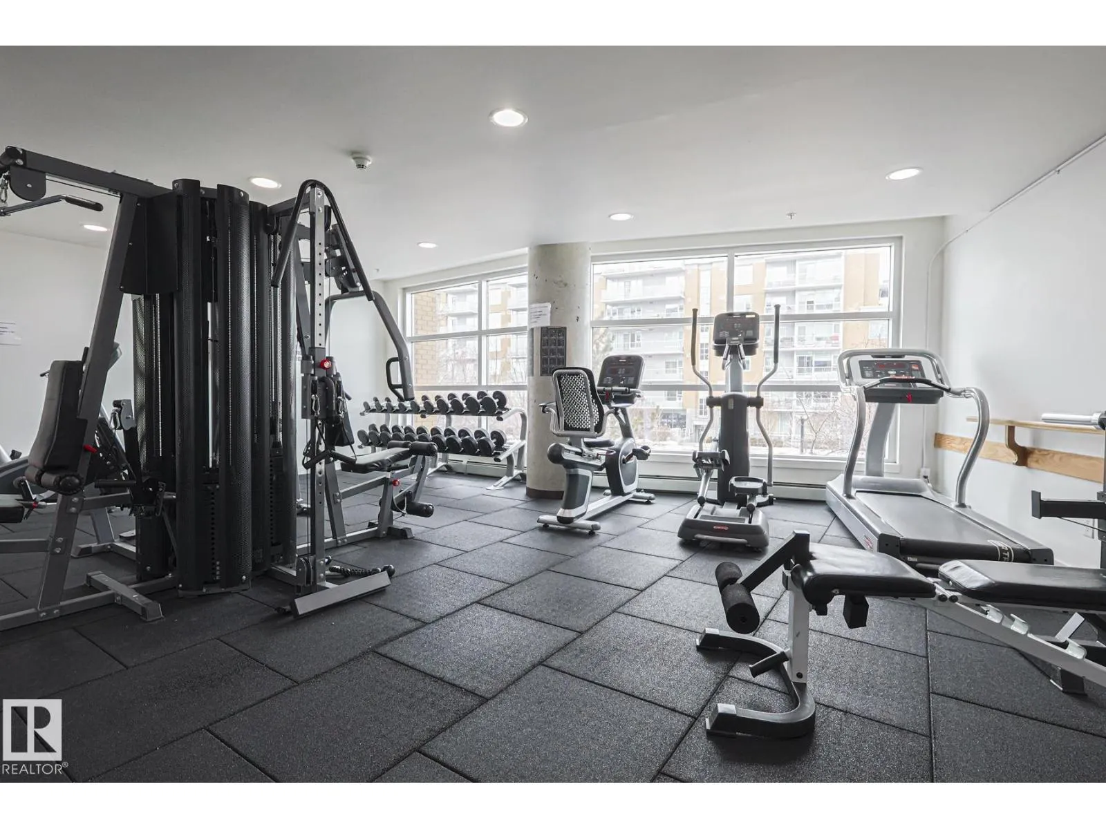 Modern loft style condo in sophisticated One Century Park. Step inside this south facing unit with a gourmet kitchen featuring huge island, granite countertops, beautiful cabinets, gas stove, stainless steel appliances (fridge has a water dispenser/ice-maker) and ceramic tile flooring. Large dining area or could be used as an office or den. Spacious livingroom with large south facing windows, natural colour and laminate flooring as well as access to the balcony to enjoy a morning coffee or bbq your next meal. Bathroom features soaker tub, glass shower ceramic tile flooring and puck lighting complete this space. This home has central air-conditioning, been recently repainted and all new closet doors. Titled underground parking (199) and titled storage cage (531) also separate bike locker. Gym is located just down the hall. Condo fee includes heat, water and electricity. The 65 TV is included as well with the sale. (id:27476)