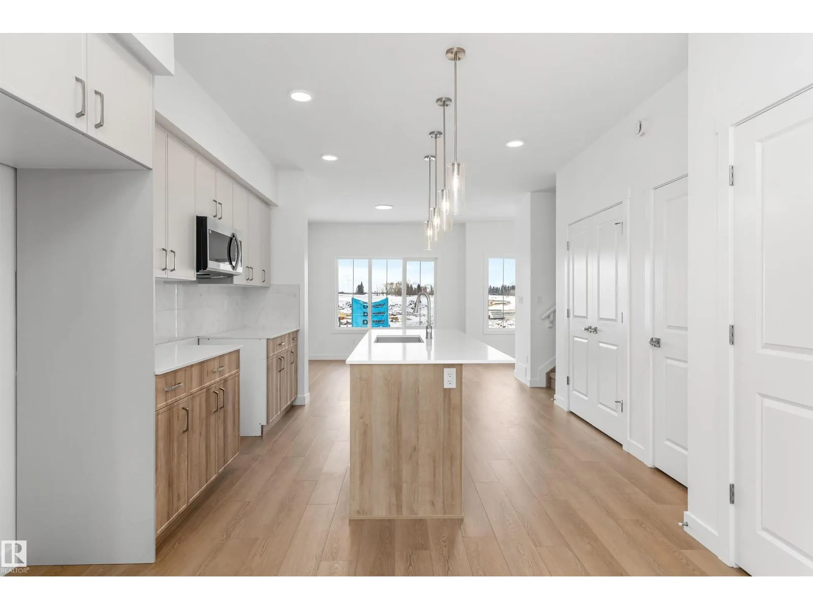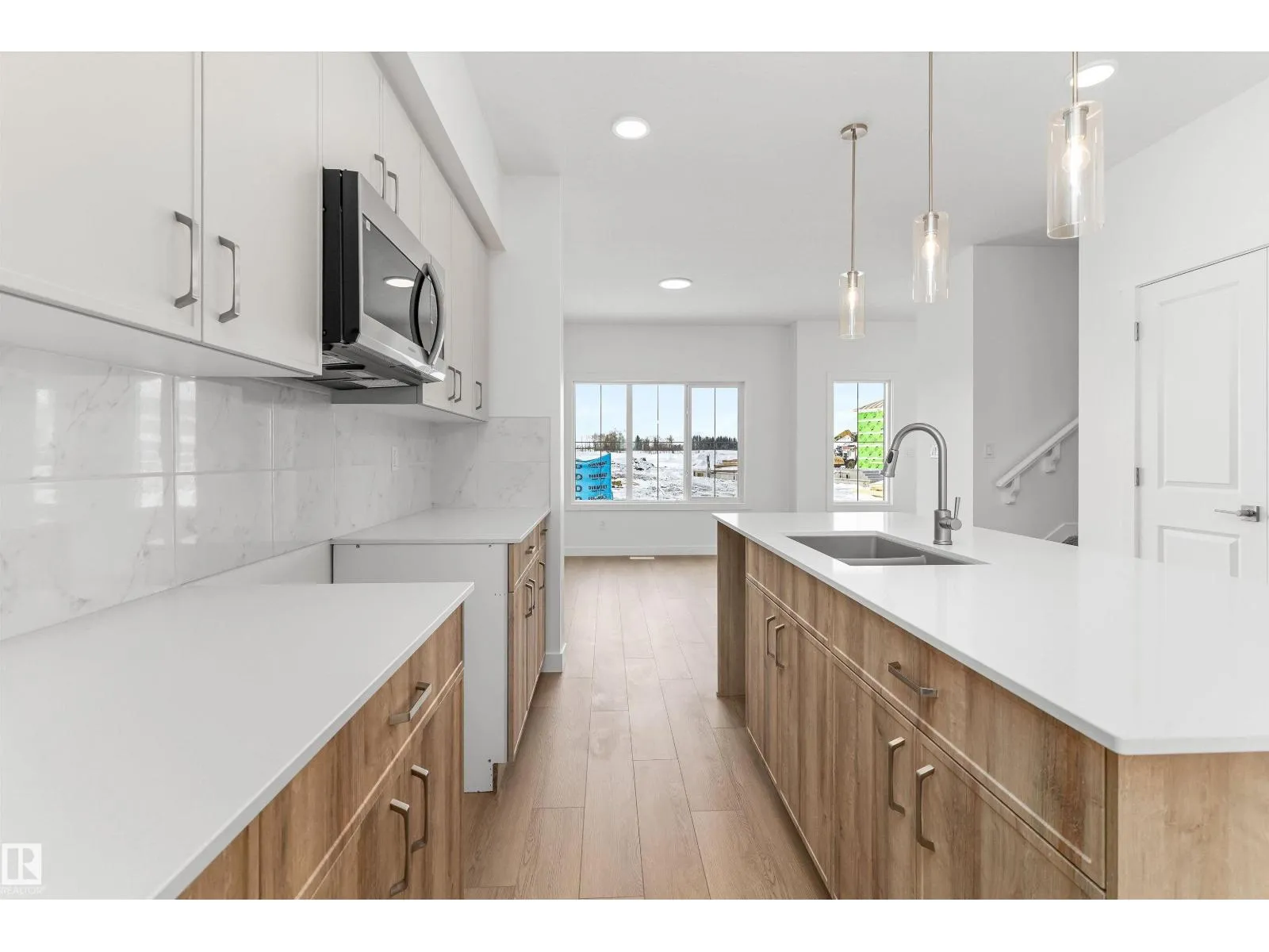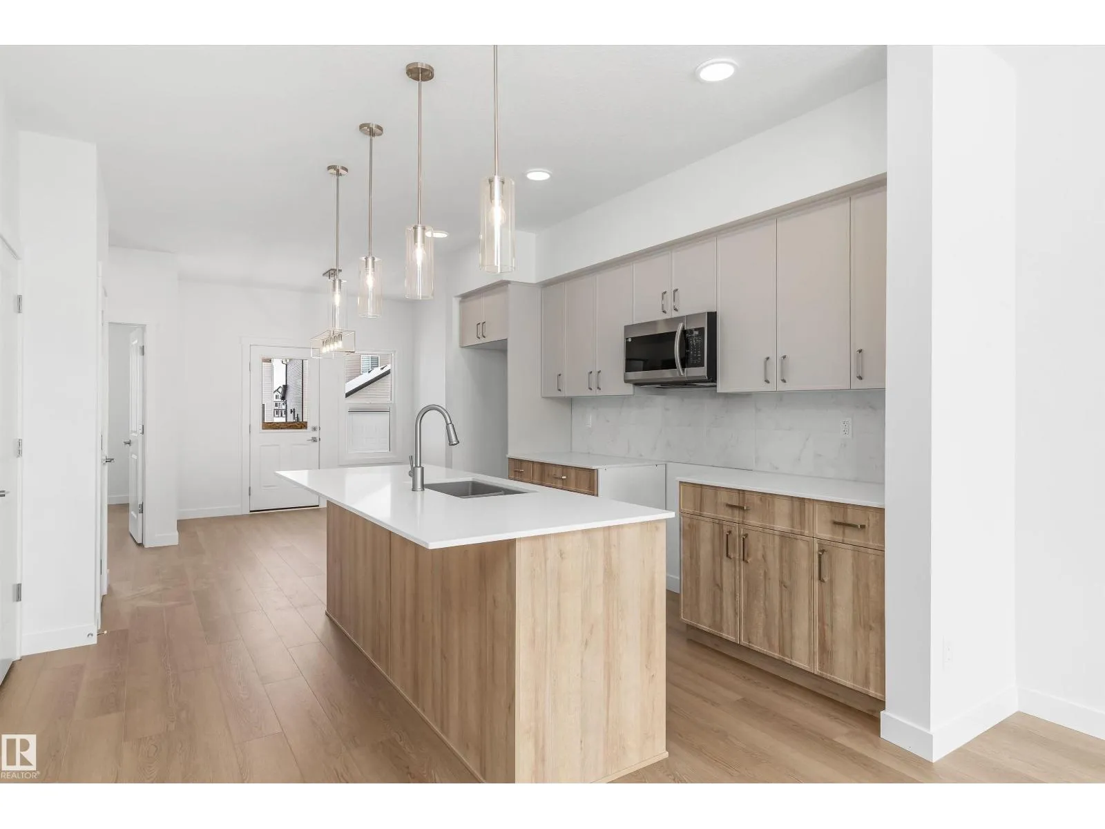 Built by Sterling Homes, this thoughtfully designed laned home in Aster blends natural light, flexibility, and everyday comfort. Triple pane windows and 9â ceilings brighten the main floor, where a front living room captures morning sun. The rear kitchen overlooks the yard and features quartz counters, a central island, upgraded cabinetry, a pantry, and a Silgranit sink. The dining nook connects to the outdoors, while a main-floor bedroom with a full bath adds versatility for guests, extended family, or a home office. Upstairs, the primary suite offers a walk-in closet and ensuite, plus two more bedrooms, a full bath, and an upper laundry. Finished with luxury vinyl plank flooring, a side entrance, backyard parking pad, and basement rough-ins, this home sits in a family-friendly SE Edmonton community near schools, parks, and shopping. (id:27476)