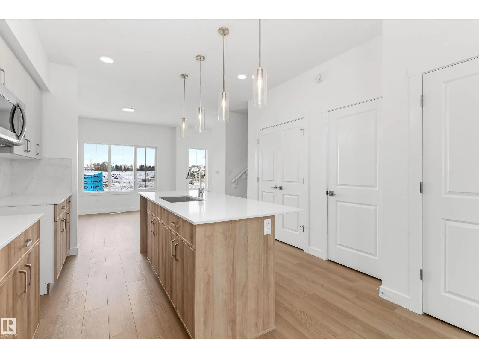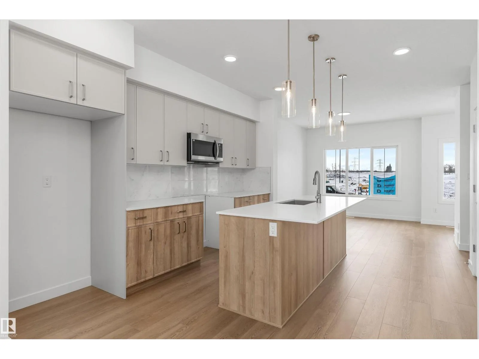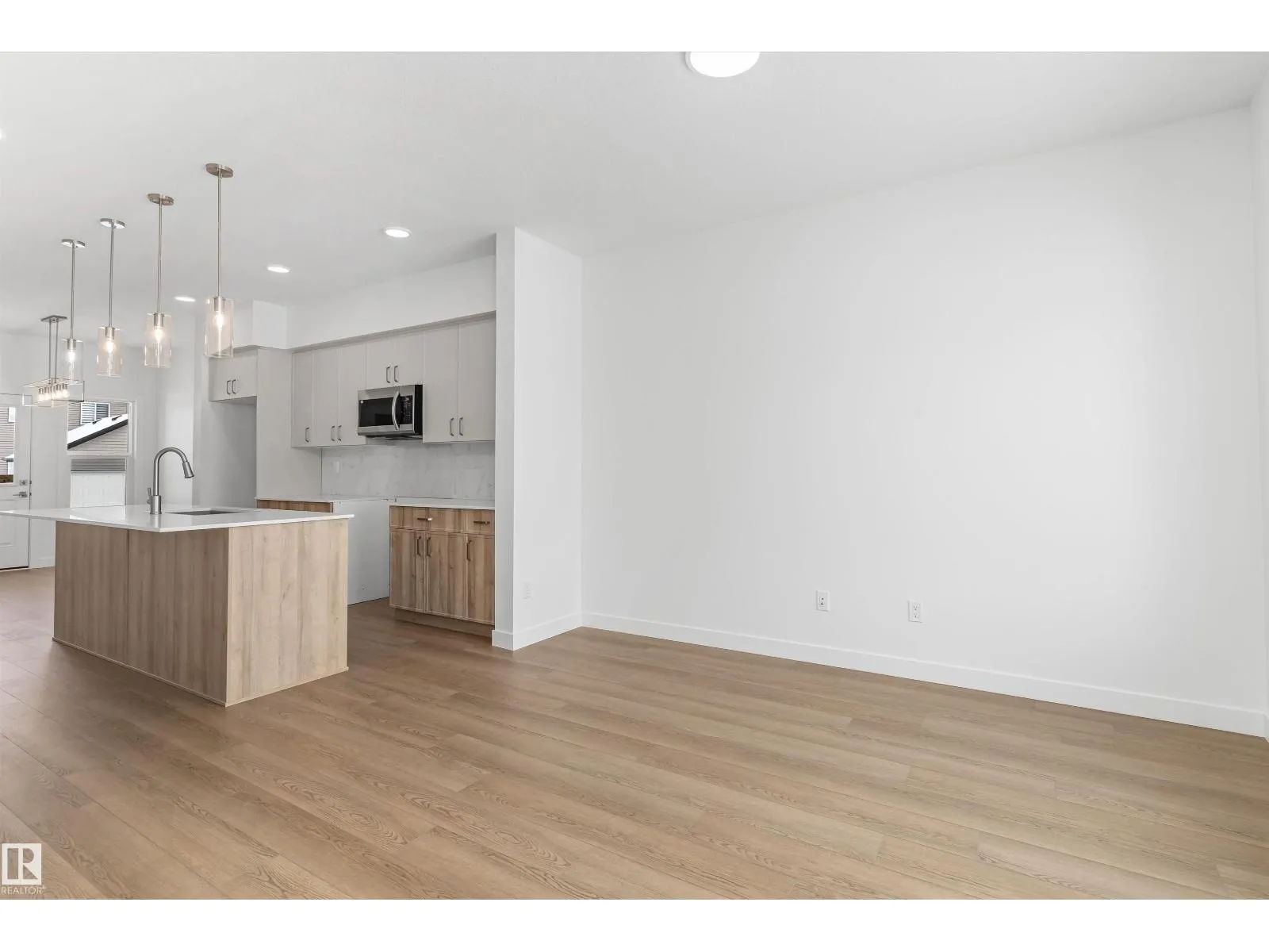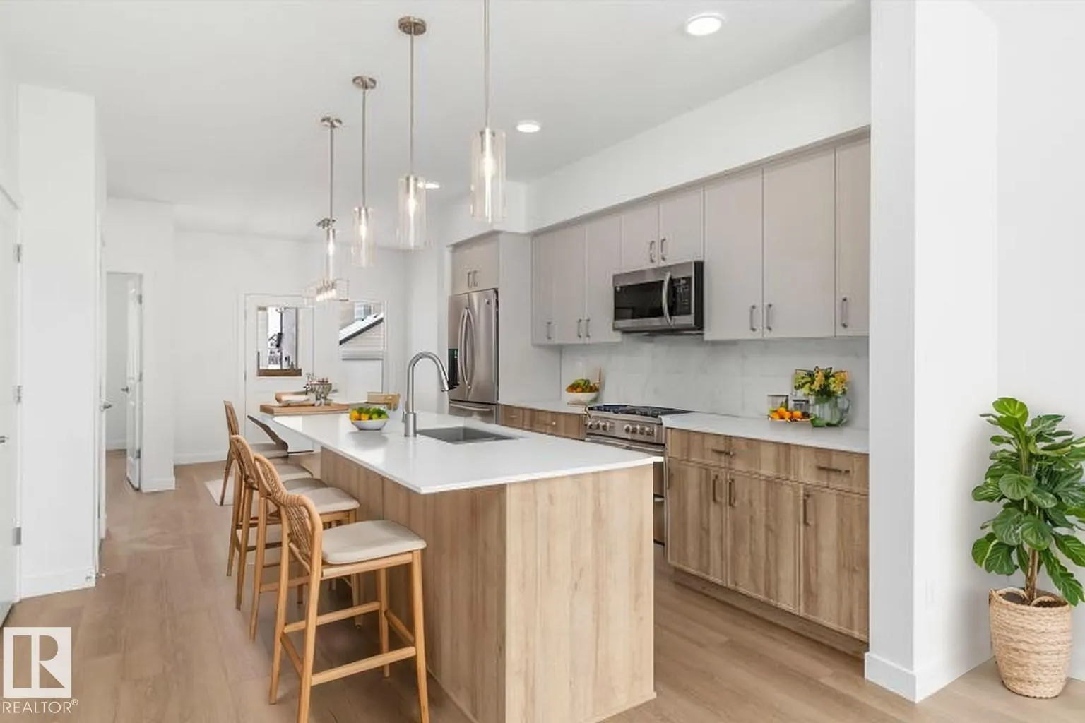 Built by Sterling Homes, this thoughtfully designed laned home in Aster blends natural light, flexibility, and everyday comfort. Triple pane windows and 9â ceilings brighten the main floor, where a front living room captures morning sun. The rear kitchen overlooks the yard and features quartz counters, a central island, upgraded cabinetry, a pantry, and a Silgranit sink. The dining nook connects to the outdoors, while a main-floor bedroom with a full bath adds versatility for guests, extended family, or a home office. Upstairs, the primary suite offers a walk-in closet and ensuite, plus two more bedrooms, a full bath, and an upper laundry. Finished with luxury vinyl plank flooring, a side entrance, backyard parking pad, and basement rough-ins, this home sits in a family-friendly SE Edmonton community near schools, parks, and shopping. (id:27476)
