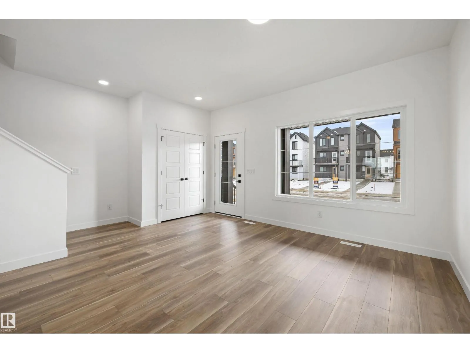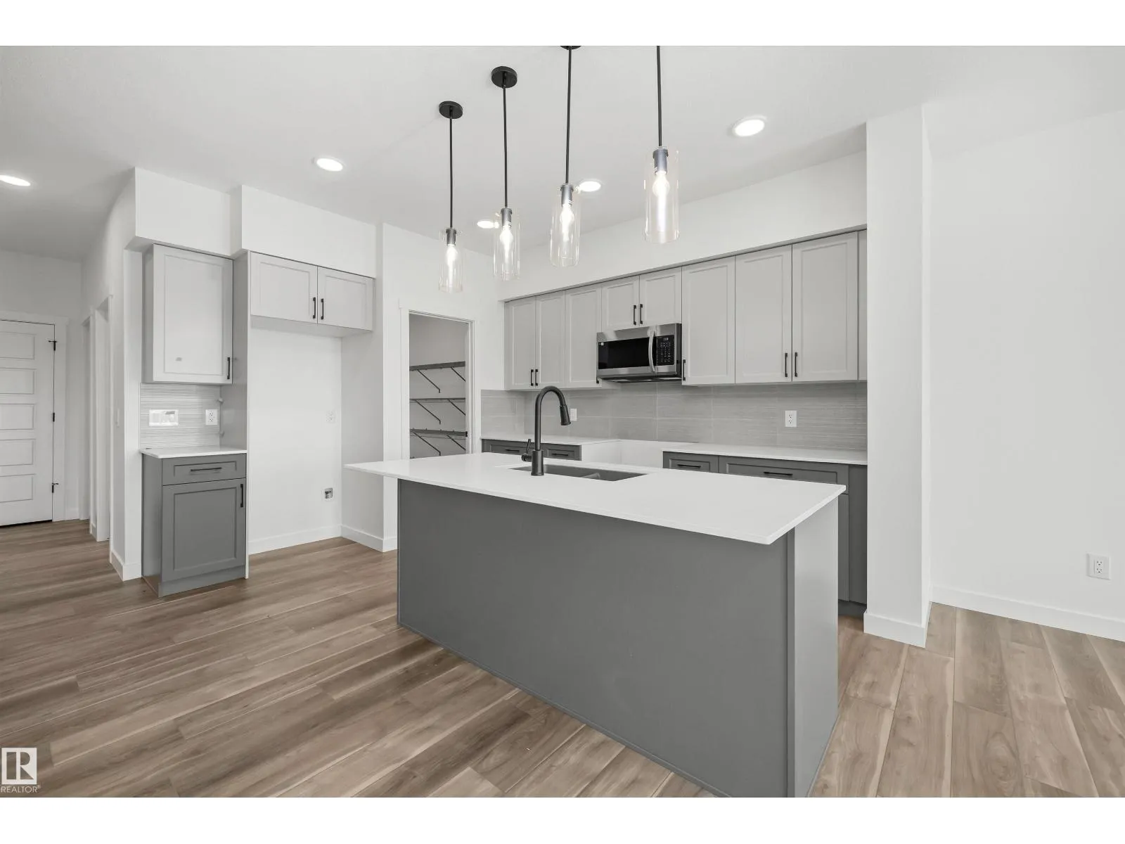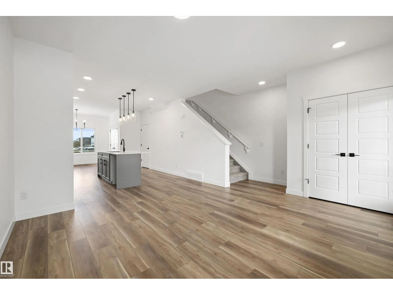 Built by Sterling Homes, this bright and stylish duplex in Marquis blends modern design with everyday comfort in a growing community known for quiet streets, ponds, and future schools. The welcoming foyer leads to an open-concept main floor filled with natural light from triple-pane windows. The kitchen features quartz countertops, a large island with seating, upgraded soft-close cabinetry, full-height tile backsplash, chimney hood fan, built-in microwave, and a corner pantry. Upstairs, the primary suite offers a walk-in closet and a 4-piece ensuite with double sinks and a glass-enclosed shower. Two additional bedrooms, a full bath, bonus room, and convenient upper-floor laundry complete the level. Highlights include luxury vinyl plank flooring, upgraded railings, separate side entrance, basement rough-ins for future development, and a double attached garage with floor drain. (id:27476)