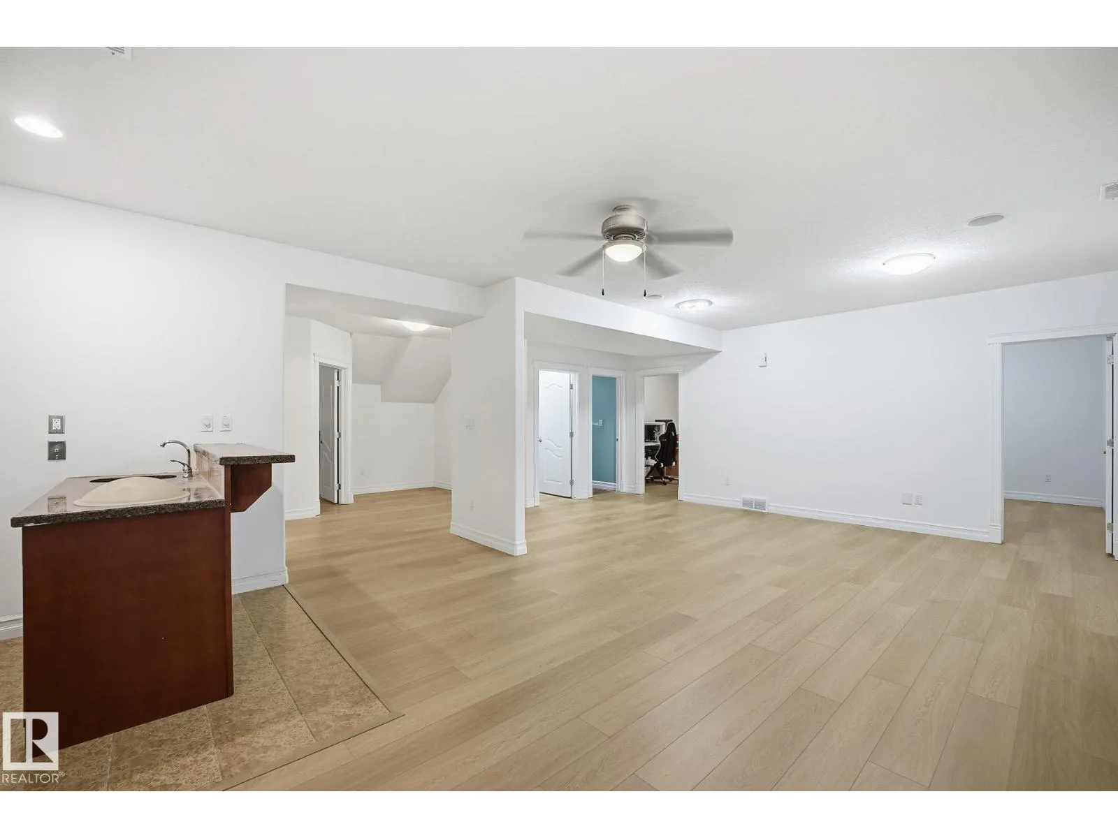 A rare slice of Summerside on a prime cul-de-sac pie lot. This custom modified bi-level offers over 3,600 sq ft of living space, 6 bedrooms, 4 full baths, and a finished walk-out basement. The sprawling main floor features distinct living and family rooms, a large kitchen, and 3 bedrooms, including a guest room with its own private 4-piece ensuite. Upstairs, the primary retreat includes a 4-piece ensuite and walk-in closet. The walk-out basement adds 2 bedrooms, a full bath, a massive 500 sq ft rec room, renovated laundry, and an acoustically treated theatre/flex room. Upgrades include fresh paint, refinished hardwood, and new LVP. Complete with an oversized 30'x23' triple attached garage and extended driveway. Ideal for multi-generational living without HOA fees! The property also offers excellent suite potential: a separate entrance and wet bar make an easy pathway to a future income suite. A chance to own a standout home in Summerside. Close to schools, parks, shops, hospitals, and the airport. (id:27476)