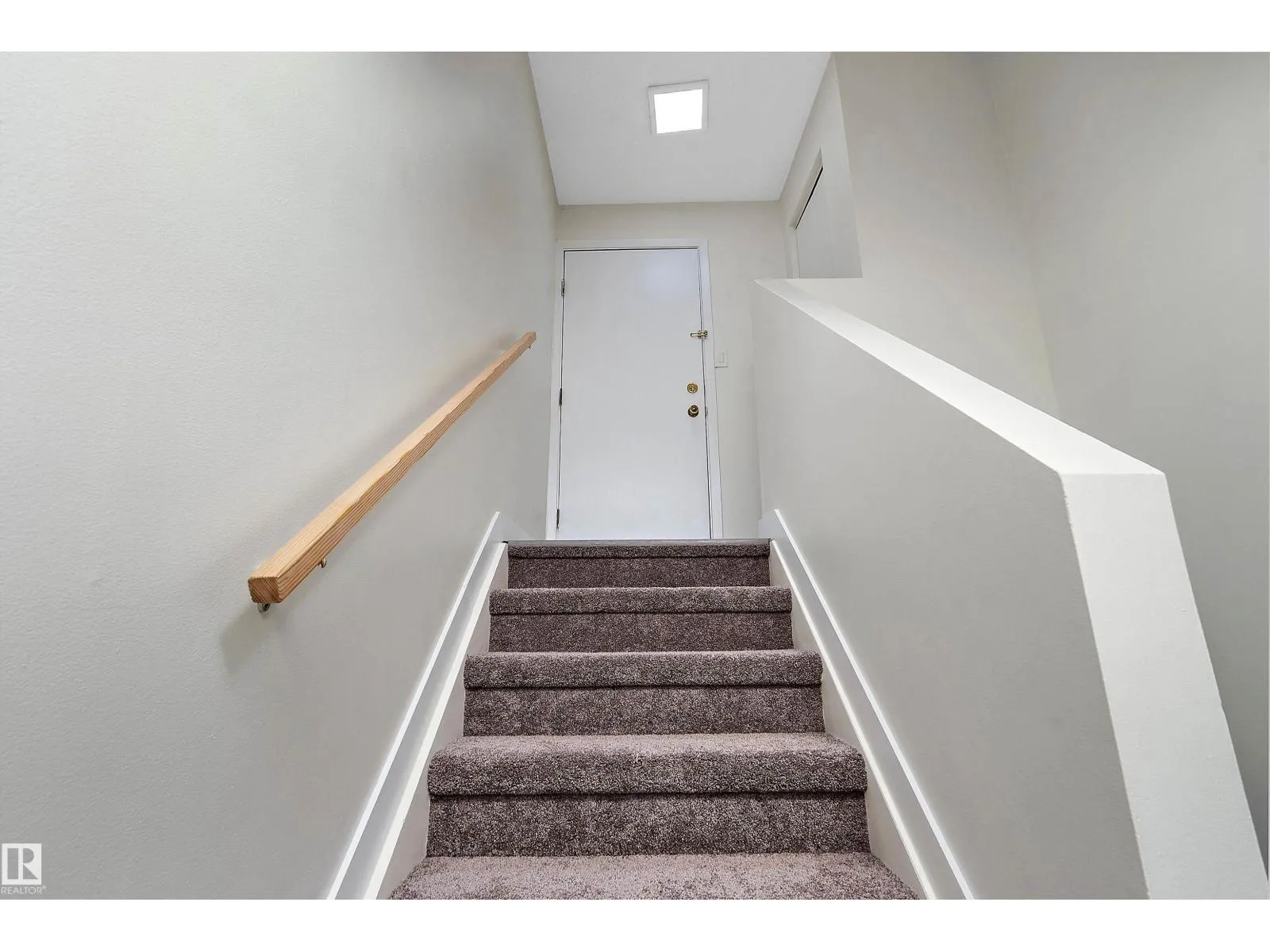 This unique styled, 2 level apartment condo in Belvedere, offers over 1250 sq ft of living space and has seen some recent upgrades. On the lower level is the kitchen with stainless appliances, dining room, 2pc bathroom, storage rooms, living room and sliding doors leading you to the very large balcony. The upper level has 3 spacious bedrooms, a large 4-pc bathroom and storage room. From there you also have access to another entrance to your condo from the upper door. In addition to the in suite storage there is also a separate indoor storage room in the building foyer by your suite. Your parking stall is only a few steps away from the buildings front entrance and there is plenty of visitor parking. Close to schools, restaurants, shopping and public transportation. The complex has seen many recent upgrades including windows, siding, shingles, resurfaced parking lot, laundry rooms & heating system. (id:27476)