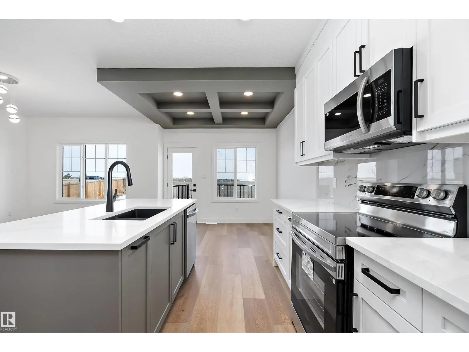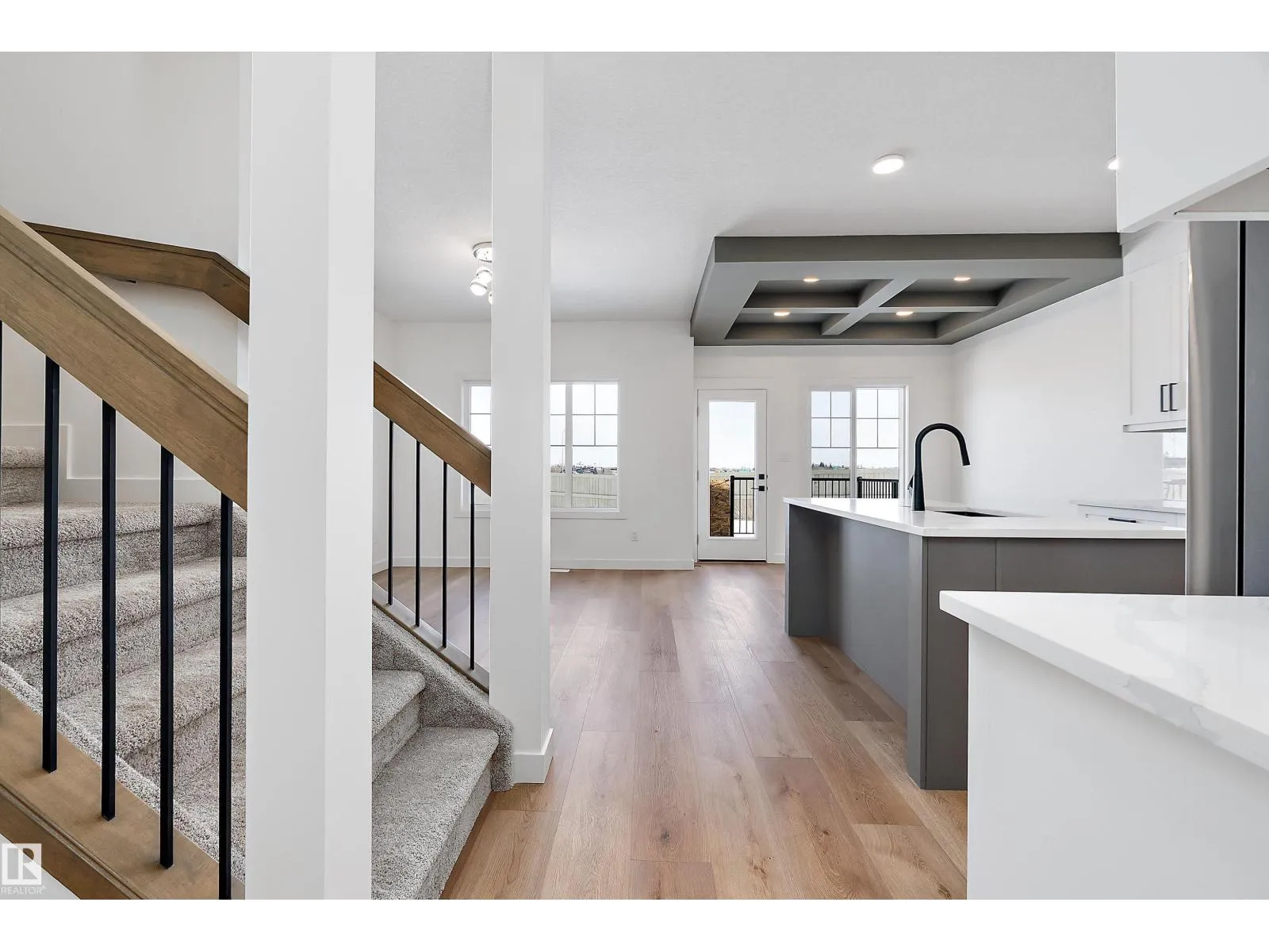 Welcome to this brand new 1809 SQFT Carlisle I model by award winning builder Blackstone Homes in Kinglet Gardens. Upon entry, you will be welcomed by spacious foyer and a main floor den, perfect for work from home days. The spacious great room offers electric fireplace with mdf finish, dining room with coffered ceiling, beautiful kitchen offering up to the ceiling soft closing cabinets, large island & walk-through pantry with mdf shelving. Main floor also has much needed mudroom with bench and shelves. The 2nd floor offers 3 large bedrooms, 2 baths, bonus room & laundry. Master bedroom is huge with beautiful en-suite & walk in closet. Other features - Double attached garage, Rear deck with metal railing, Separate entrance, 9' main/basement ceiling, MDF shelving, black plumbing fixtures, feature walls, upgraded quartz throughout, stainless steel appliances & New Home Warranty. Great location-close to Yellowhead and Anthony Henday, park, golf, shopping and all other amenities. (id:27476)