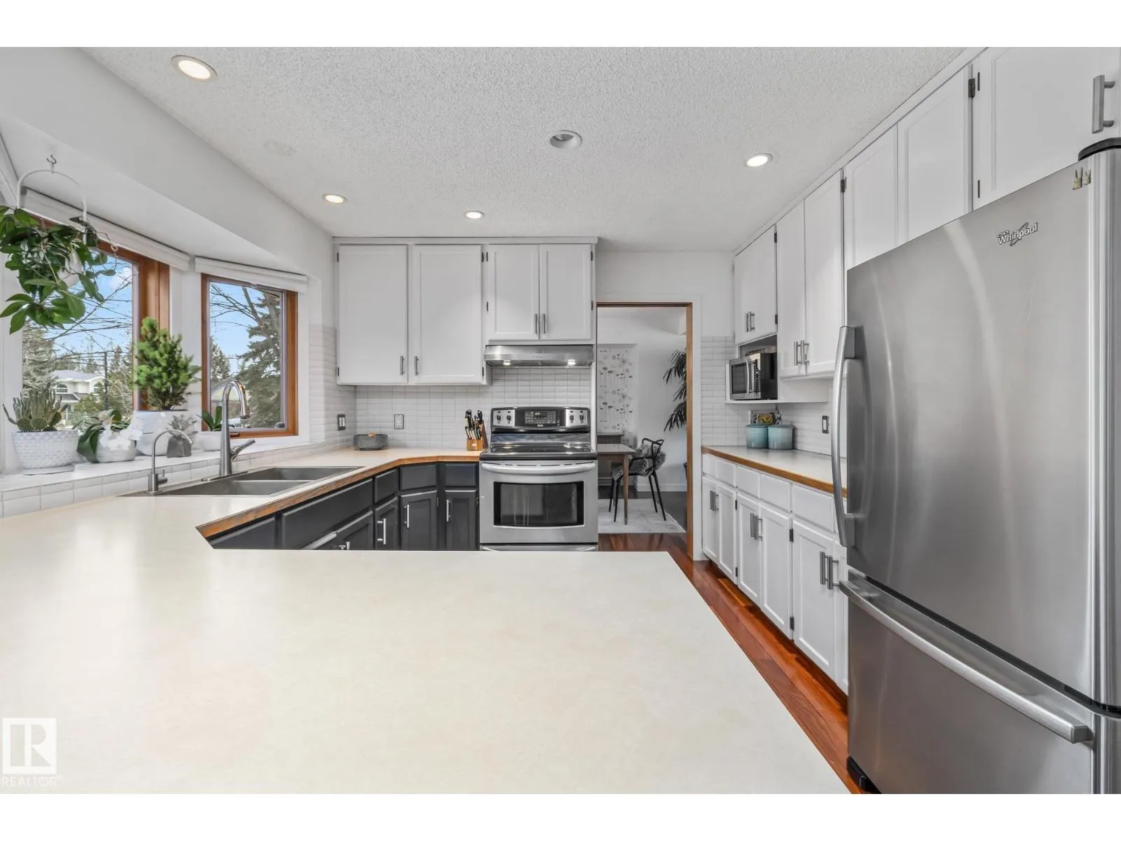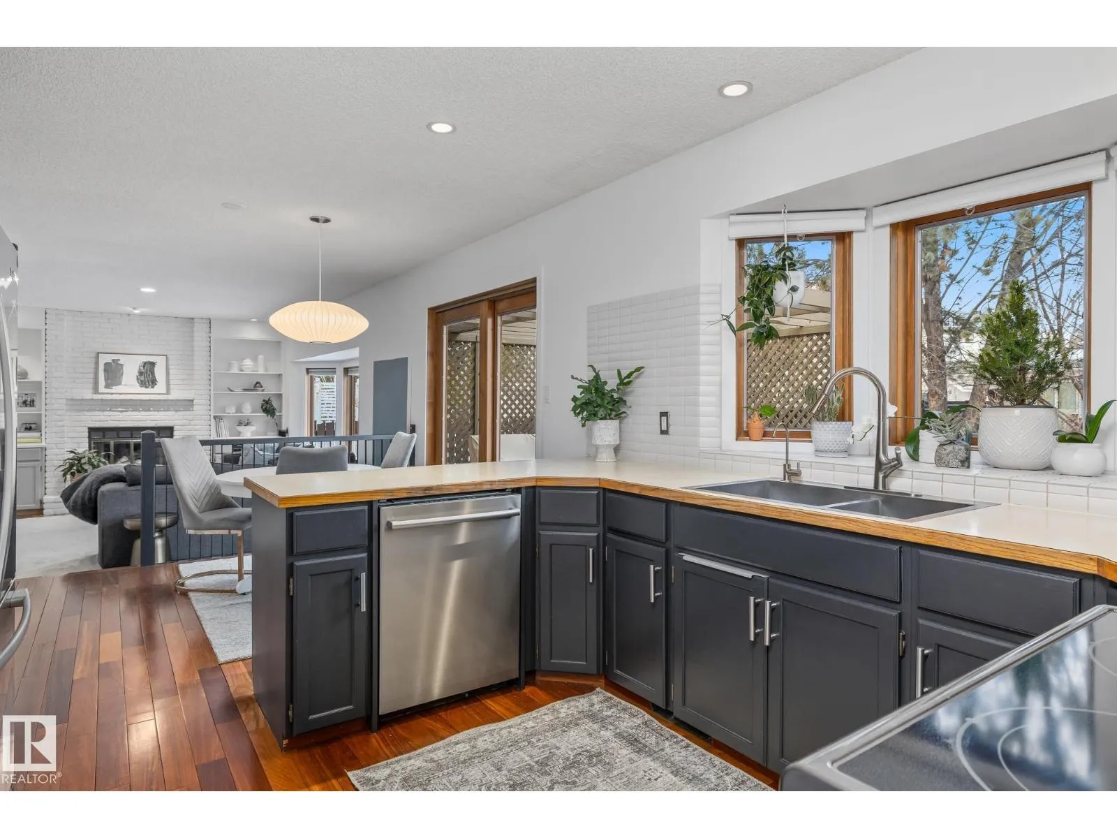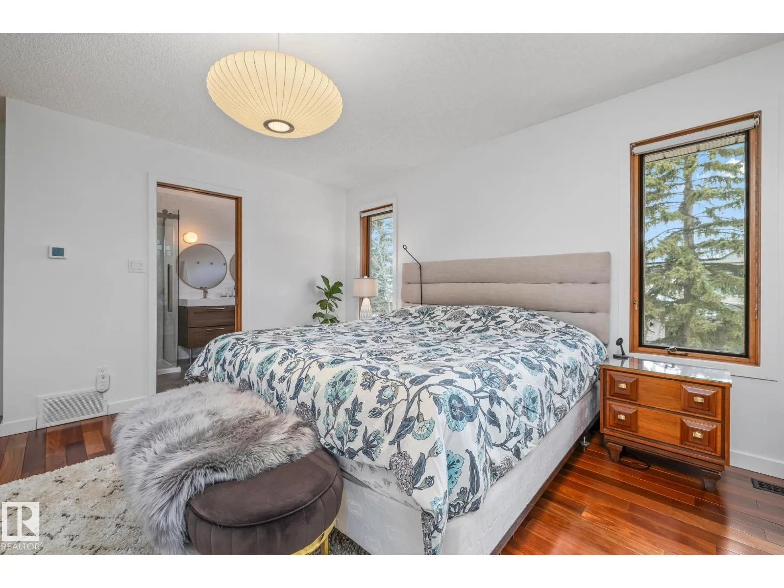 FIVE bedroom, beautifully improved home on a massive +8,000 sq ft corner lot, in the heart of Terwillegar Park Estates! Walking distance to Terwillegar dog park, the river valley, and miles from any main roads this quiet family oriented neighborhood offers tranquility and community! With 4 spacious bedrooms, upgraded bathrooms, including a spacious ensuite with in floor heating, Brazilian Teak Hardwood throughout the main floor and upstairs primary bedroom, TWO wood burning fireplaces, original wood windows (still in good shape) and classic wood shingles, this home has tasteful upgrades while still maintaining its original charm! Other perks include a nicely landscaped front yard, recently redone back deck, roughed in basement plumbing, large main floor laundry room, and beautiful blinds throughout! This one's a must see! (id:27476)