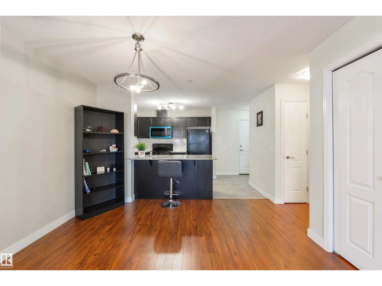 Welcome to Solara at Skyview [condo with solar panels!] built in 2014 by the reputable builder Abbey Lane Homes. It's located just off 127 Street with quick access to the Yellowhead freeway and Anthony Henday. It's conveniently located near many stores, restaurants, a local gym and public transportation. Built in 2014, this building is extremely well-maintained and also focuses on high security. This one-bedroom & a den offers an open-plan layout, a spacious bedroom with a walk-in closet, in-suite laundry, and a den. Building amenities include a fitness room and visitor parking. The low condo fees of $310.82 include water & heat. Taxes are $1571.55 for 2025. Pets are allowed with a Board approval. (id:27476)