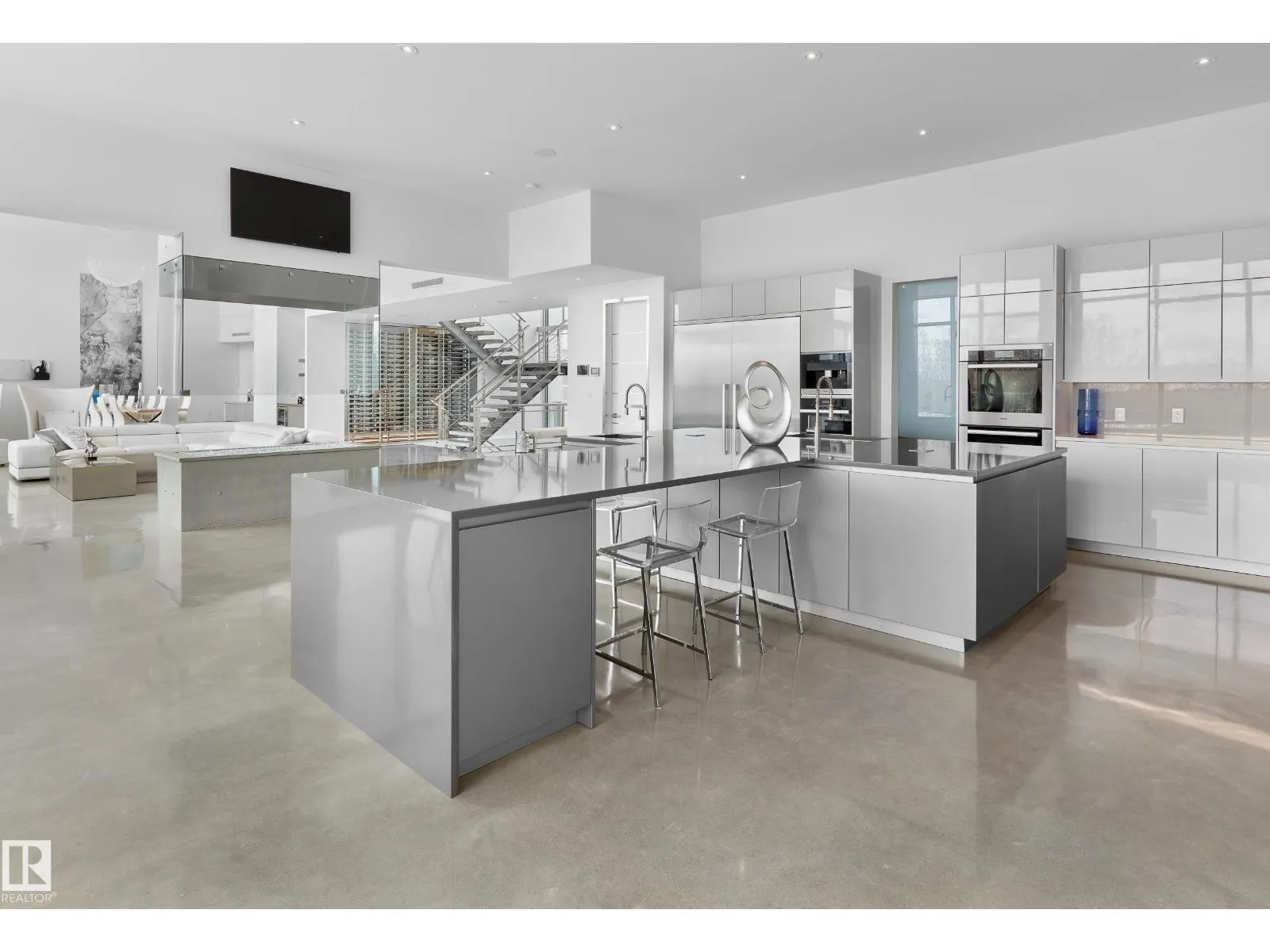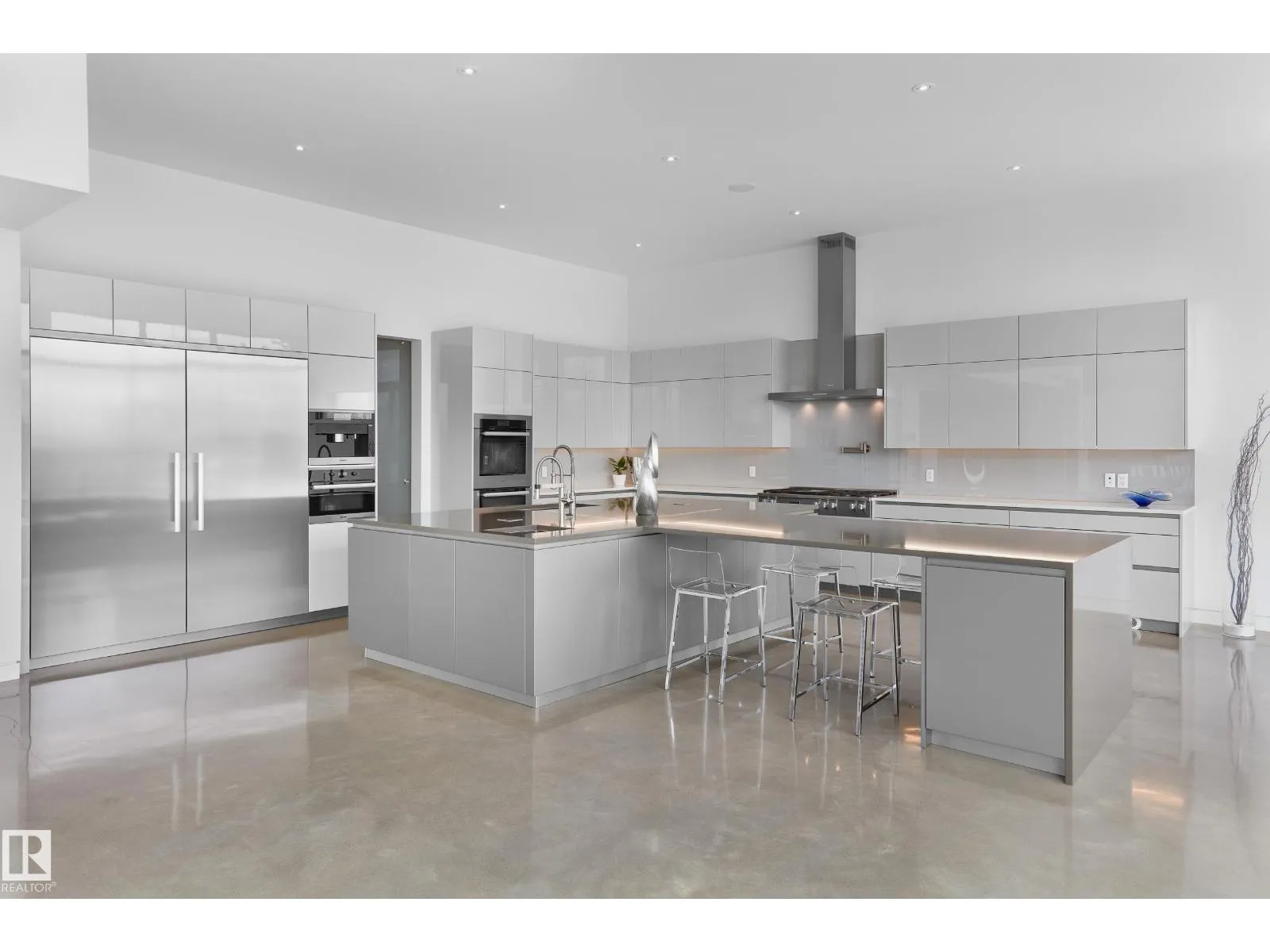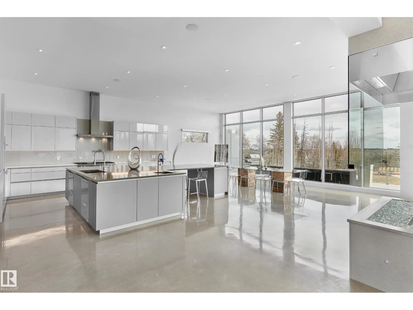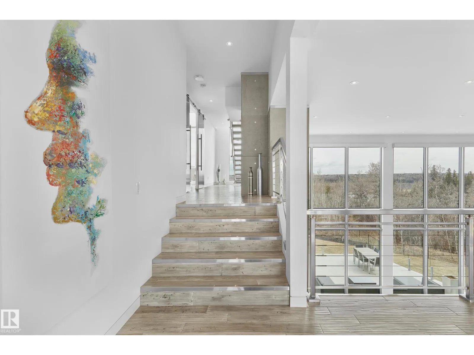 Nestled on a 60,041sqft lot (1.4acres) - a natural setting & attention to detail provide the perfect fusion between structural strength & architectural form in this Modern architecture home with 360-degree views of the river valley & downtown. Encompassing over 7818sqft plus a finished 3997sqft walkout basement (11,814sqft) - 5 beds, 6 baths & 9 car-garage. This home is constructed with superior commercial grade craftmanship & captured the graceful perceptions of the beauty of nature & contemporary elegance with this home's clean lines & organized living. The interiors are characterized by their understated beauty & fluid interpretation of space. The main floor has bountiful natural light streaming in from the numerous windows throughout with 20ft ceilings, modern elegance & style, gourmet kitchen, butler kitchen, multi-level wine room & views of the river valley from every level. From the outside meticulously landscaped 1.4 acres to the construction & interior - this home is a true entertainer's dream! (id:27476)