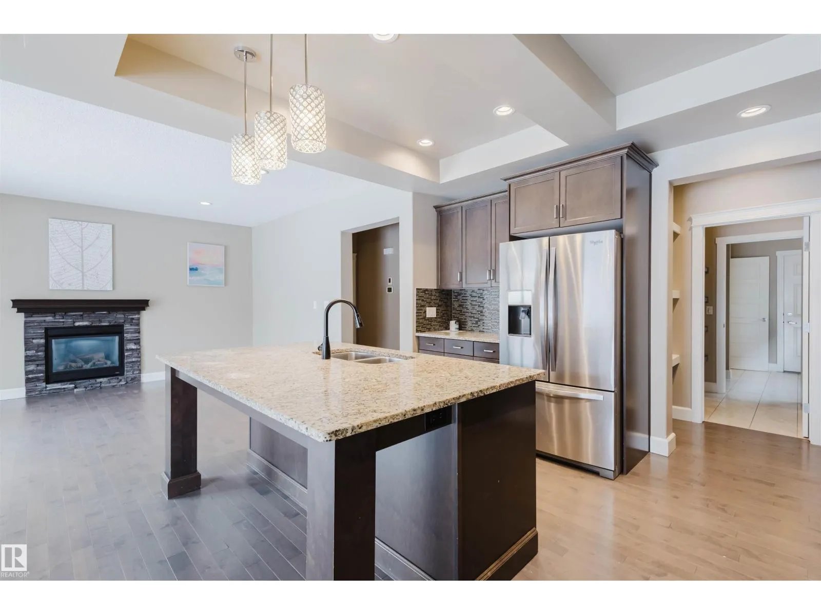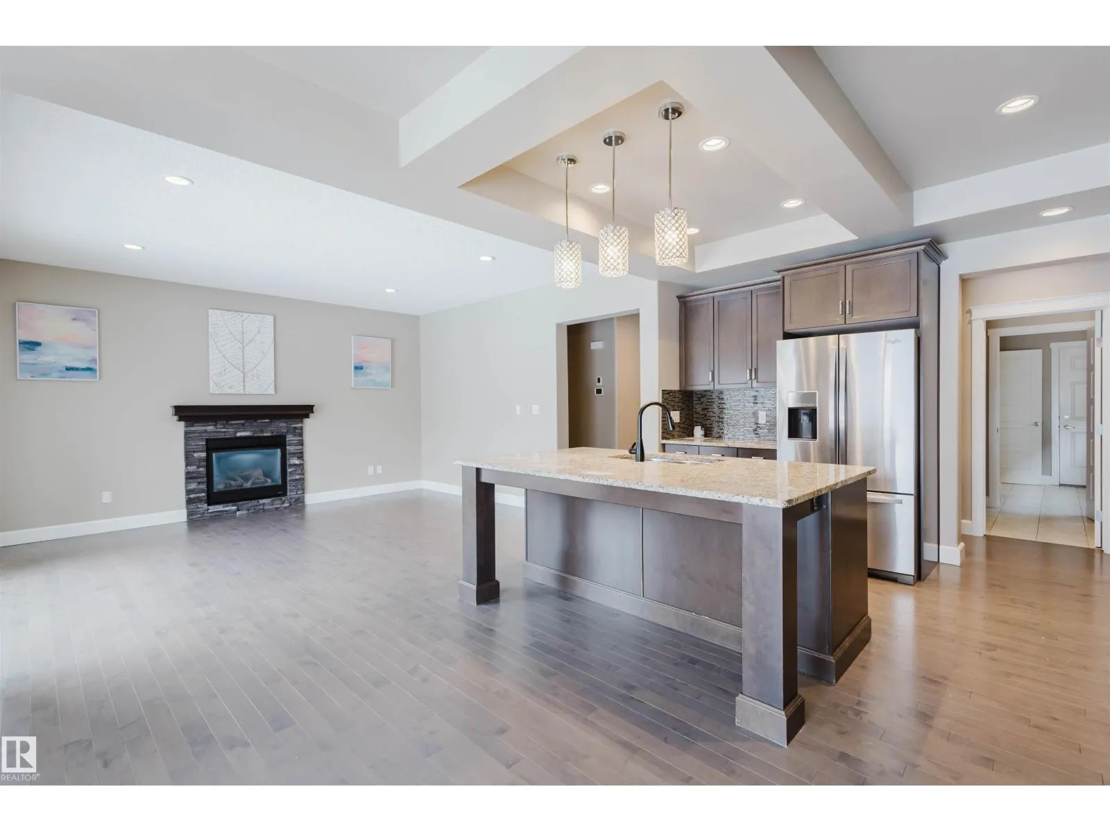 Welcome to this exceptional 2-storey home in the sought-after community of Ambleside, where near 2,700 square feet of thoughtfully designed living space combines with a premium south-facing lot backing onto a tranquil walkway. A beautiful foyer greets you and leads into the heart of the home. Featuring professional stainless steel appliances, hardwood cabinetry, a walk-through pantry, Marble counters with ample space, and a large dining area. The main level also boasts a spacious and cozy great room with gleaming hardwood floors and a stone-faced fireplace, plus a 4th bedroom / office. Upstairs, you'll find a large vaulted bonus room with plenty of windows, a luxurious master suite with a 5-piece spa-like ensuite and a walk-in closet, two other generously sized bedrooms, a 4-piece bath, and a convenient upper-level laundry room. The professionally finished basement expands your living space with a large games/family room open to a gym area, plus a 5th bedroom. It's also conveniently located. (id:27476)
