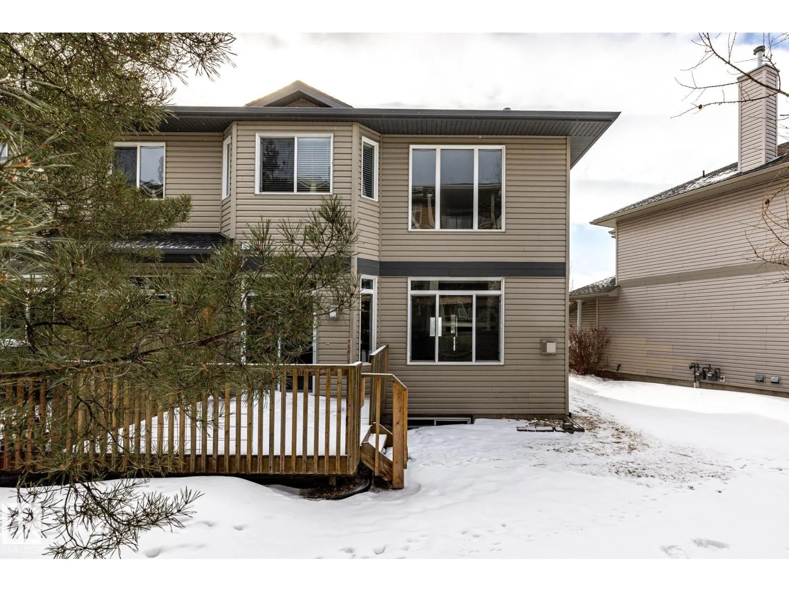 IMMACULATE ⢠TRUE PRIDE OF OWNERSHIP! Absolutely gorgeous two-storey, 2-bedroom, 2.5-bath half duplex in the sought-after community of Rutherford. The living room showcases beautiful hardwood flooring and a cozy gas fireplace perfect for relaxing evenings at home. The spacious dining area offers patio doors leading to a lovely deck, ideal for entertaining or enjoying your morning coffee. The kitchen is generously sized with timeless cabinetry and excellent functionality. The main floor also includes a convenient mudroom and a 2-piece bath. Upstairs, youâll find a massive king-sized primary bedroom with vaulted ceilings, a walk-in closet, and a 3pc ensuite bath. An additional bedroom and another full bathroom complete the upper level. The basement is Partly finished. Close to everyday amenities including Save-On-Foods, Sobeys, Cobs Bread, and Starbucks, plus a variety of restaurants. Quick access to Anthony Henday Drive and Highway 2 makes commuting a breeze. Some Photos are virtually staged. (id:27476)