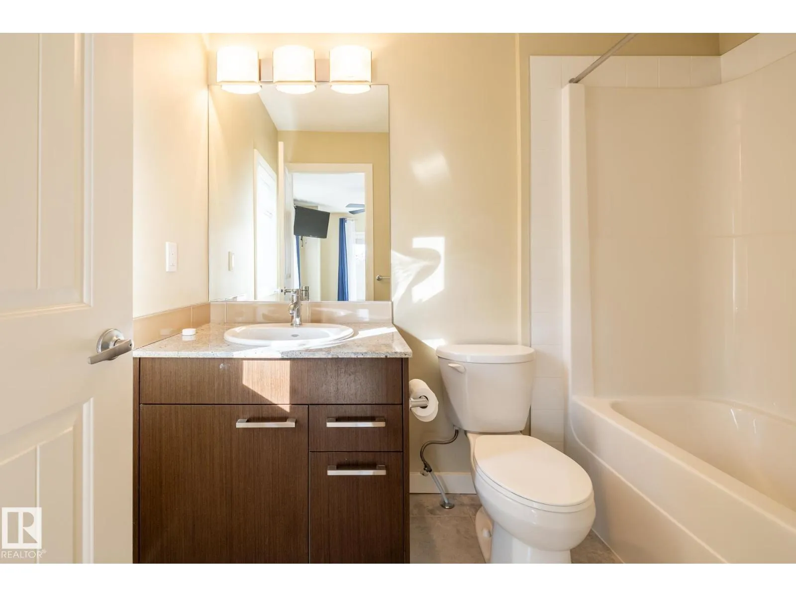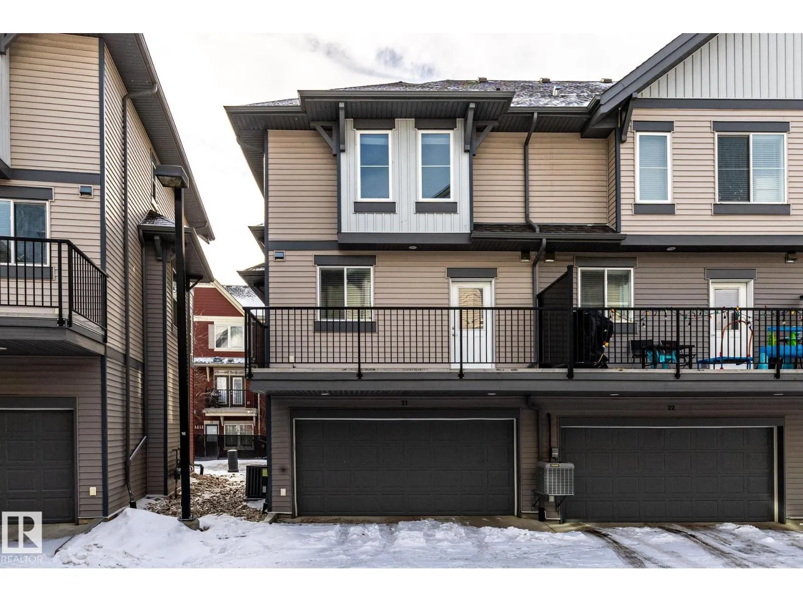 Welcome to this gorgeous 3-storey end-unit townhome, with granite countertops throughout and durable laminate and tile flooring move-in ready and designed to impress. Enter through the attached double garage to a versatile flex room with a large window, perfect for a home office, gym, or media space, with direct access to a scenic walking path. The second level features a bright open-concept layout with 9-ft ceilings, a spacious L-shaped kitchen with island and ample cabinetry, dining and living areas, a convenient powder room, and a balcony ideal for relaxing or entertaining. Upstairs offers a generous primary bedroom and a 4-piece ensuite, plus two additional bedrooms, a 4-piece main bath, and convenient top-floor laundry. Ideally located just off Ellerslie Road with quick access to Anthony Henday Drive and minutes from Meadows Recreation Centre. Close to shopping, dining, parks, and all amenities. Some Photos are virtually staged. (id:27476)