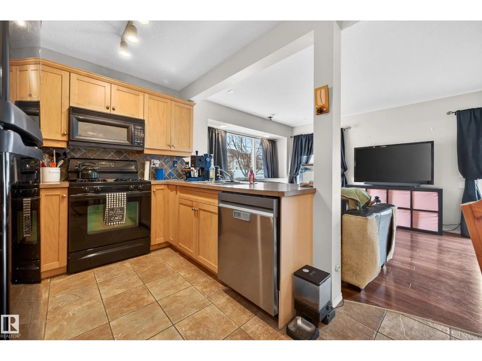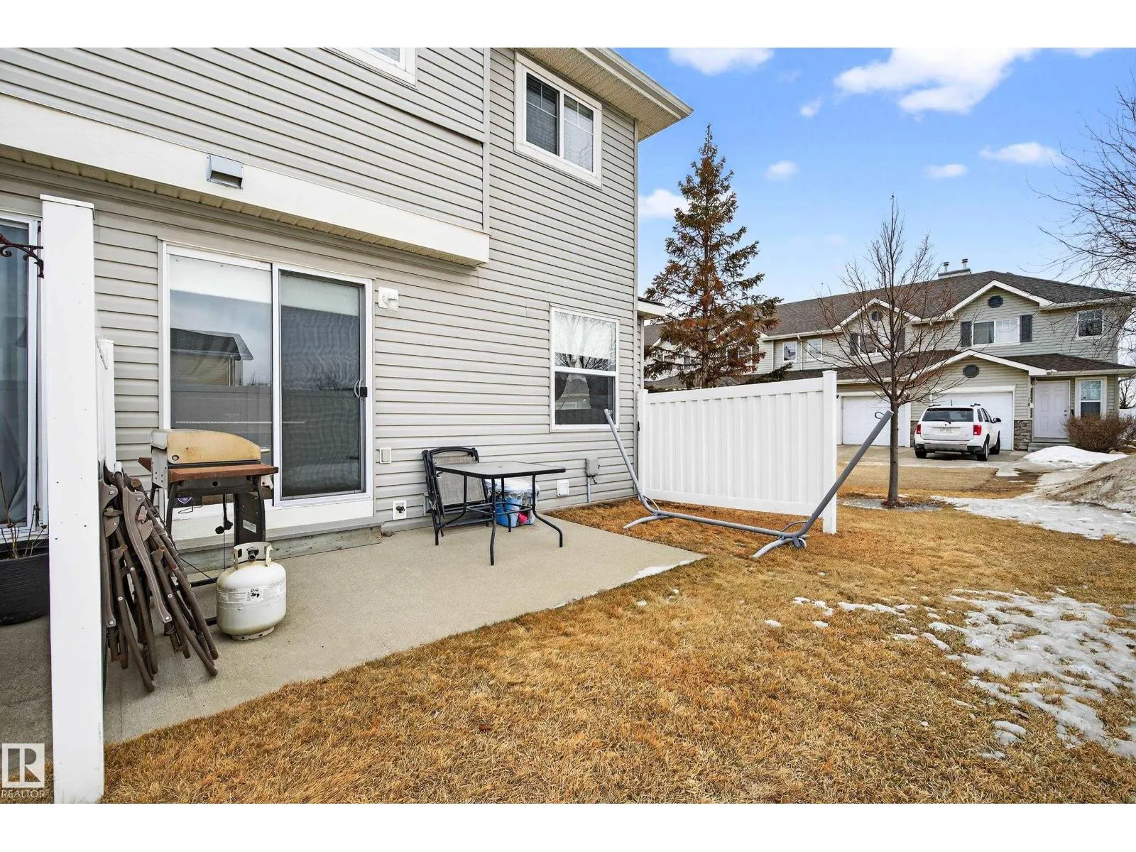 Welcome to Stonebridge! This 3 bdrm, 1.5 bath with single attached garage end unit townhouse condo, is ready for you to move in. This spacious 1200 sq ft townhouse has ample cabinets and black appliances, including a gas stove in kitchen and an eating bar, as well as a dining room. From the living room you can access the back patio through sliding glass doors. The flooring is ceramic tile and laminate flooring throughout, no carpets. There is also a 2 pce bath on main floor. The upper level has 3 bedrooms, all a good size with a walk-in closet in the primary bdrm and also has a 4 pce bathroom to complete the upper level. All levels are wired for speakers. Some areas have also been painted, including the baseboards. The basement is unspoiled and has a bathroom rough-in connection for future development potential. The garage pad is extended so that you can park 2 vehicles in the front of the garage. Close to everything - Anthony Henday, South Edmonton Common, Ellersllie and more. Great Complex! (id:27476)