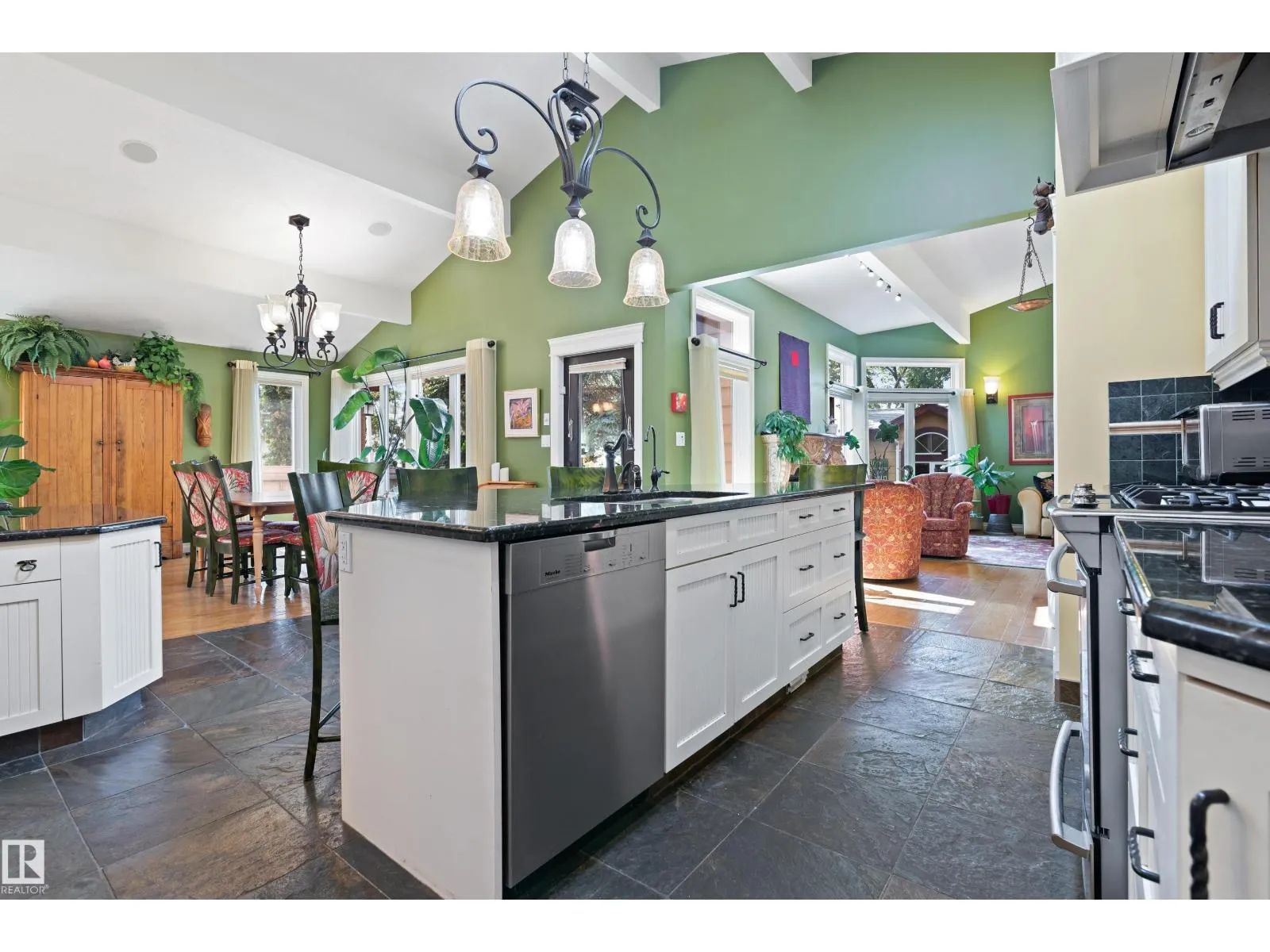 Outstanding! Majorly renovated bungalow in a very desirable location. Some of the notable features include the open beam vaulted ceilings throughout the main floor, the huge chef's kitchen with antique finish shaker maple cabinets, dark granite counters and walk in pantry, quality hand scraped engineered hardwood and slate tile flooring. The large living room with gas fireplace, 2 bedrooms, 2 full bathrooms, an amazing den with a library plus the laundry room complete the main level. The primary bdrm has a walk in closet and a spa like ensuite bathroom with walk in shower. The finished basement has spacious family room with wet bar, a 3rd bedroom, 3 pc bathroom and dry sauna. Double detached garage plus a separate heated workshop. The back yard is quite private, is fully landscaped with mature trees and perennials and there is a welcoming composite deck across the back of the home. Fantastic property, rare opportunity in Brookside! (id:27476)
