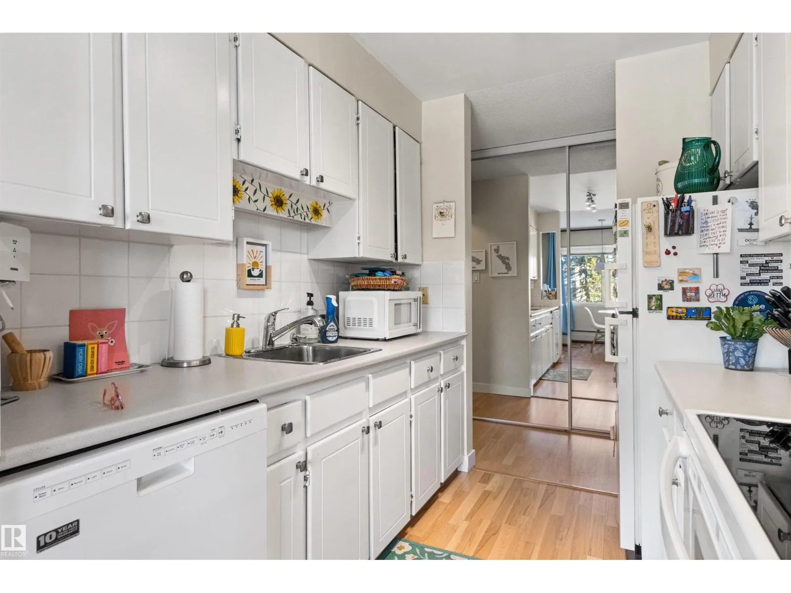 A Bright and Quiet Top Floor One Bedroom Condo overlooking a Green Space Court Yard. This unit is well designed with a Large Living Room offering plenty of Natural Light and a sliding door leading to a Balcony, a Functional Kitchen that was upgraded with cabinets and counters, a Bright Dining Area. Also highlighted is the renovated four piece bathroom, a separate storage room, insuite laundry, an energized parking stall close to the Front Door. Heat, Sewer and Water are included in the Condo Fees. Great Location - close to South Gate, LRT, Schools, Public Transportation and a Grocery Store across the Street. (id:27476)