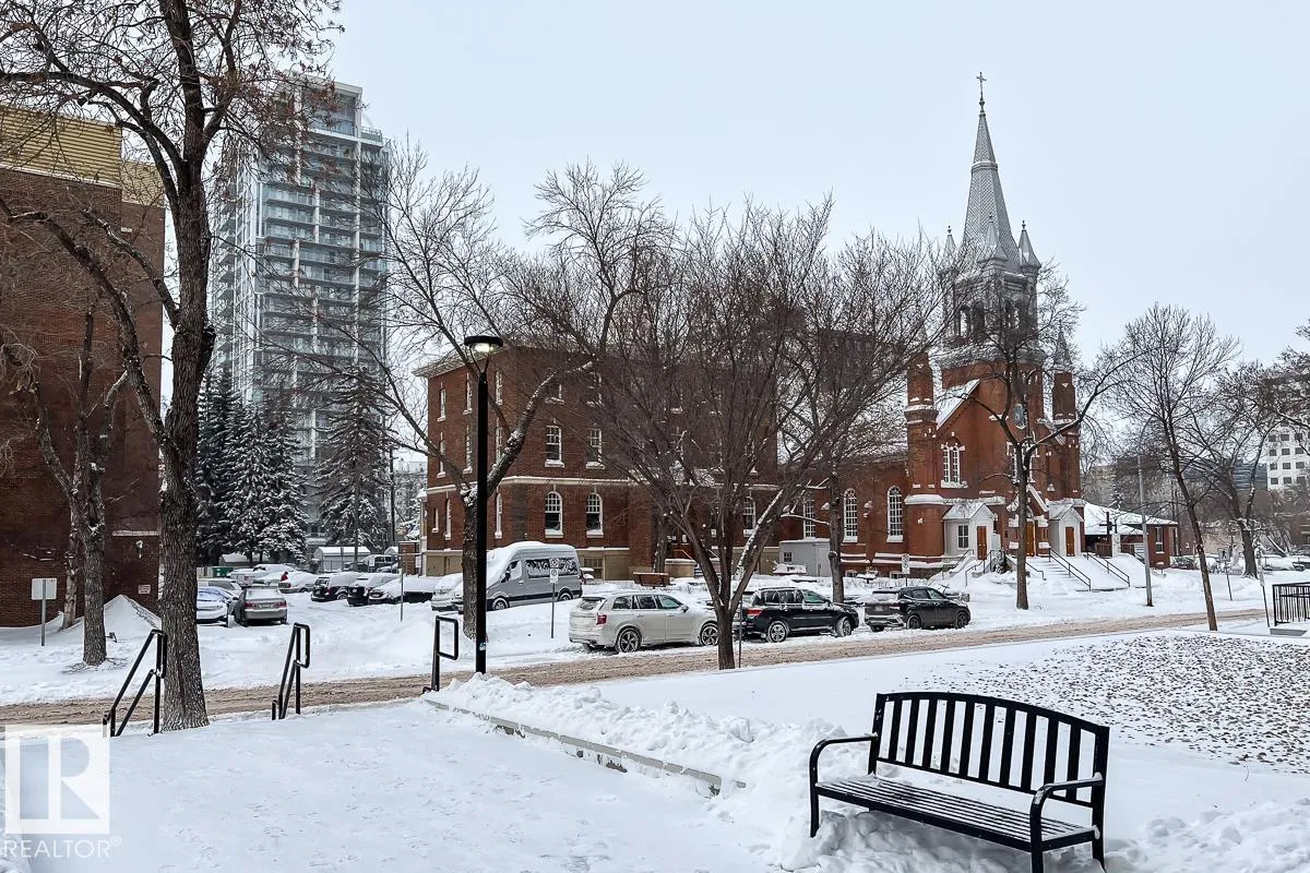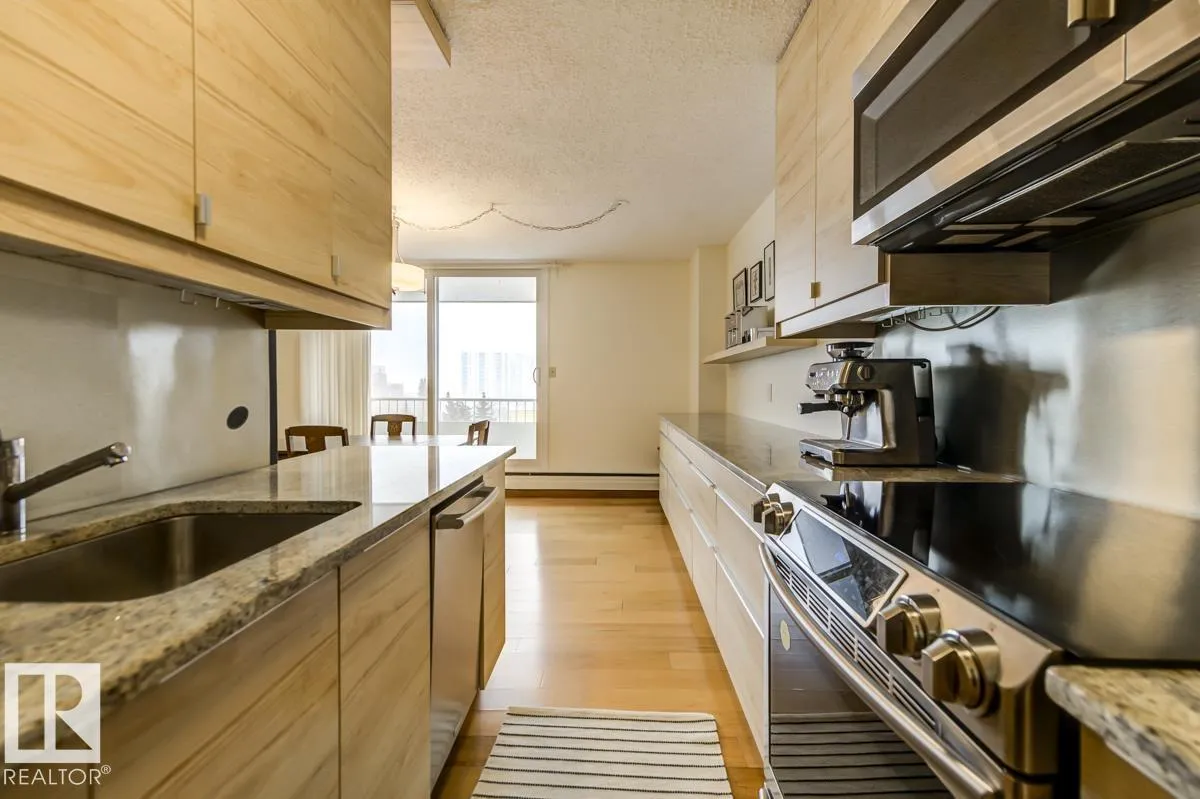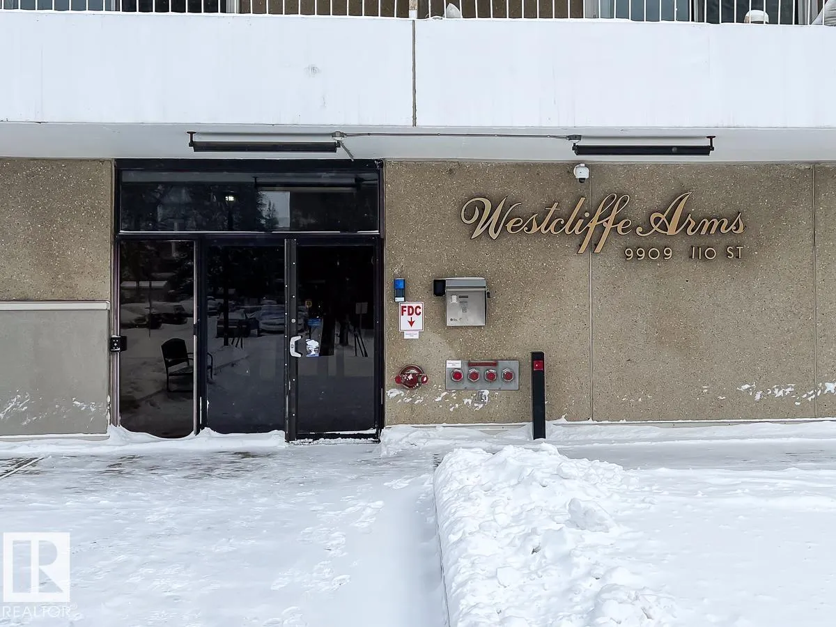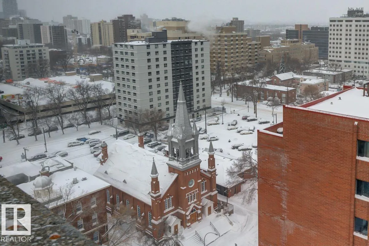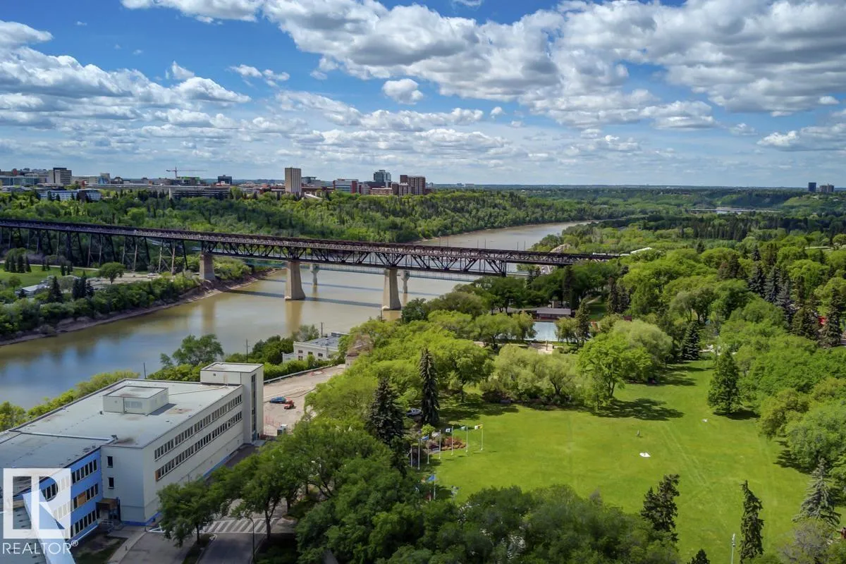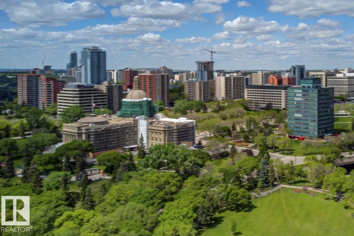 Welcome to Westcliffe Arms! This beautifully renovated 2 bed 2 bath unit offers 1062 sqft of bright living space in the heart of downtown, steps from the River Valley & LRT. Located on the 8th flr, this west-facing corner unit features beautiful river valley, Legislature & skyline views. The updated kitchen includes modern cabinetry, granite counters, S/S appliances, an adjacent dining area & balcony access. The spacious primary bedroom offers a large closet & stunning 4pc ensuite while the 2nd bedroom provides flexibility for guests, family or a convenient home office. Additional highlights include in-suite laundry, upgraded windows, extra storage, titled underground parking & solid construction of a concrete building for added soundproofing. Heat, Water & Electricity included in this well managed building w/ amenities: gym, sauna, games & social rm. Enjoy access to LRT, trendy restaurants, shopping, U of A, Grant Macewan & NAIT, all while living minutes from Edmontonâs breathtaking River Valley trails. (id:27476)