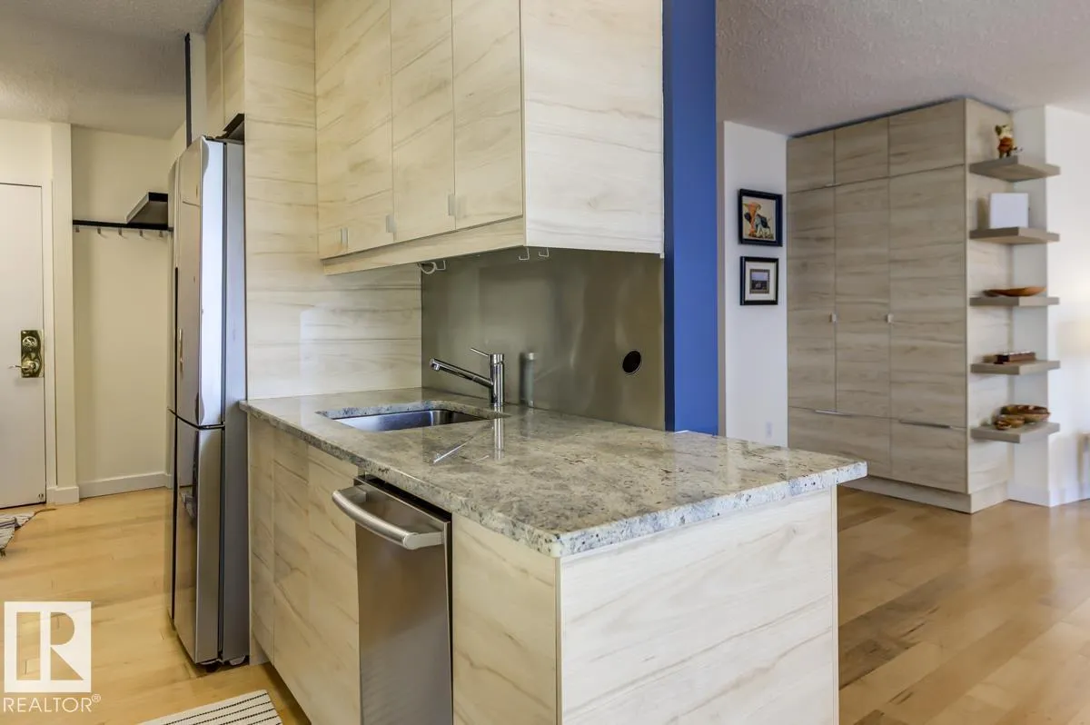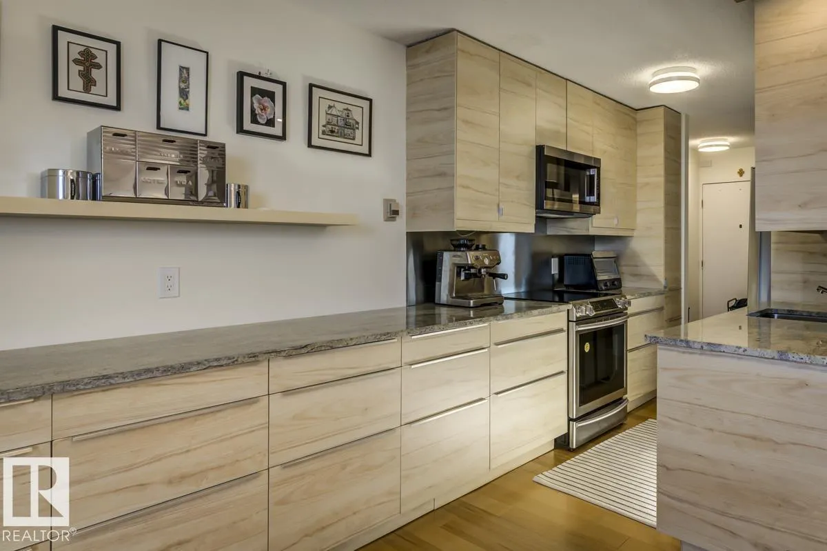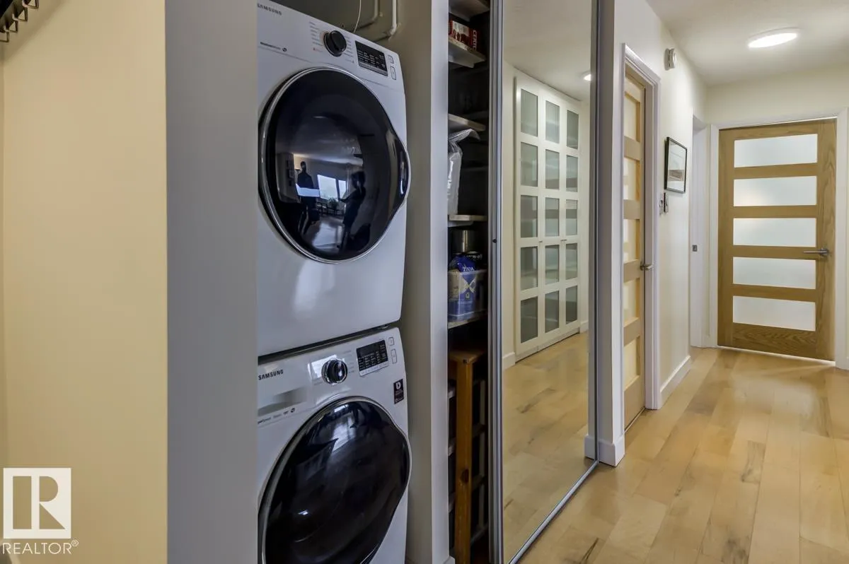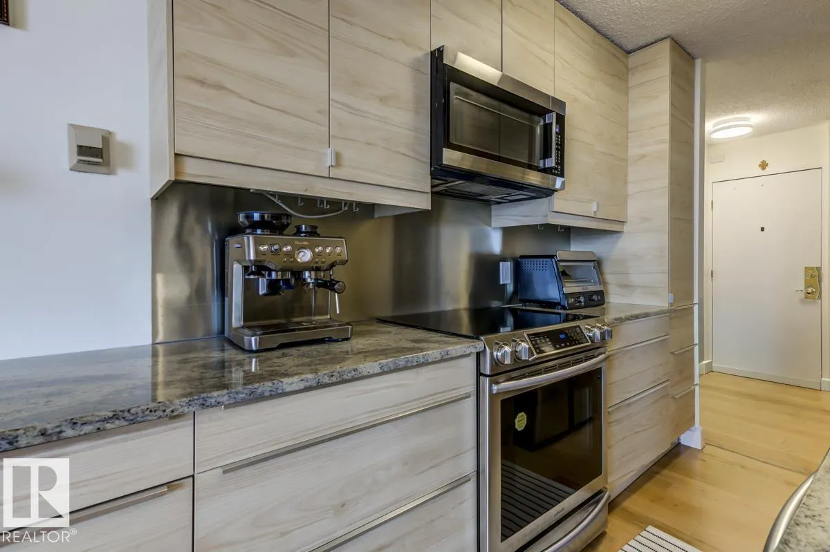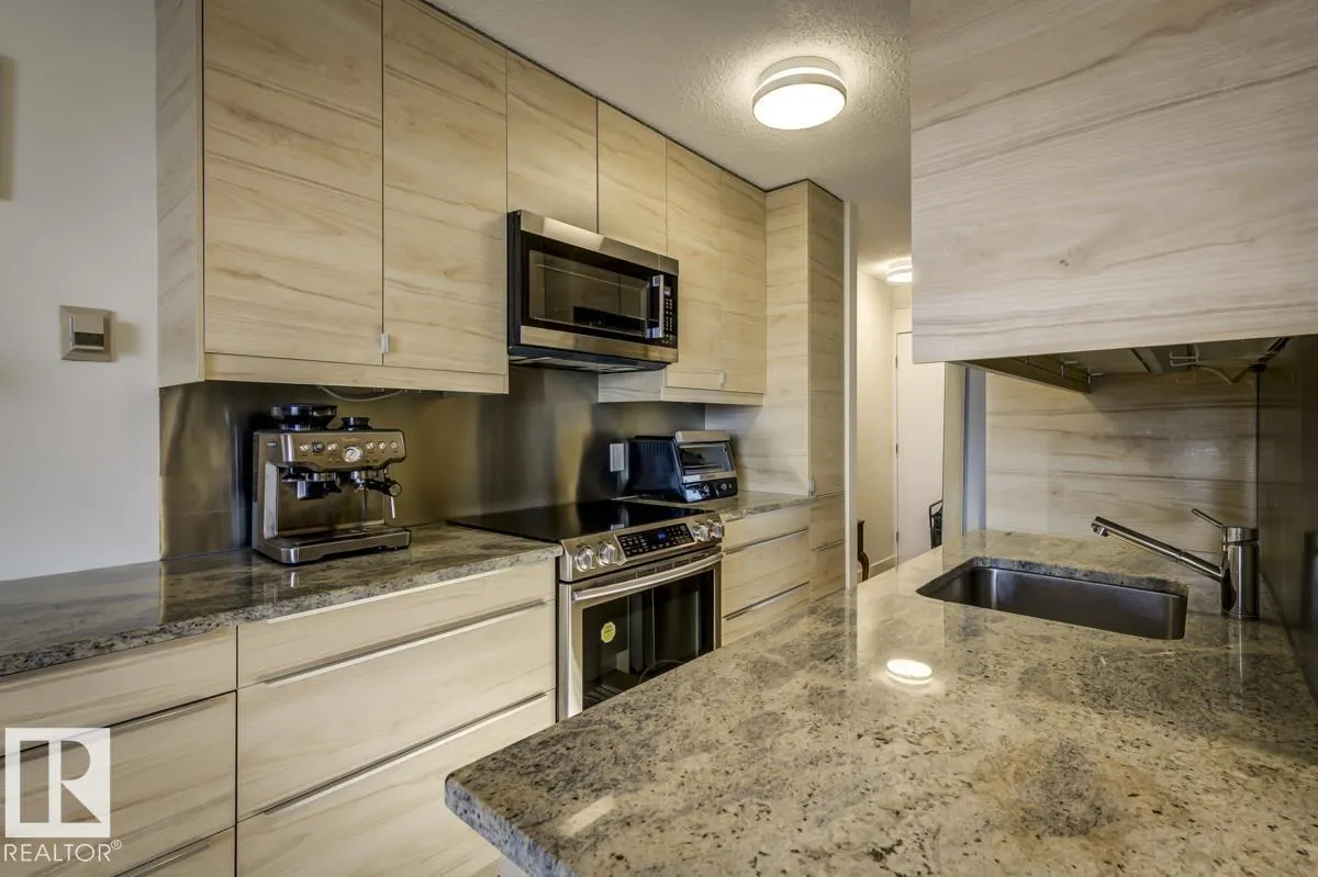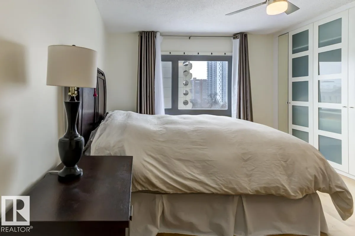 Welcome to Westcliffe Arms! This beautifully renovated 2 bed 2 bath unit offers 1062 sqft of bright living space in the heart of downtown, steps from the River Valley & LRT. Located on the 8th flr, this west-facing corner unit features beautiful river valley, Legislature & skyline views. The updated kitchen includes modern cabinetry, granite counters, S/S appliances, an adjacent dining area & balcony access. The spacious primary bedroom offers a large closet & stunning 4pc ensuite while the 2nd bedroom provides flexibility for guests, family or a convenient home office. Additional highlights include in-suite laundry, upgraded windows, extra storage, titled underground parking & solid construction of a concrete building for added soundproofing. Heat, Water & Electricity included in this well managed building w/ amenities: gym, sauna, games & social rm. Enjoy access to LRT, trendy restaurants, shopping, U of A, Grant Macewan & NAIT, all while living minutes from Edmontonâs breathtaking River Valley trails. (id:27476)