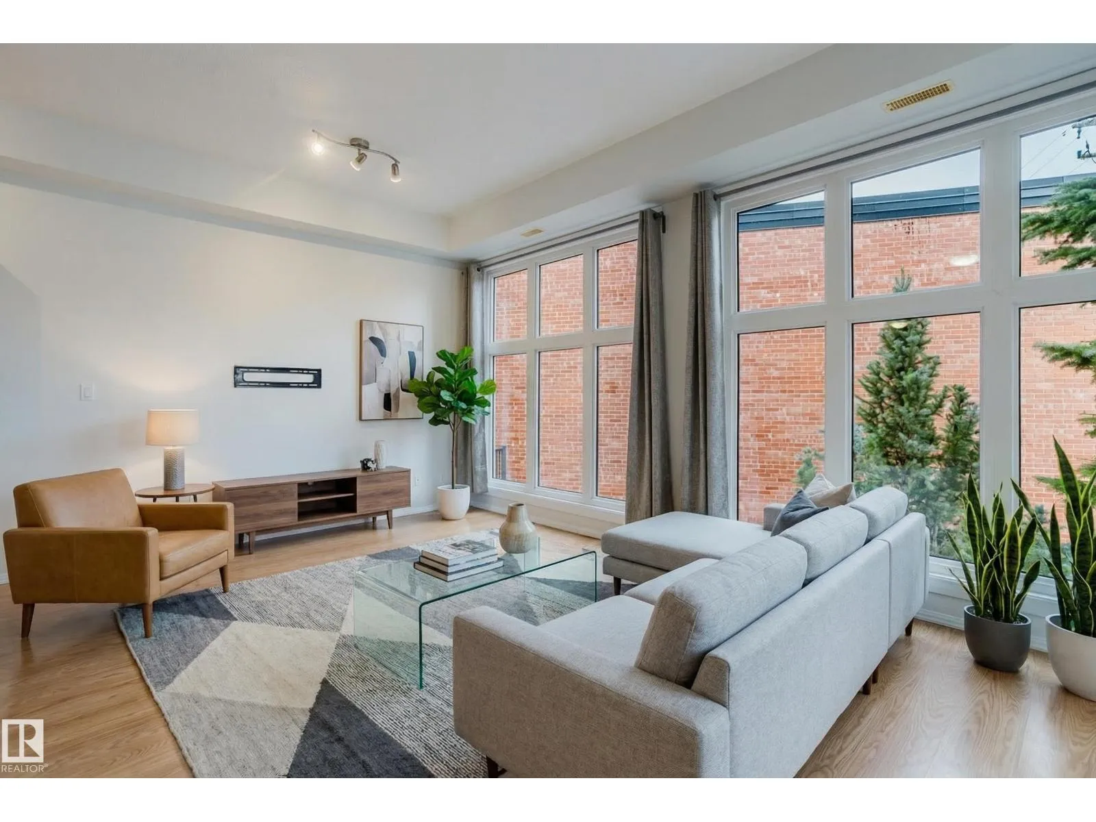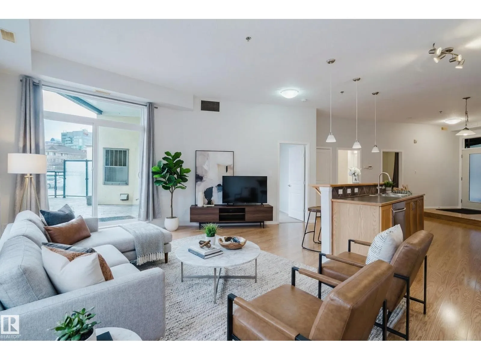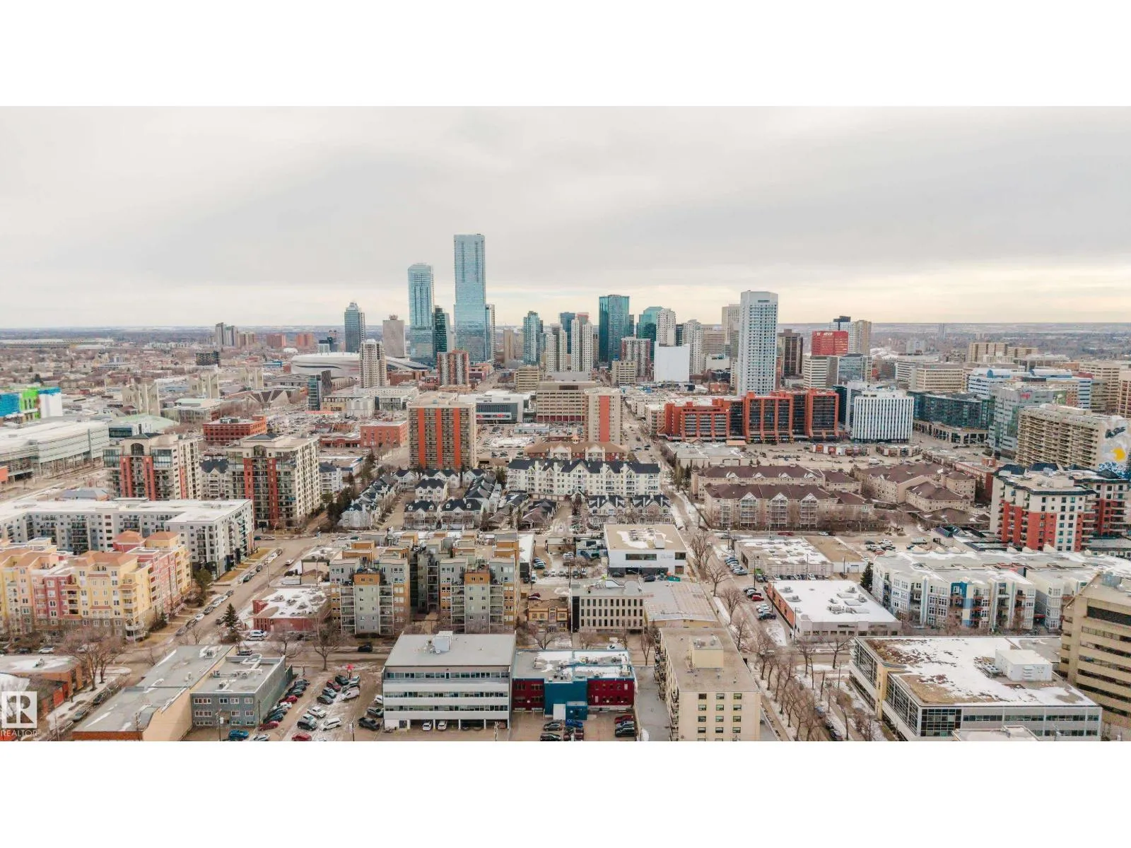 Live the GOOD LIFE in downtown Edmonton! Step inside this open concept two bedroom, one bathroom corner unit that offers style and convenience. The massive East facing windows flood the entire property with an abundance of natural light! The inviting kitchen is highlighted by a large island, ideal for entertaining, and features a three-year-old cooktop and six-year-old hood fan. The spacious living room and dining area flow out to a MASSIVE East facing patio area with a glass railing, perfect to enjoy morning coffee! A large primary and secondary bedroom, in-suite stacked laundry plus a 4-piece bathroom complete the suite. The entire unit was freshly painted. Comes with one titled underground heated parking stall with a storage cage for ultimate convenience.  Easy access to NAIT, U of A, MacEwan University and Norquest College. Walking distance to many restaurants, shopping and other amenities. Ideal as a first home, or perfect for investors focused on students or tenants who work downtown. (id:27476)