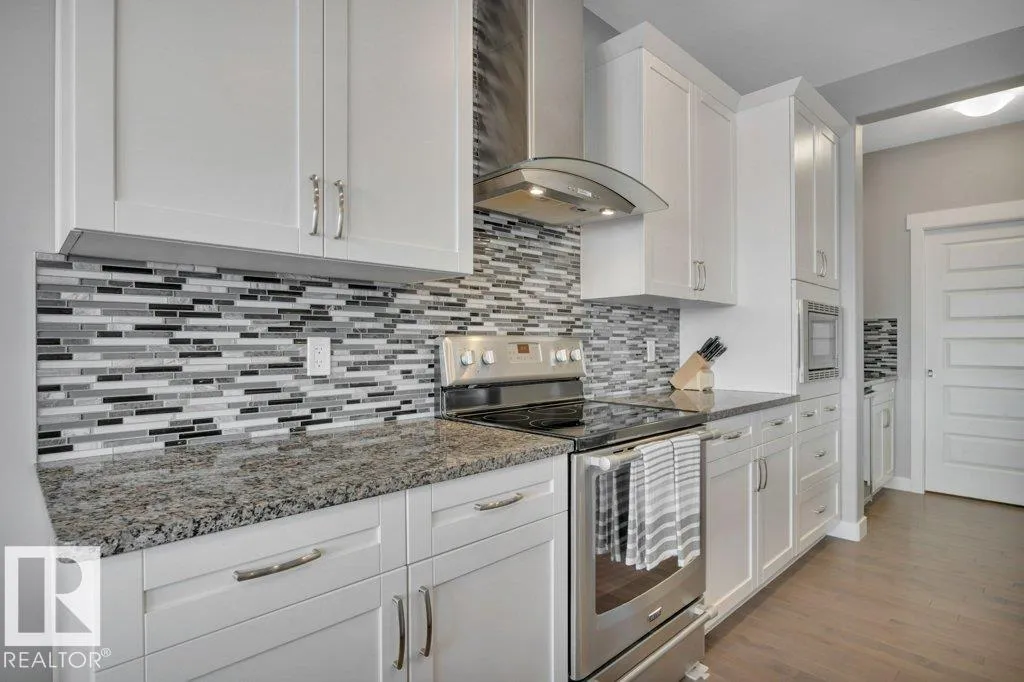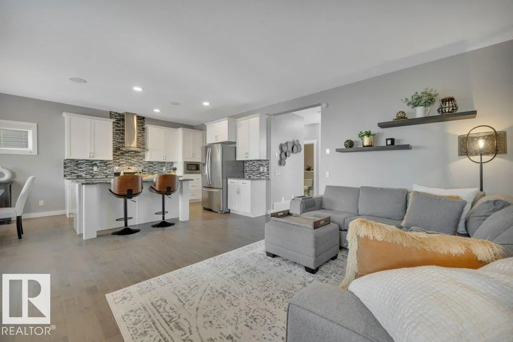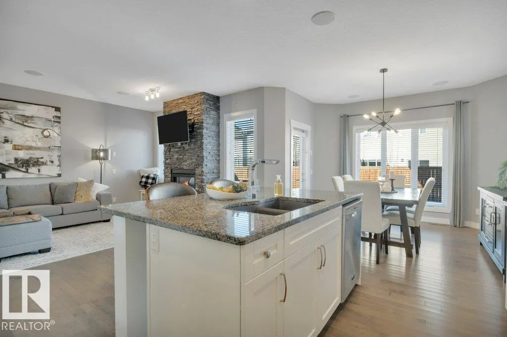 Beautiful two-storey home in Chappelle located two blocks from a K-9 school! Offering 2,048 sq ft, this meticulously maintained home features 3 bdrms & 2.5 baths w/quality upgrades throughout. The bright open-concept main floor showcases 9-ft ceilings, hardwood flooring & a stunning kitchen w/white cabinetry, granite countertops, tile backsplash, chimney hood fan & large island. A butlerâs pantry adds extra function w/a bar fridge, wine rack & prep sink. The living rm features a beautiful stone-faced fireplace. Upstairs youâll find a giant bonus room w/vaulted ceiling, upper-floor laundry & a spacious primary suite w/walk-in closet & luxurious ensuite offering dual sinks, soaker tub & oversized tiled shower. The oversized 24x22 garage is heated w/a floor drain. Central A/C, central vac & a beautifully landscaped yard w/stunning stone patio finished in exposed aggregate, stamped concrete & paving stones â perfect for relaxing or entertaining. This exceptional home is close to parks, shopping & amenities! (id:27476)