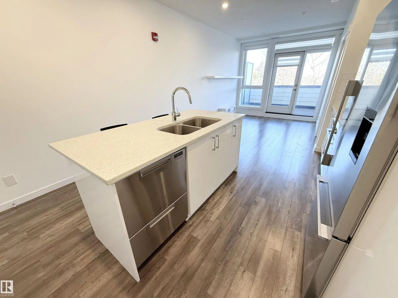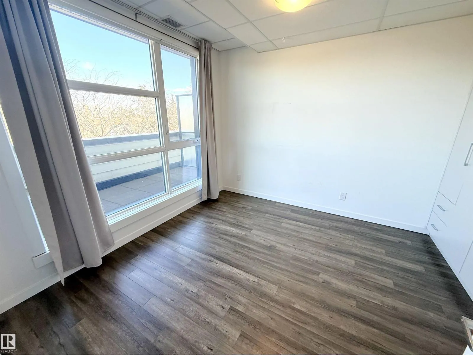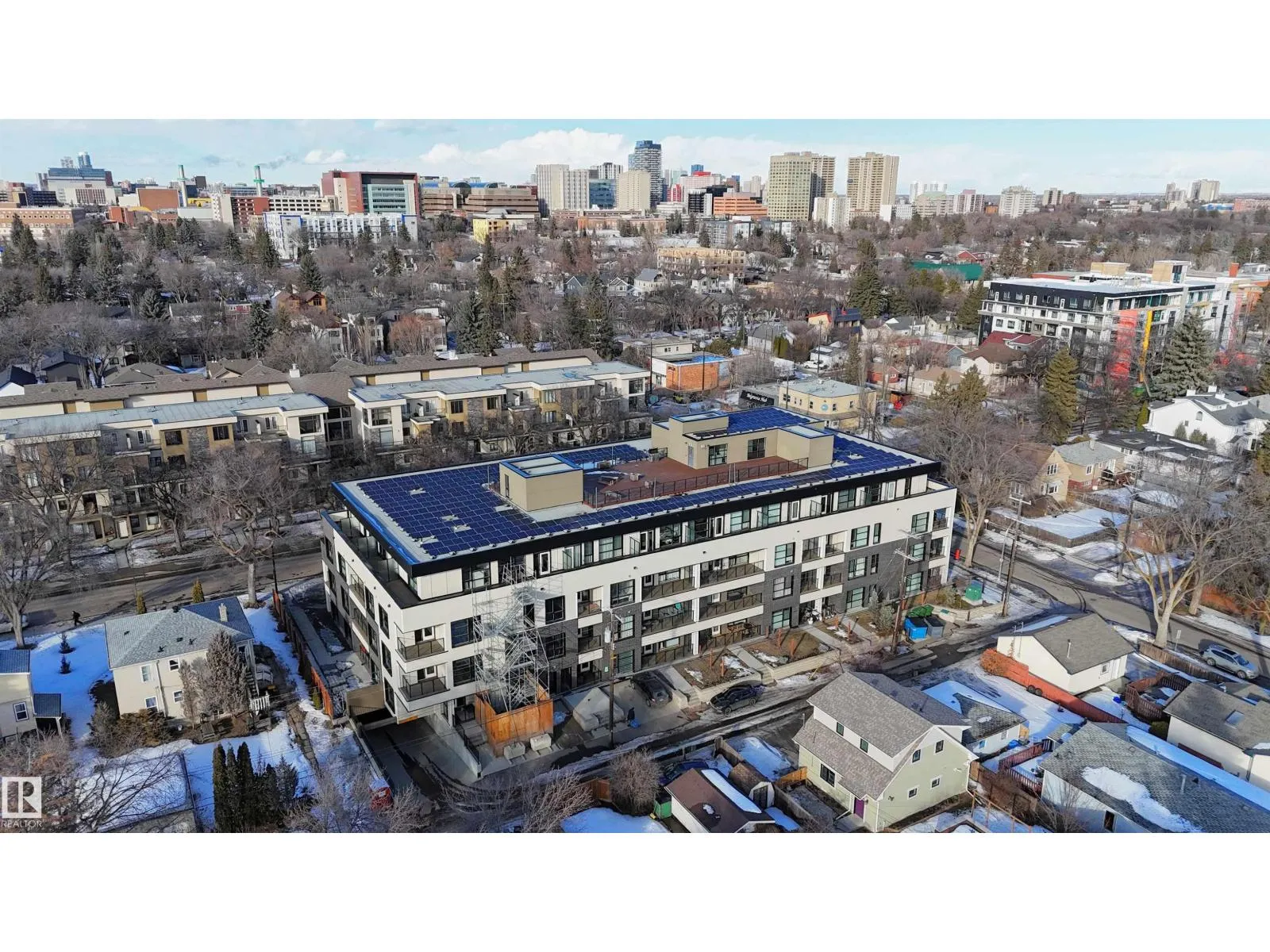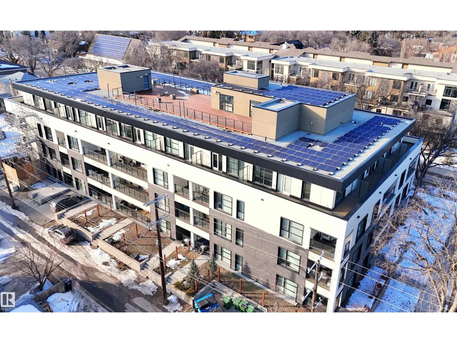 TOP FLOOR unit with in-suite laundry in the eco-friendly Belgravia Square condo complex, walking distance to University of Alberta. This modern 2019-built, 516 square foot unit features 1 bedroom with large east-facing windows, 3-piece ensuite bathroom with cheater door, washer & dryer, kitchen with eat-up island and granite countertops and a bright living room with more large windows and balcony access. This state-of-the-art condo complex features underground heated parking (one assigned stall), geothermal heating, solar panel system, face recognition security/access system and a rooftop patio common area with BBQ and seating. Centrally located within walking distance to LRT, hospital, river valley trails and Whyte Ave. Fantastic opportunity! (id:27476)
