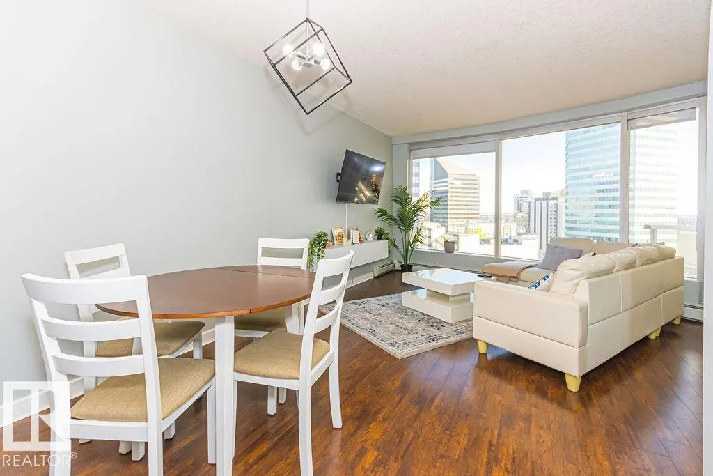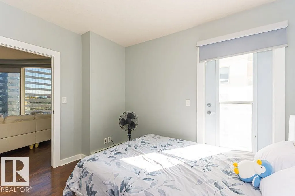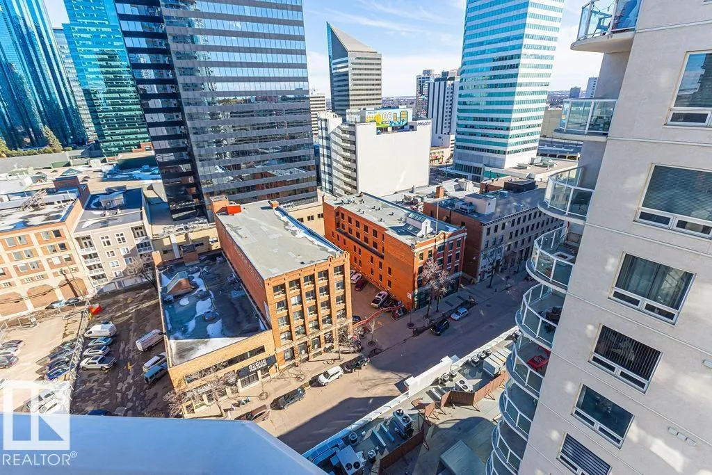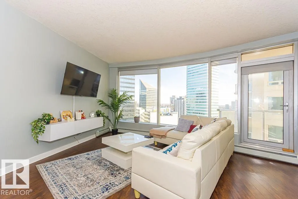 Experience vibrant downtown living from the 14th floor of Icon II in this bright 2-bedroom, 2-bathroom condo. This well-designed unit features hardwood flooring, large windows that fill the space with natural light, and beautiful views of downtown and the city skyline. The modern kitchen features granite countertops, stainless steel appliances, and opens to the comfortable living area, perfect for relaxing or entertaining. Step outside to your patio with a gas BBQ hookup and enjoy the energy of the city from above. The unit also includes in-suite laundry for added convenience. One secured underground parking stall is included, providing comfort and peace of mind year-round. Located in the heart of downtown Edmonton, you are just steps from Rogers Place, local shops, restaurants, pubs, and entertainment, making it easy to enjoy the best of the downtown lifestyle right outside your door. (id:27476)
