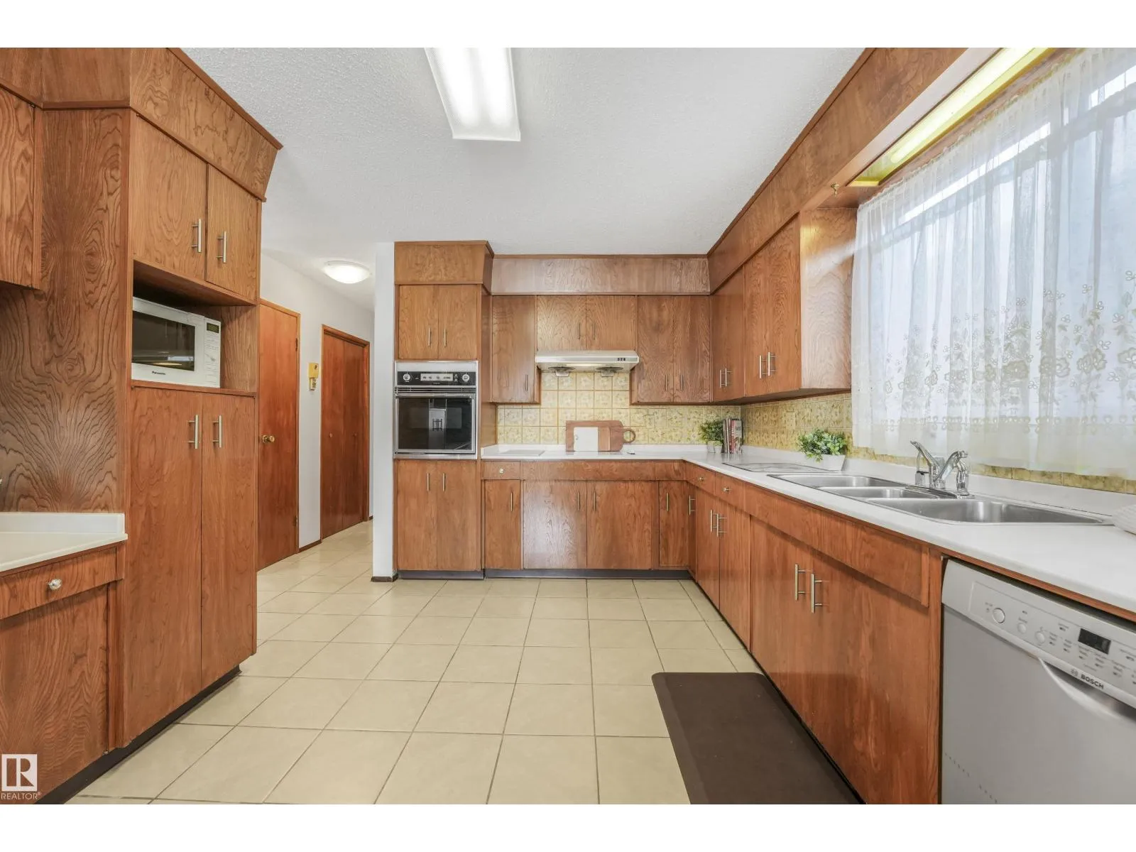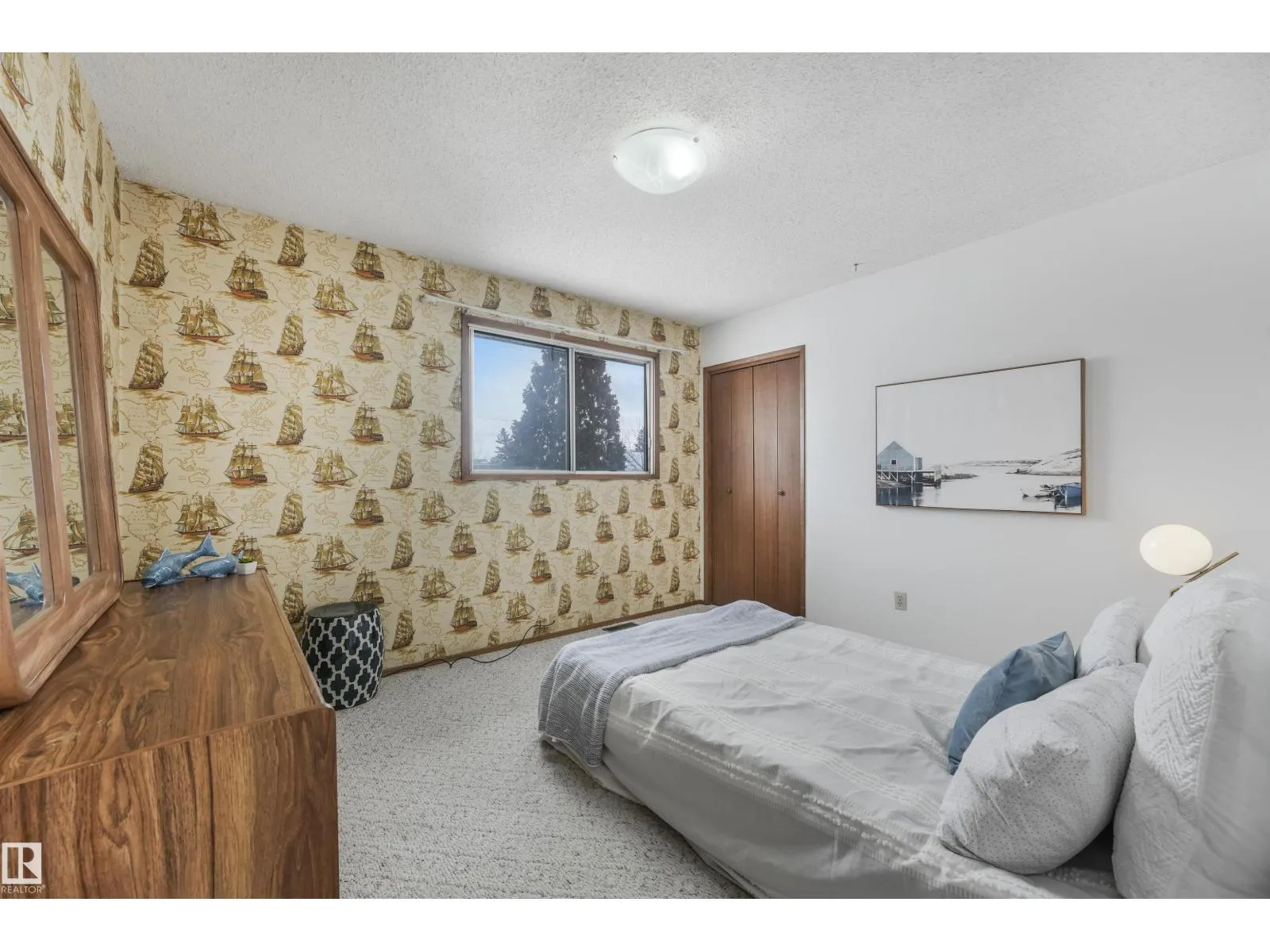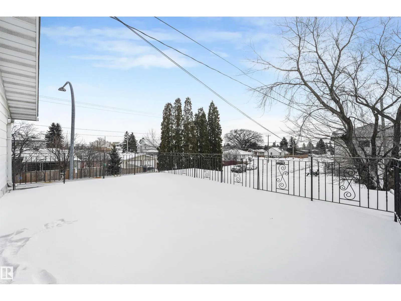 Unique property in the desirable community of King Edward Park, situated on a corner lot with an attached double garage and RARE GARAGE TOP PATIO. The functional main floor features hardwood flooring and a layout that flows seamlessly through the living room, dining room, and kitchen. The kitchen offers an abundance of cabinet space with original solid wood cabinetry, and a built-in desk. Just off the kitchen you will find additional closet storage, a 3-pc bathroom, and direct access to the garage. Upstairs features four spacious bedrooms, including the primary with a walk-in closet and 2-pc ensuite, plus a 4-pc main bathroom. From this level you can also access the expansive garage top patio, a unique outdoor space with plenty of potential. The partially finished basement includes a large recreation area and a fifth bedroom, providing flexible space for family, guests, or hobbies. Conveniently located near shopping and restaurants, with easy access to Sherwood Park Freeway and close to local schools! (id:27476)