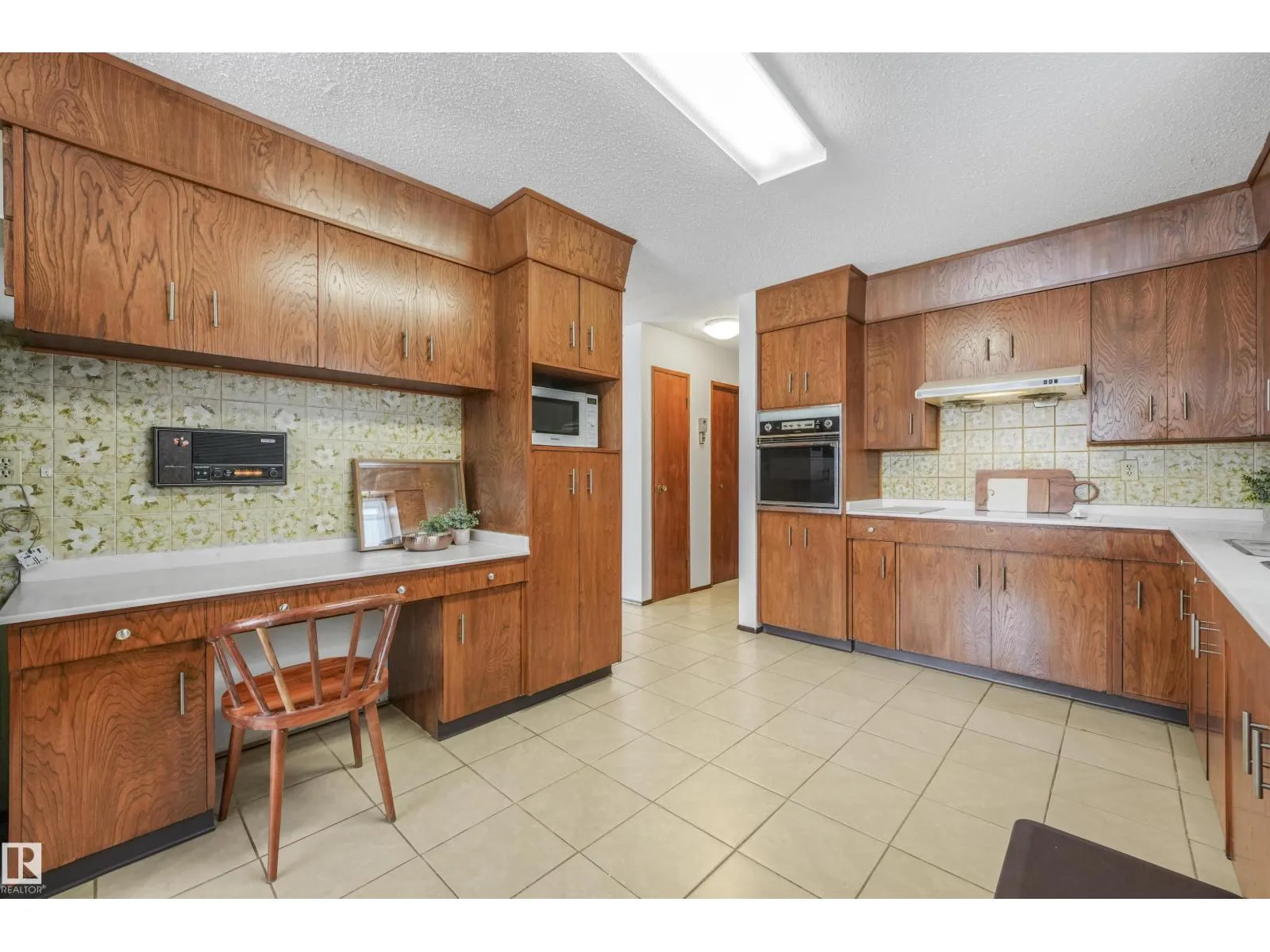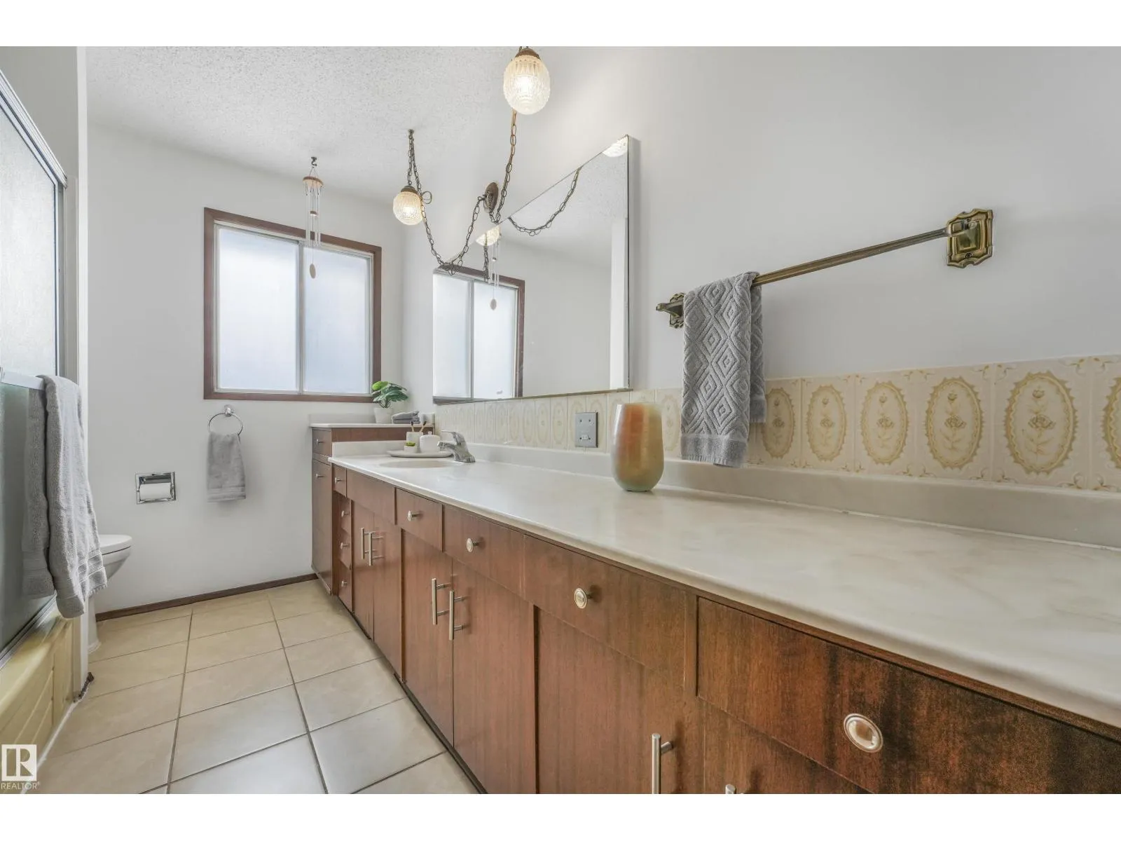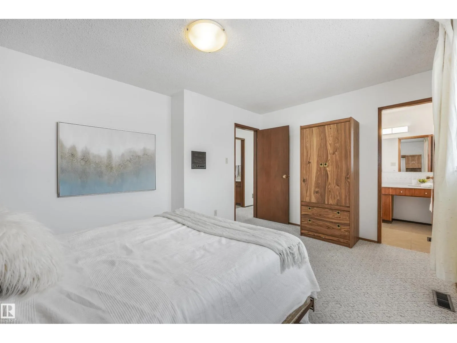 Unique property in the desirable community of King Edward Park, situated on a corner lot with an attached double garage and RARE GARAGE TOP PATIO. The functional main floor features hardwood flooring and a layout that flows seamlessly through the living room, dining room, and kitchen. The kitchen offers an abundance of cabinet space with original solid wood cabinetry, and a built-in desk. Just off the kitchen you will find additional closet storage, a 3-pc bathroom, and direct access to the garage. Upstairs features four spacious bedrooms, including the primary with a walk-in closet and 2-pc ensuite, plus a 4-pc main bathroom. From this level you can also access the expansive garage top patio, a unique outdoor space with plenty of potential. The partially finished basement includes a large recreation area and a fifth bedroom, providing flexible space for family, guests, or hobbies. Conveniently located near shopping and restaurants, with easy access to Sherwood Park Freeway and close to local schools! (id:27476)