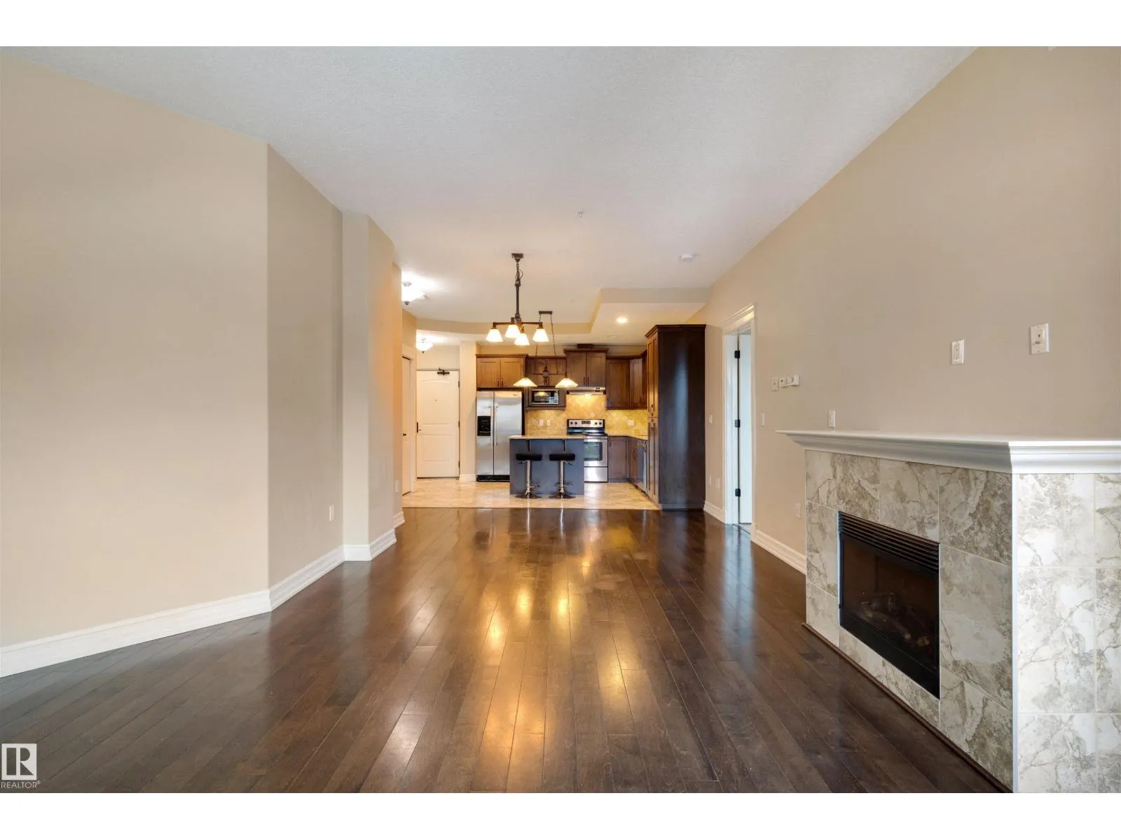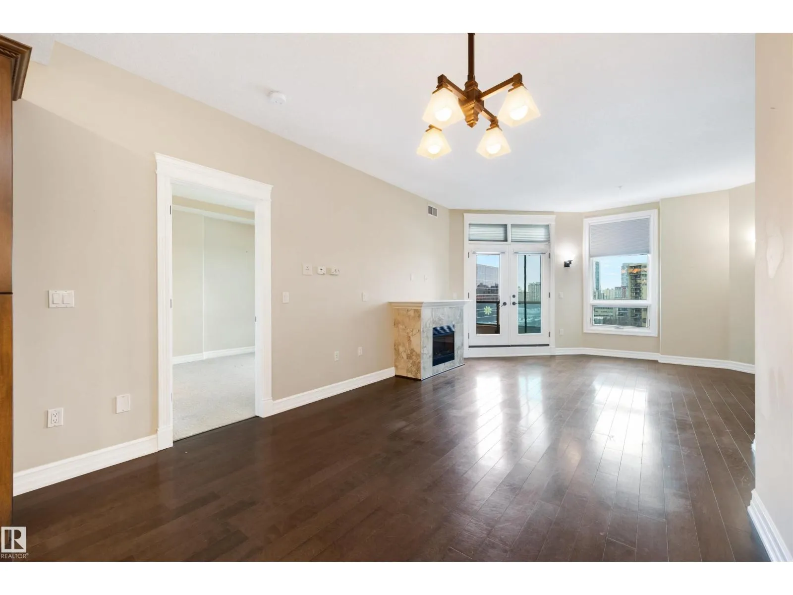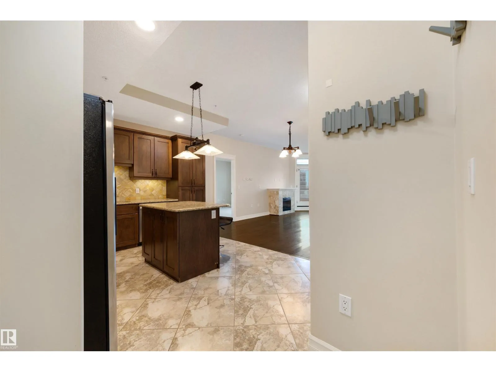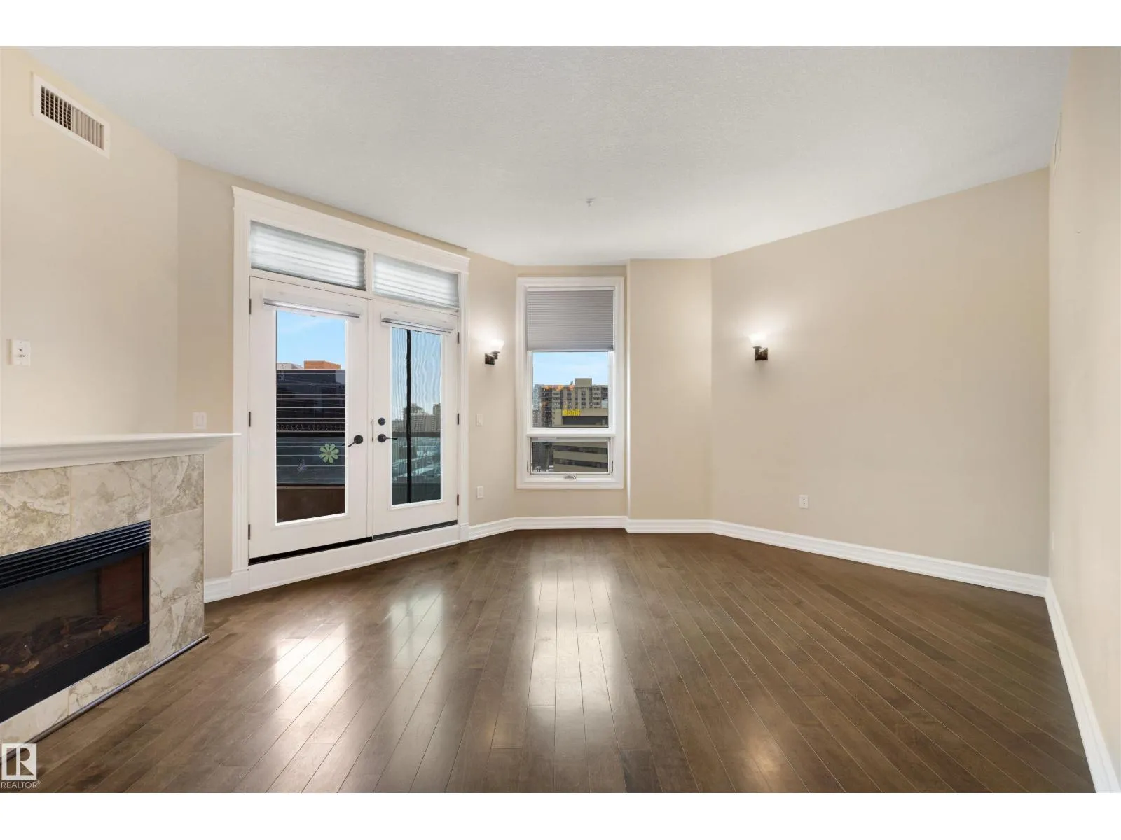 Experience the best of downtown living in this spacious 1,126 sq. ft. 2-bed, 2-bath home on the 9th floor of Meridian Place. The bright, open-concept layout features rich hardwood floors, a warm kitchen with granite countertops, stainless steel appliances, and a central island, along with a cozy gas fireplace and a private balcony with city views. Both bedrooms are generously sized and well-separated for privacy, each with its own full bathroom. The home also offers in-suite laundry, ample storage, and access to a well-equipped fitness room. All of this is set in the heart of downtown Edmonton, just steps from restaurants, shopping, transit, and the river valley, creating a comfortable and stylish urban lifestyle. (id:27476)