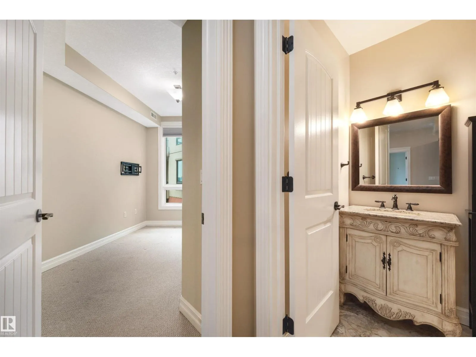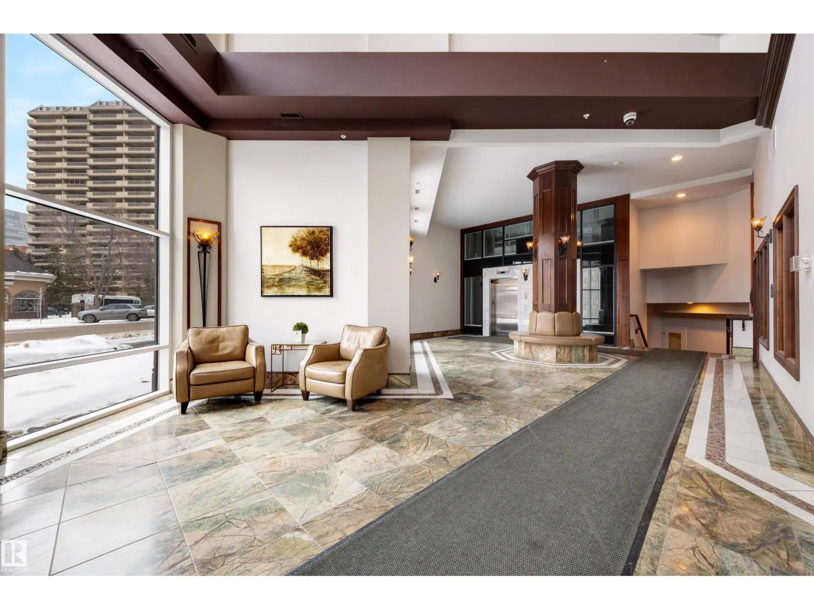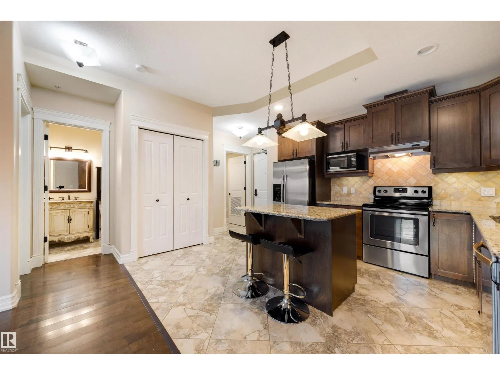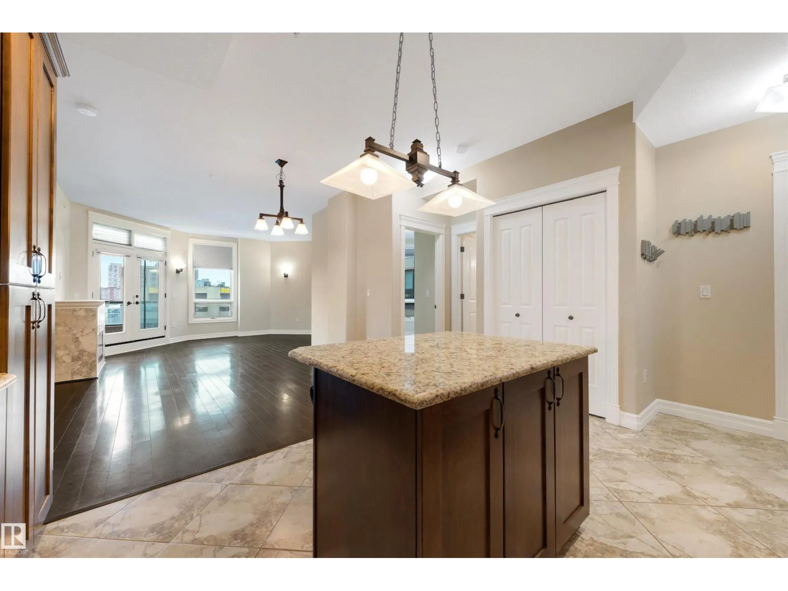 Experience the best of downtown living in this spacious 1,126 sq. ft. 2-bed, 2-bath home on the 9th floor of Meridian Place. The bright, open-concept layout features rich hardwood floors, a warm kitchen with granite countertops, stainless steel appliances, and a central island, along with a cozy gas fireplace and a private balcony with city views. Both bedrooms are generously sized and well-separated for privacy, each with its own full bathroom. The home also offers in-suite laundry, ample storage, and access to a well-equipped fitness room. All of this is set in the heart of downtown Edmonton, just steps from restaurants, shopping, transit, and the river valley, creating a comfortable and stylish urban lifestyle. (id:27476)