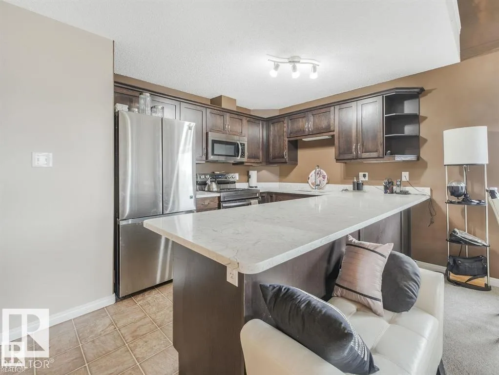 Welcome to this stunning top-floor, end-unit condo featuring 15-foot ceilings and a rare two-level loft layout! This beautifully upgraded home offers 2 spacious bedrooms, 2 full bathrooms, and a renovated kitchen with upgraded appliances, a breakfast bar, and plenty of cupboard space. The bright and airy open-concept living and dining area flows seamlessly onto a private balcony with an impressive view. Upstairs, you'll find a loft-style family room overlooking the main level â a rare find that adds extra living space and modern flair. Enjoy the comfort of 2 titled underground parking stalls, plus bonus income with one stall currently rented at $120/month. With ample visitor parking and an executive-style layout, this home is truly one of a kind. Donât miss your chance to own this gorgeous, spacious, and unique condoâperfect for professionals, small families, or investors. (id:27476)