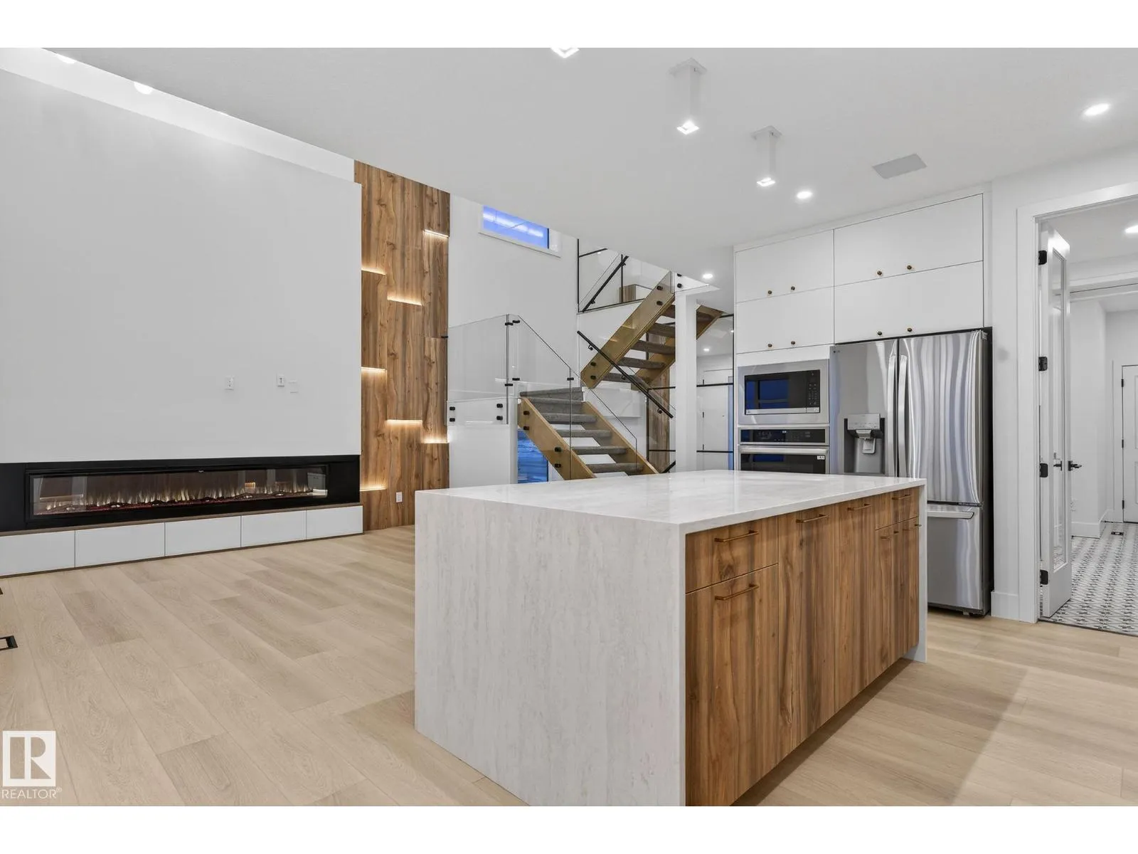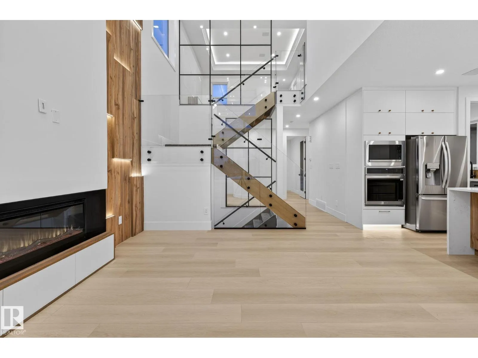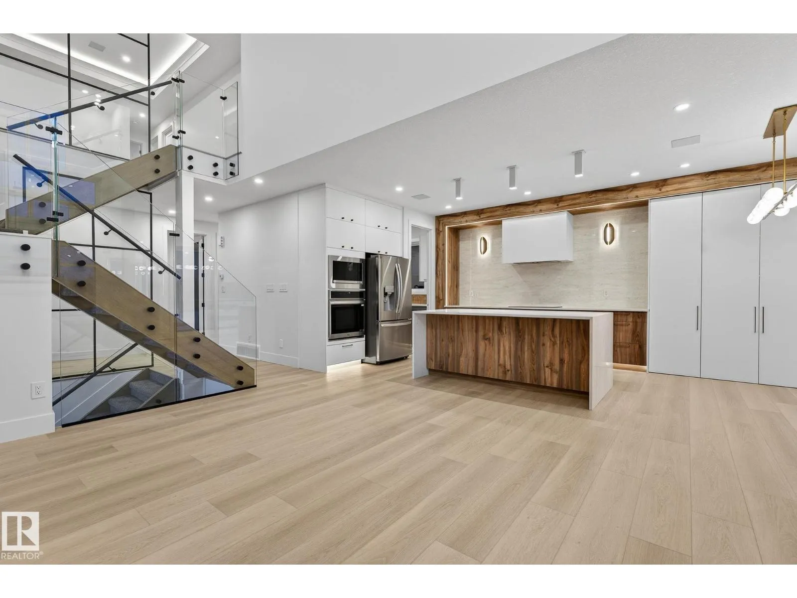 Welcome to THE ORCHARDS, one of the South Edmonton's most popular and family friendly communities. This stunning 4 BEDROOM, 3 BATHROOM single family home with close to 2400 sq ft area sits on a walkout lot backing onto a serene pond with full Deck, offering both luxury and tranquility. The main floor features a bedroom with a full bath, 9ft ceilings, hidden bar for entertainment and a large chef's kitchen with premium quartz countertops, high end cabinetry, vinyl flooring. Enjoy the abundance of natural light from extra large windows and admire the imported designer lightning and plumbing fixtures. The second floor includes 3 large bedrooms, 2 bathrooms, bonus room elegantly partitioned with a sleek glass panel ,a walk-in laundry room with central vacuum rough-in and built in speakers throughout the house. Ideally located close to parks, schools, the airport and major highways, this home combines upscale finishes with everyday convenience, a perfect choice for modern family living. (id:27476)