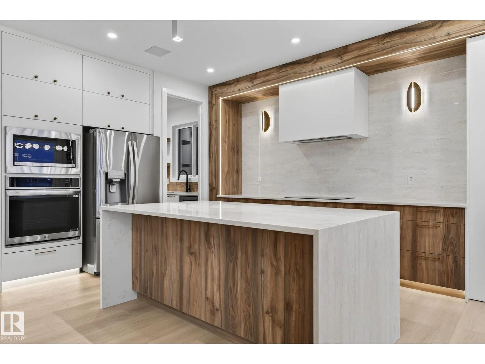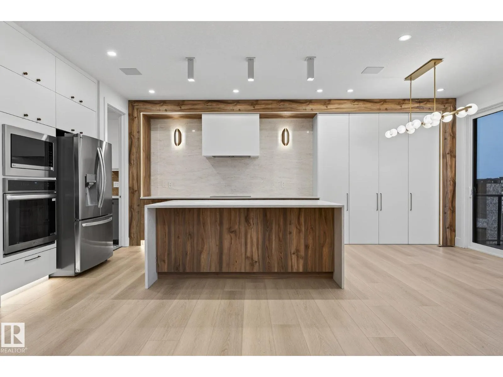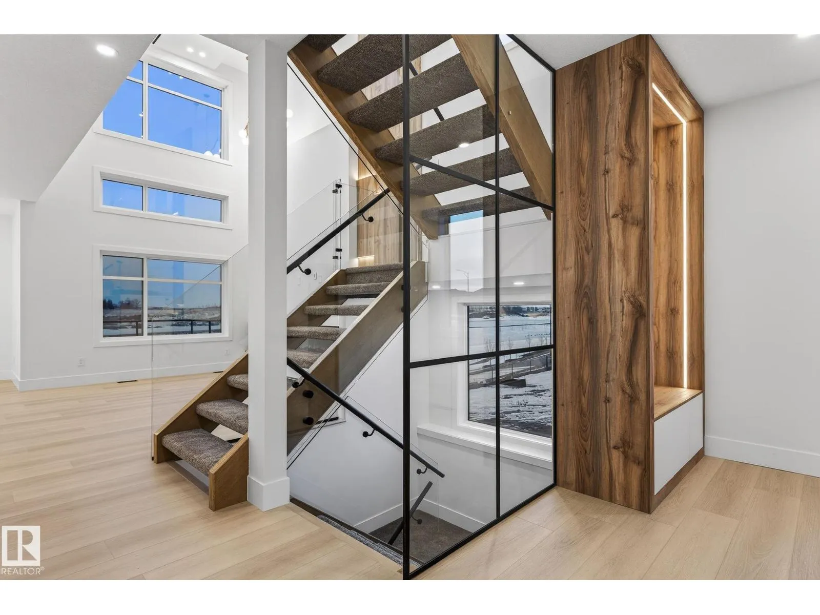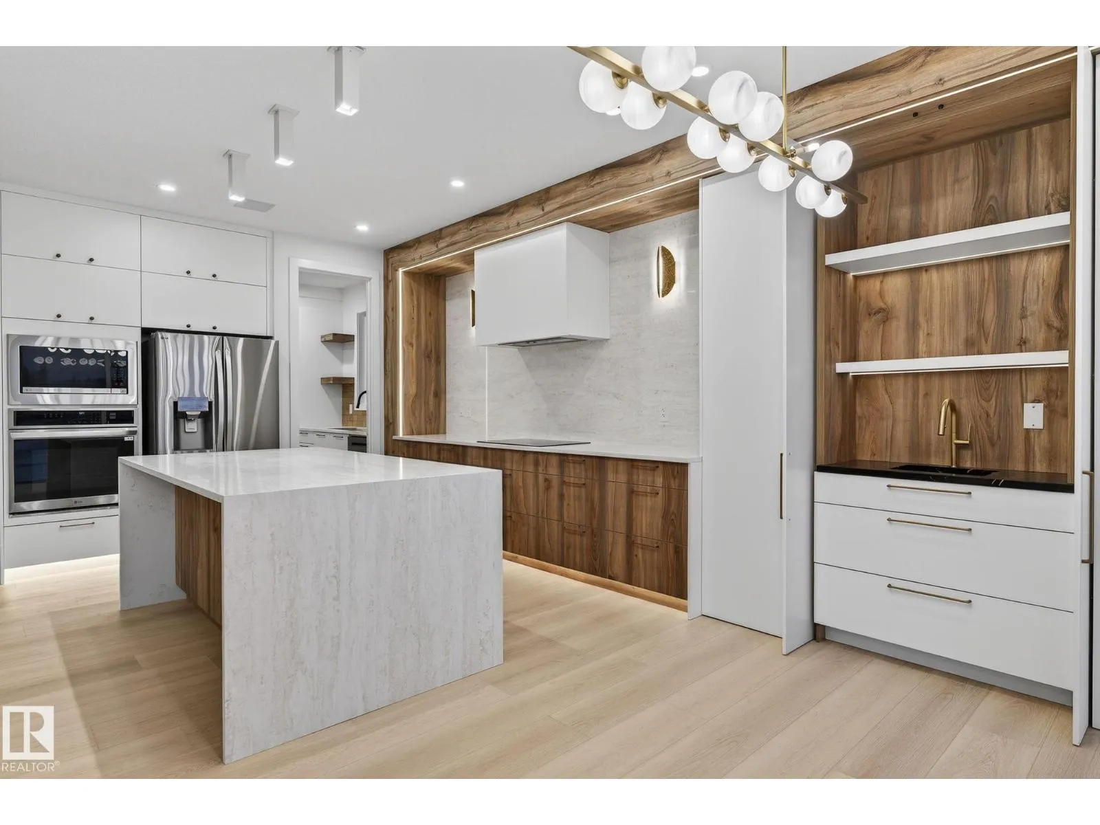 Welcome to THE ORCHARDS, one of the South Edmonton's most popular and family friendly communities. This stunning 4 BEDROOM, 3 BATHROOM single family home with close to 2400 sq ft area sits on a walkout lot backing onto a serene pond with full Deck, offering both luxury and tranquility. The main floor features a bedroom with a full bath, 9ft ceilings, hidden bar for entertainment and a large chef's kitchen with premium quartz countertops, high end cabinetry, vinyl flooring. Enjoy the abundance of natural light from extra large windows and admire the imported designer lightning and plumbing fixtures. The second floor includes 3 large bedrooms, 2 bathrooms, bonus room elegantly partitioned with a sleek glass panel ,a walk-in laundry room with central vacuum rough-in and built in speakers throughout the house. Ideally located close to parks, schools, the airport and major highways, this home combines upscale finishes with everyday convenience, a perfect choice for modern family living. (id:27476)