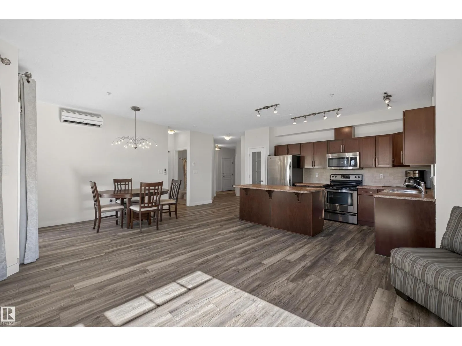 It does not get better than this. This 1,142 SqFt 2 Bedrm & 2 Full Bathrm condo with a Titled, Underground parking stall has been lovingly cared for by it's original owner & is waiting for you to call it your home. NEWER A/C; Laminate Flooring; Dishwasher. With 9' ceilings & plenty of windows, this CORNER Unit is very bright & inviting. Whether inside or outside enjoying the sun on the covered patio, you can be sure to find peace at the end of a long day! The Kitchen offers plenty of cabinets & counterspace; a large island; pantry & S/S appliances. The Dining area has patio doors that lead you out onto the patio & the spacious Living Rm features an electric Fireplace. The 2 Bedrms include a large Primary Bedrm that boasts a full Ensuite (with a Walk-In Shower) & W/I closet. The 2nd Bedrm has a murphy bed so it can double as an office or TV room! The Main Bathrm & Laundry/Storage Rm complete this floor. Amenities incl: exercise rm; guest suite; car wash & social rm. Be a part of the Glastonbury community (id:27476)