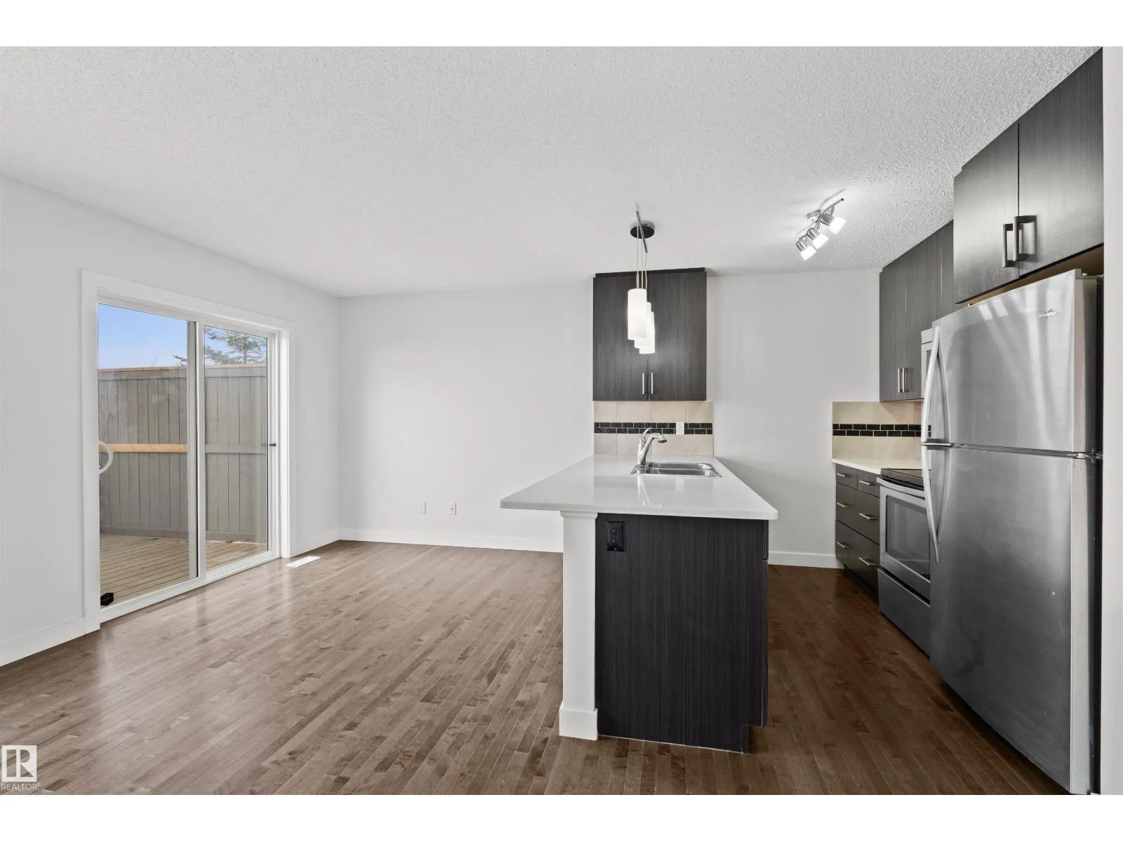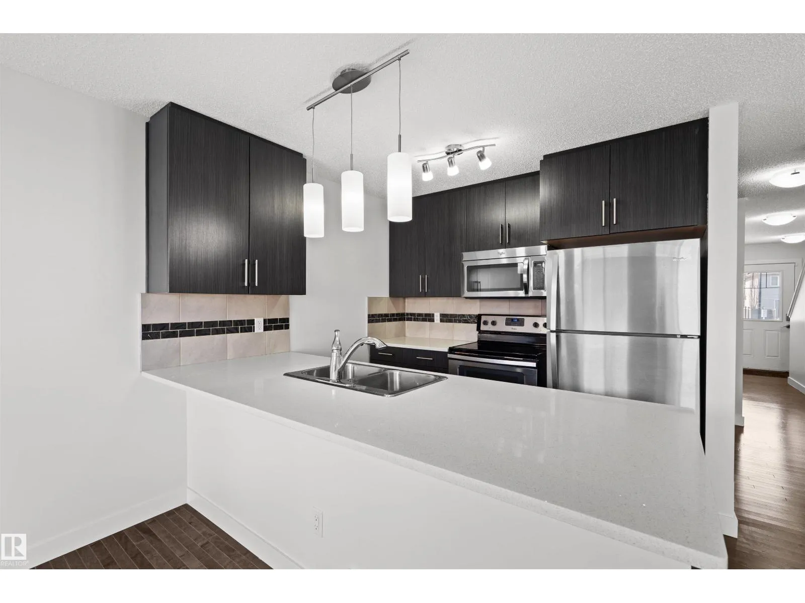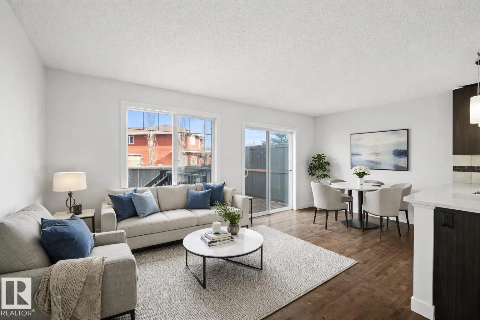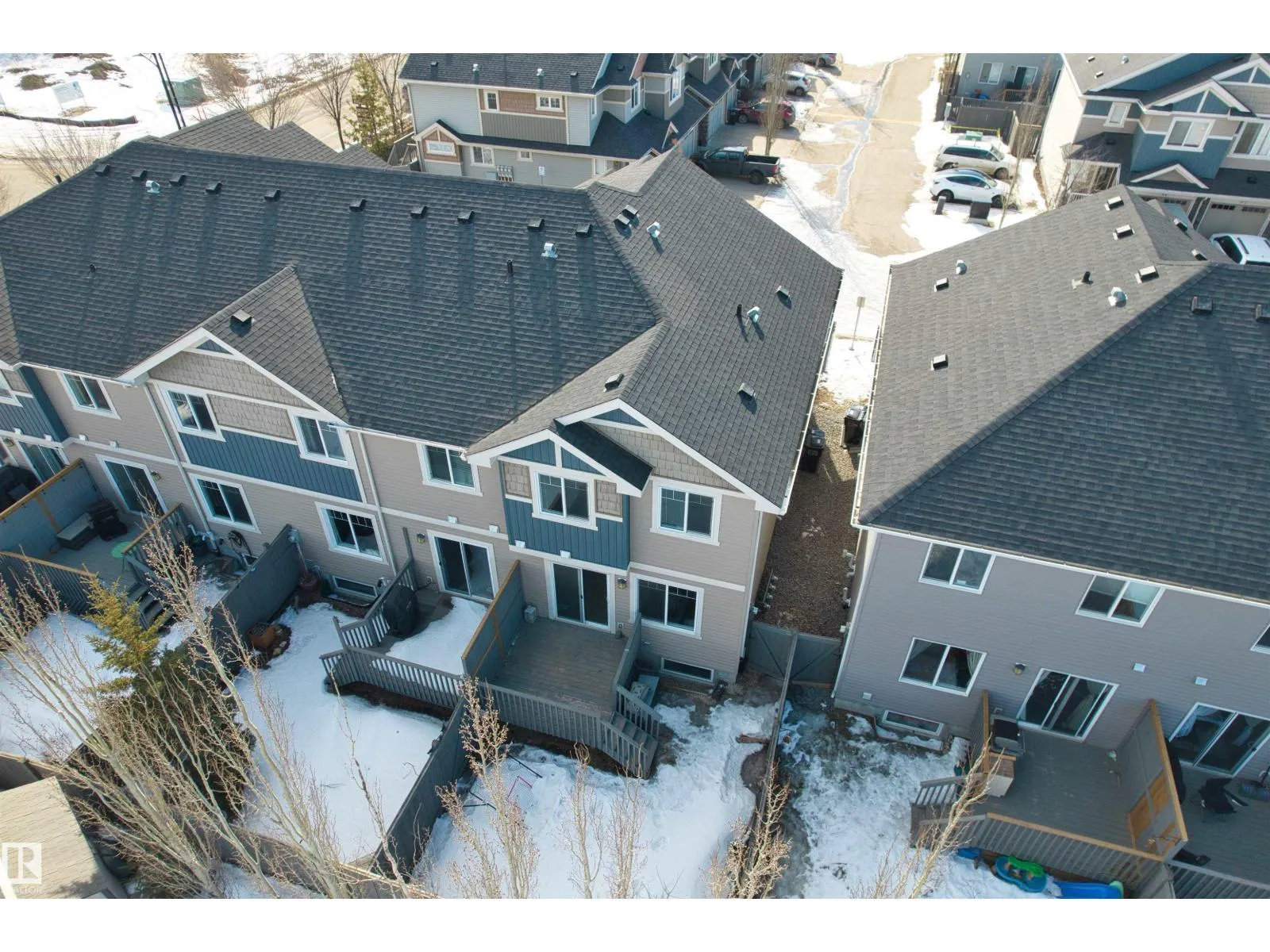 Welcome to this beautifully maintained corner-unit townhome in Trumpeter, just minutes from the scenic Big Lake with its walking trails, wetlands, and abundant wildlife. Enjoy peaceful living surrounded by nature while still having convenient access to city amenities.This well-kept home features 3 bedrooms and 2.5 bathrooms, with hardwood flooring throughout the main floor and a bright, functional layout ideal for modern living. The main living area flows seamlessly to the full rear deck and fenced yard, Even better, the condo fees cover yard maintenance, making outdoor living easy and low-maintenance.Upstairs offers 3 bedrooms, while the fully finished basement provides additional living space with a recreation room.As a corner unit, this property enjoys extra privacy and additional natural light, making it a standout in the complex. A fantastic opportunity for first-time buyers, families, or investors looking for a low-maintenance home in a nature-inspired northwest Edmonton community. (id:27476)