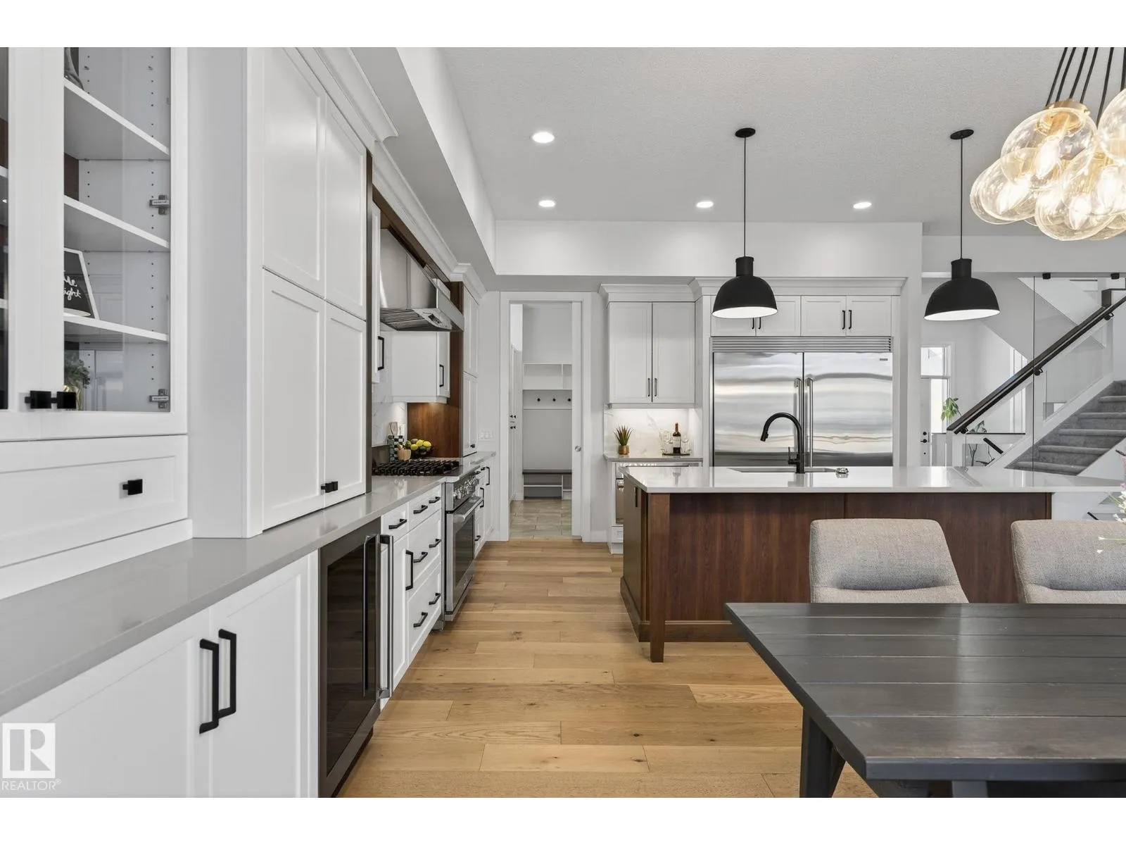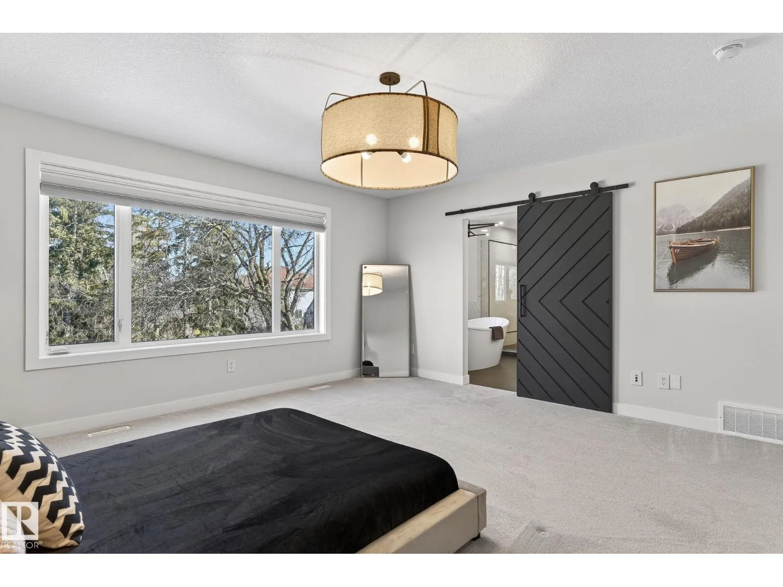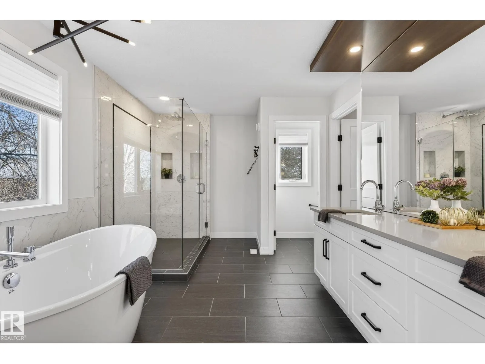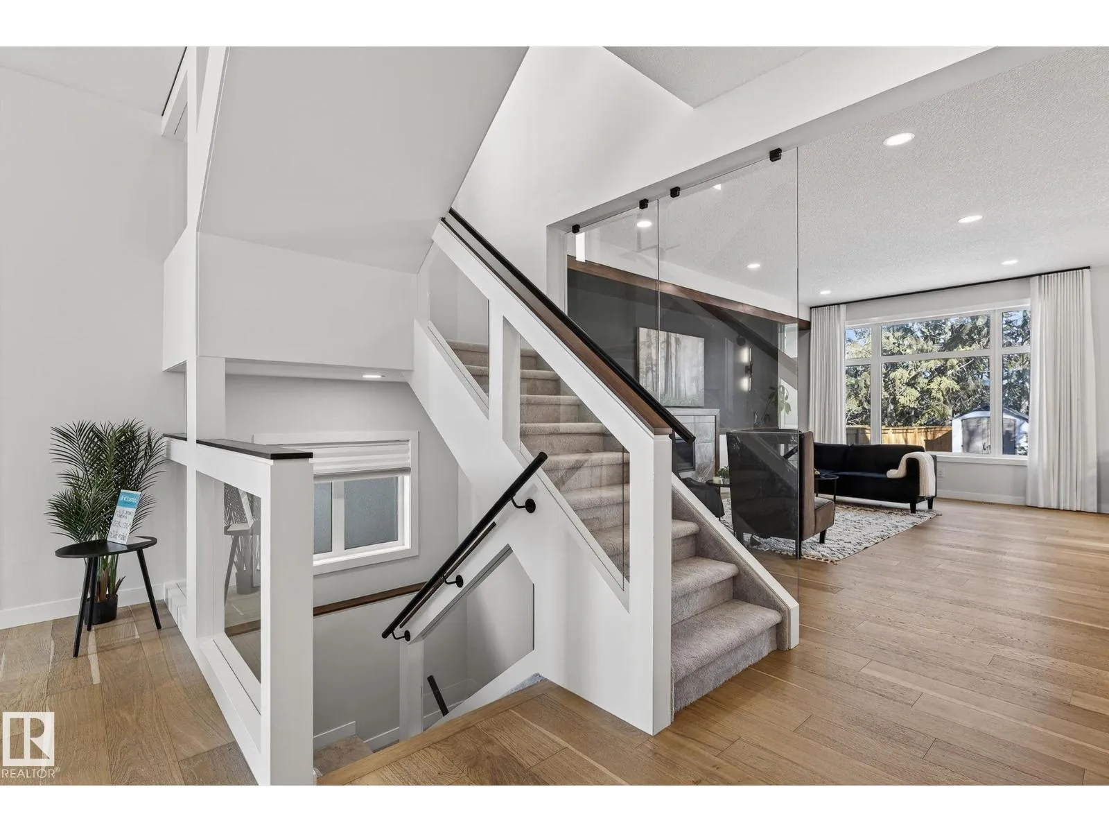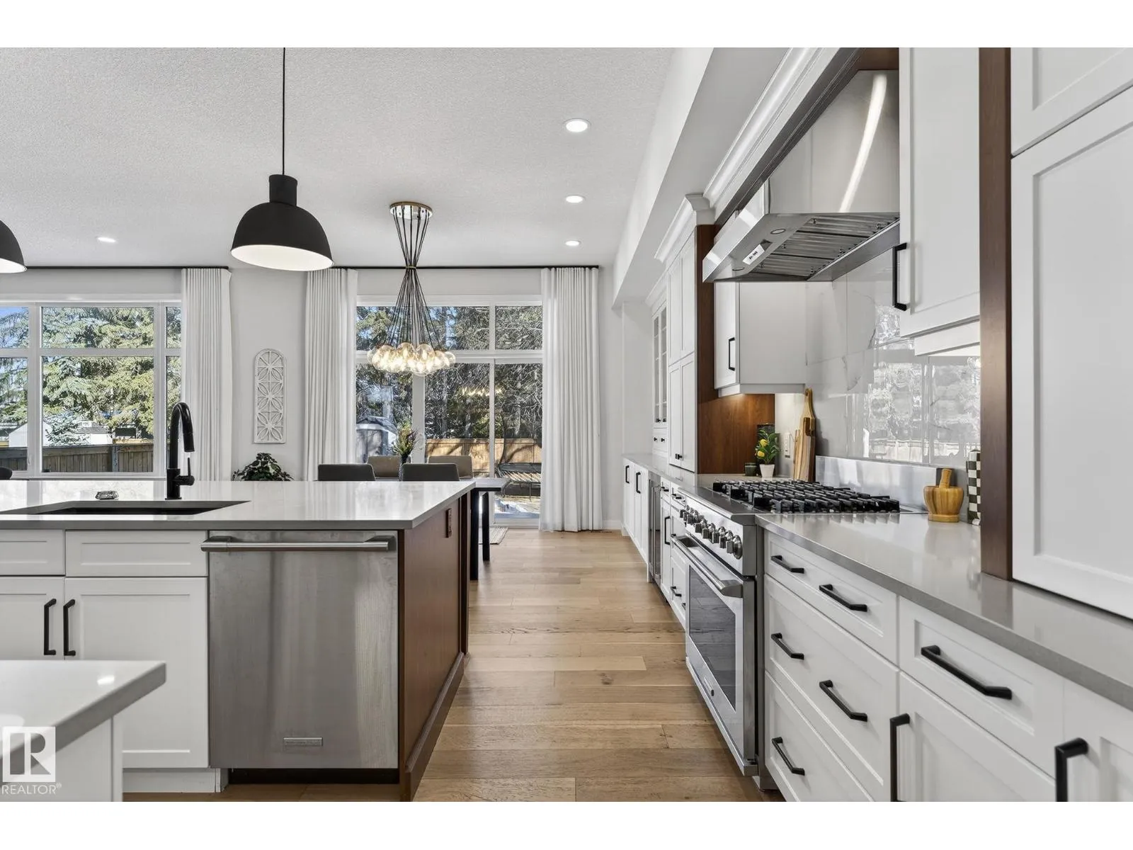 The Creme de la creme of Pleasantview! This stunning 2900' home on a 39x150' lot is nothing short of amazing! From the elegant design to the exquisite detailing & finishings, this generously upgraded Ace Lange built home has it all! Close to everything like Southgate Mall, LRT & minutes to U Of A, U, Royal Alex & Grey Nuns Hospitals! Loads of windows, separate side entrance from garage to f/fin basement. 10' ceiling & 8' ft doors on main which boasts an inviting 2 sty high foyer. Spacious den w/barn door. Living room has feature wall & linear gas F/P. A chef's delight w/ample cabinets, great appliances & huge island. Bright & cheery dining area. Large picturesque windows overlooking a private yard. Powder room next to mud room w/tons of cabinets. Upstairs features a sunlit gigantic family room w/vaulted ceilings. King size Master retreat has lavish ensuite & queen size closet. 2 more bedrooms w/jack & Jill bath & w/in closets. Laundry room. Basement has mirror exercise area, rec room, bedroom & nice bath. (id:27476)