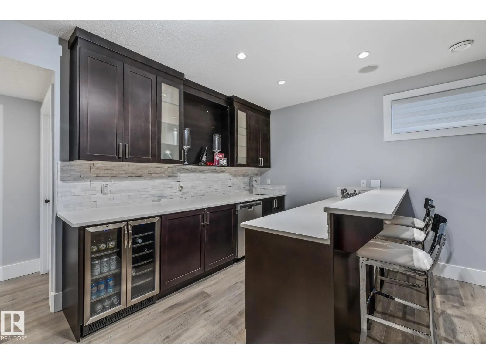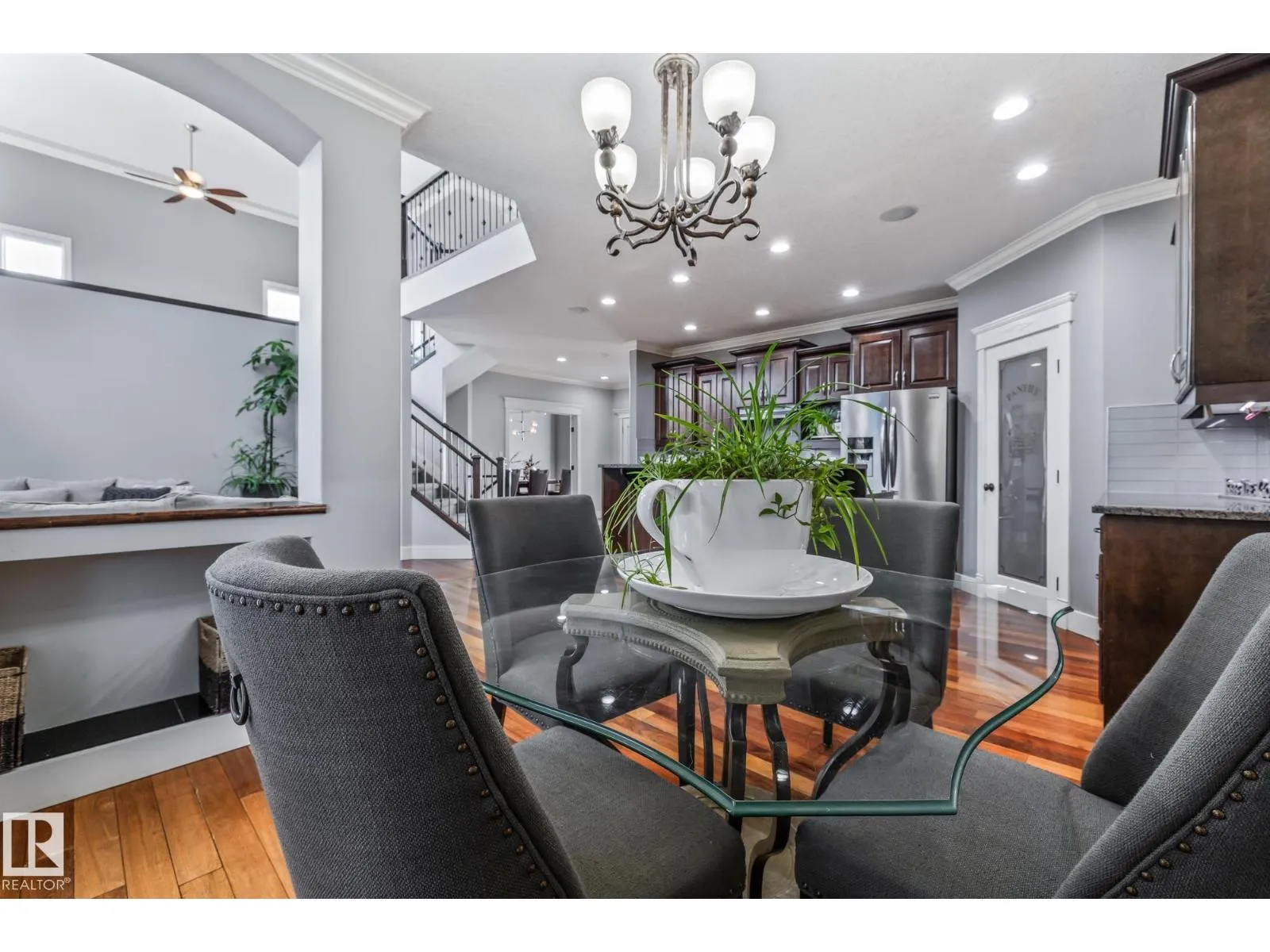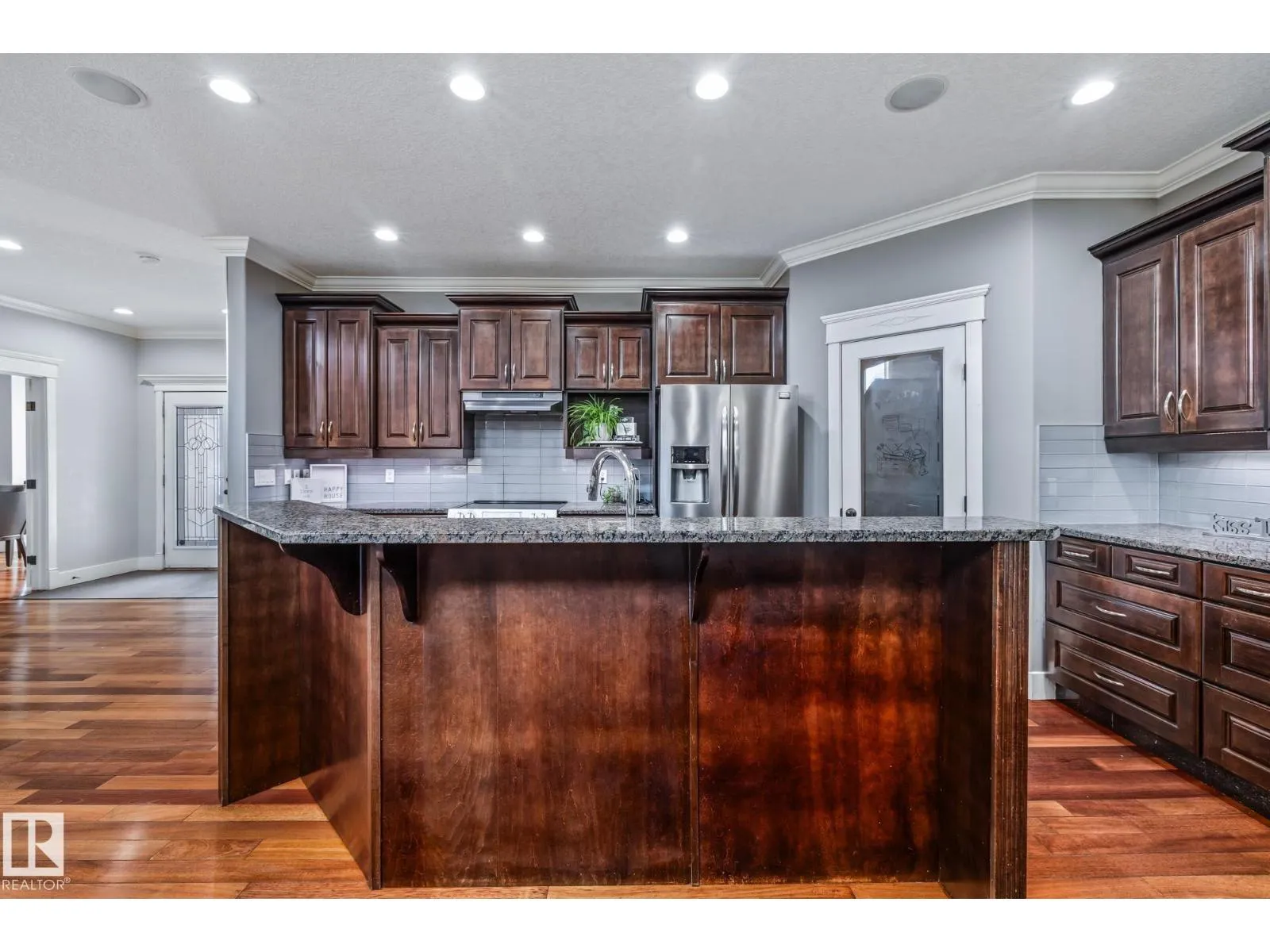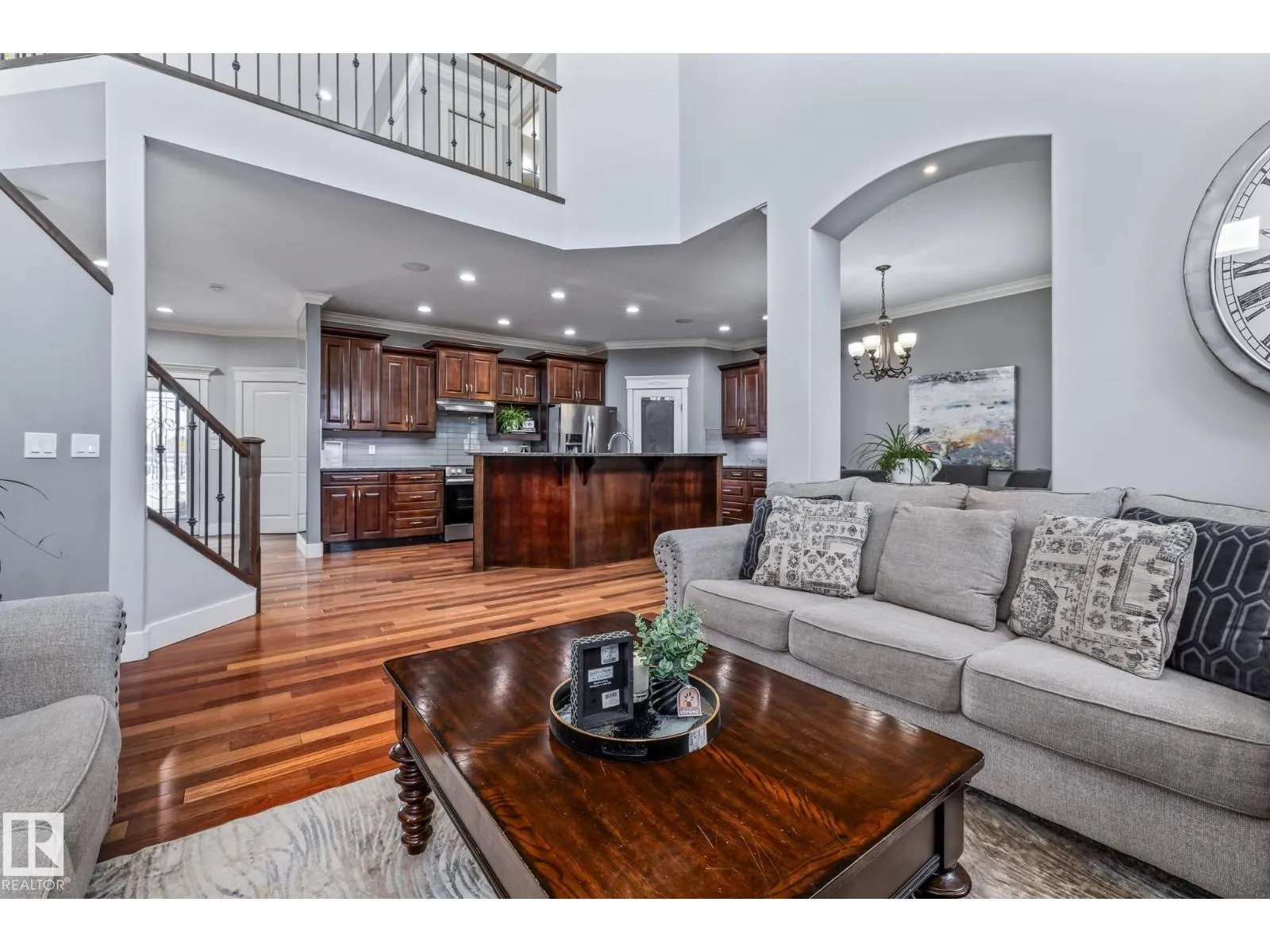 Stunning custom 5-level split with just under 4,000 sq ft of total living space in prestigious Richford. Full of character, craftsmanship, and elegant design, featuring 9 ft ceilings, stained maple hardwood, and large windows. Main floor offers a cozy family room with gas fireplace, chefâs kitchen with granite countertops, stainless appliances, maple cabinetry, under-cabinet lighting, huge pantry, breakfast nook, den/formal dining, and 2-pc bath. Upper levels include bonus room, luxurious primary suite with spa-like 5-pc ensuite and 3-sided gas fireplace, two additional bedrooms, 4-pc bath, and laundry. Fully finished basement (2024) with bar, bedroom, and full bath ideal for entertaining guests. Triple attached garage, 50-year shingles, newer HWT, acrylic stucco, fully landscaped fenced yard, and exquisite curb appeal. Perfect for families or professionals seeking space, style, and comfort. Minutes to South Edmonton Common, airport, and major commuter routes, combining luxury living with convenience. (id:27476)