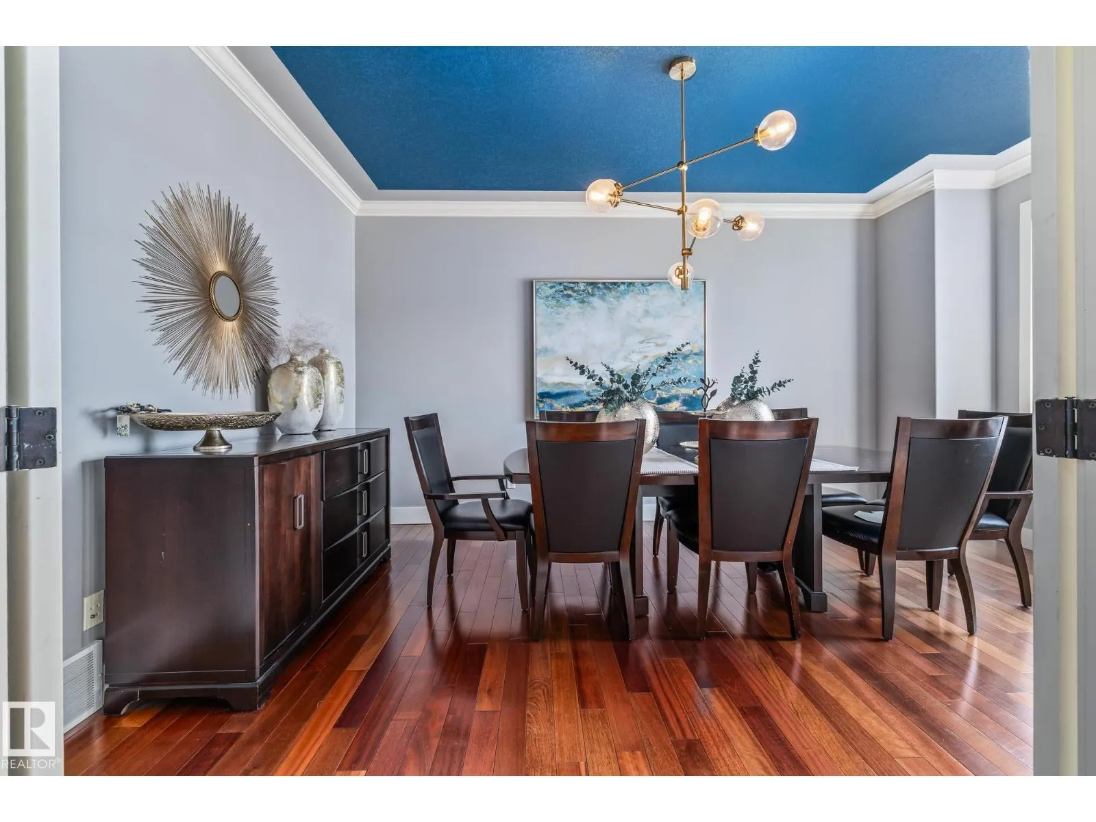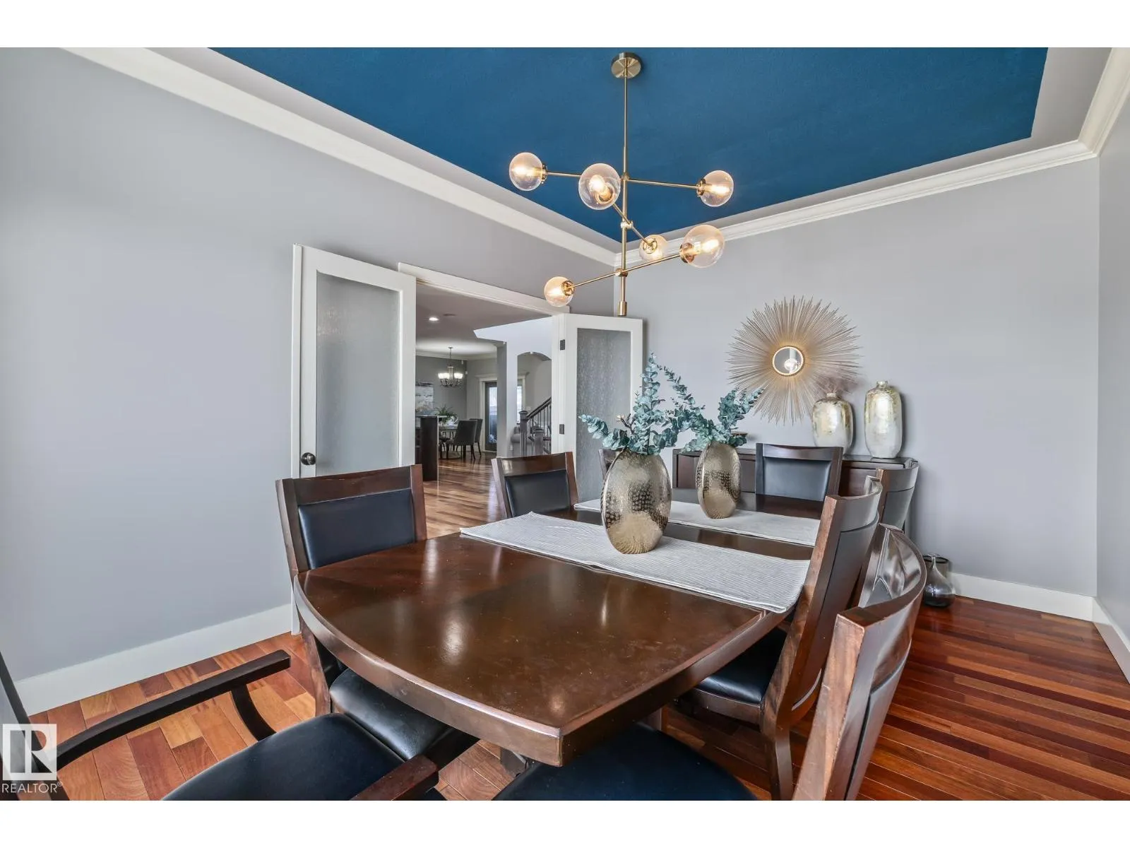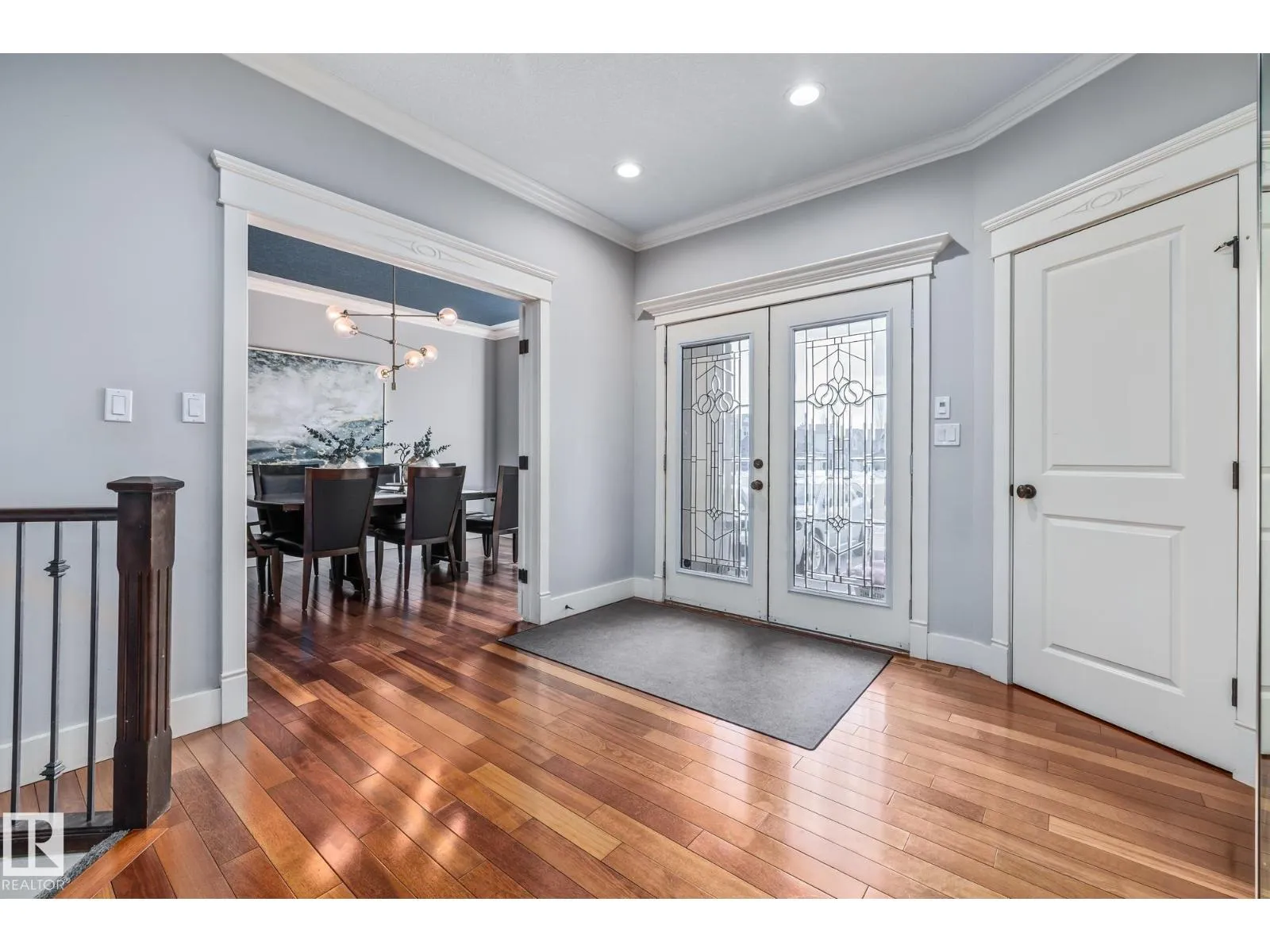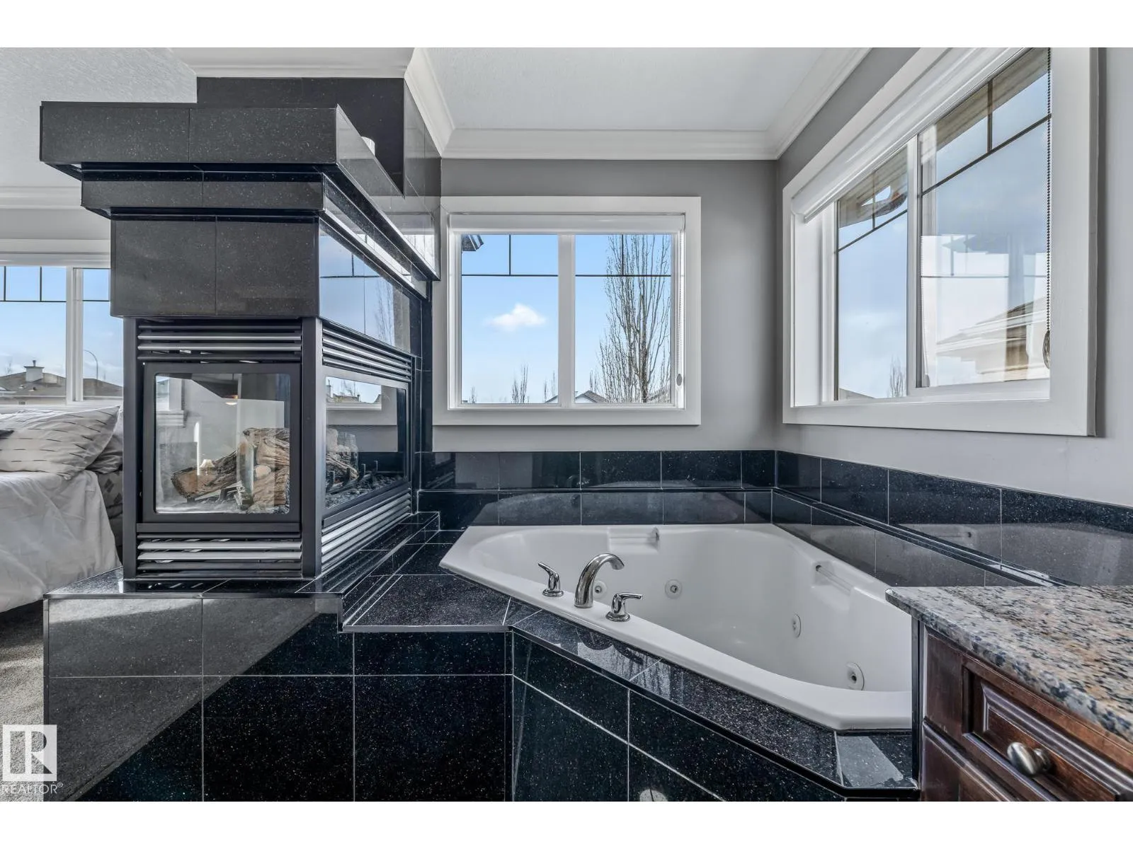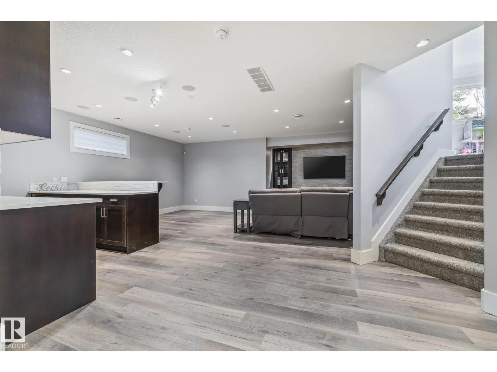 Stunning custom 5-level split with just under 4,000 sq ft of total living space in prestigious Richford. Full of character, craftsmanship, and elegant design, featuring 9 ft ceilings, stained maple hardwood, and large windows. Main floor offers a cozy family room with gas fireplace, chefâs kitchen with granite countertops, stainless appliances, maple cabinetry, under-cabinet lighting, huge pantry, breakfast nook, den/formal dining, and 2-pc bath. Upper levels include bonus room, luxurious primary suite with spa-like 5-pc ensuite and 3-sided gas fireplace, two additional bedrooms, 4-pc bath, and laundry. Fully finished basement (2024) with bar, bedroom, and full bath ideal for entertaining guests. Triple attached garage, 50-year shingles, newer HWT, acrylic stucco, fully landscaped fenced yard, and exquisite curb appeal. Perfect for families or professionals seeking space, style, and comfort. Minutes to South Edmonton Common, airport, and major commuter routes, combining luxury living with convenience. (id:27476)