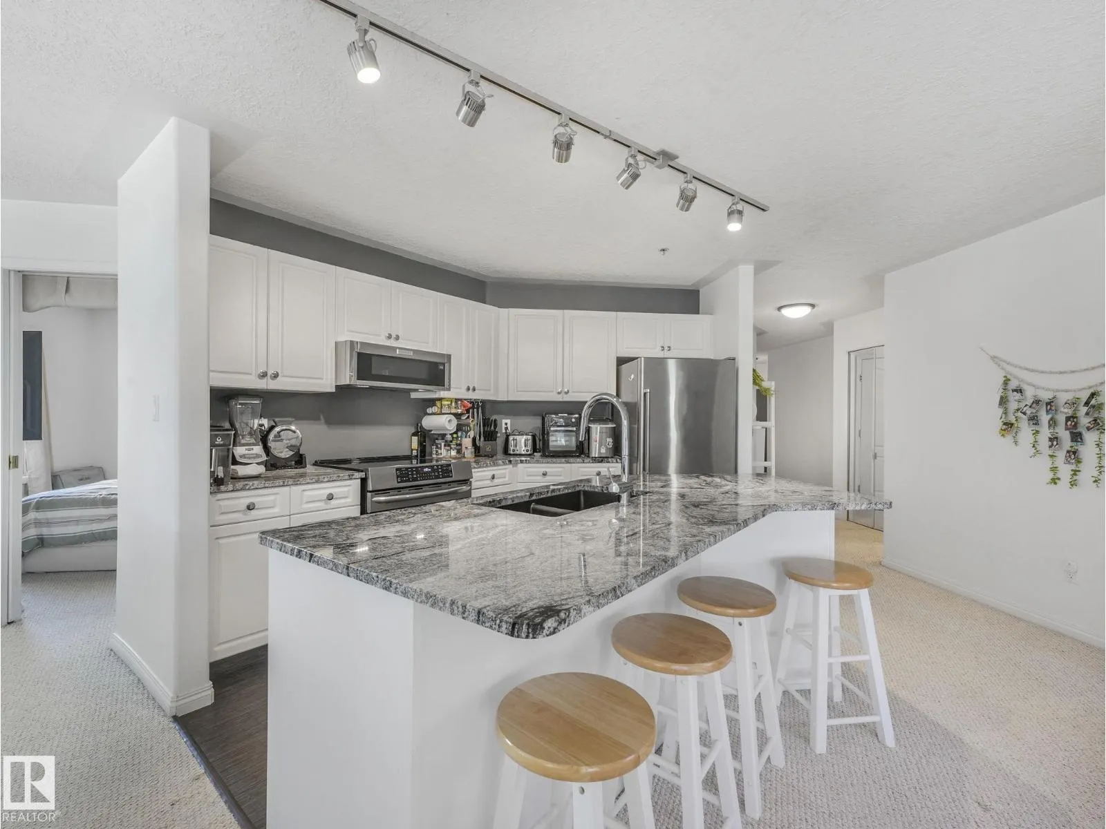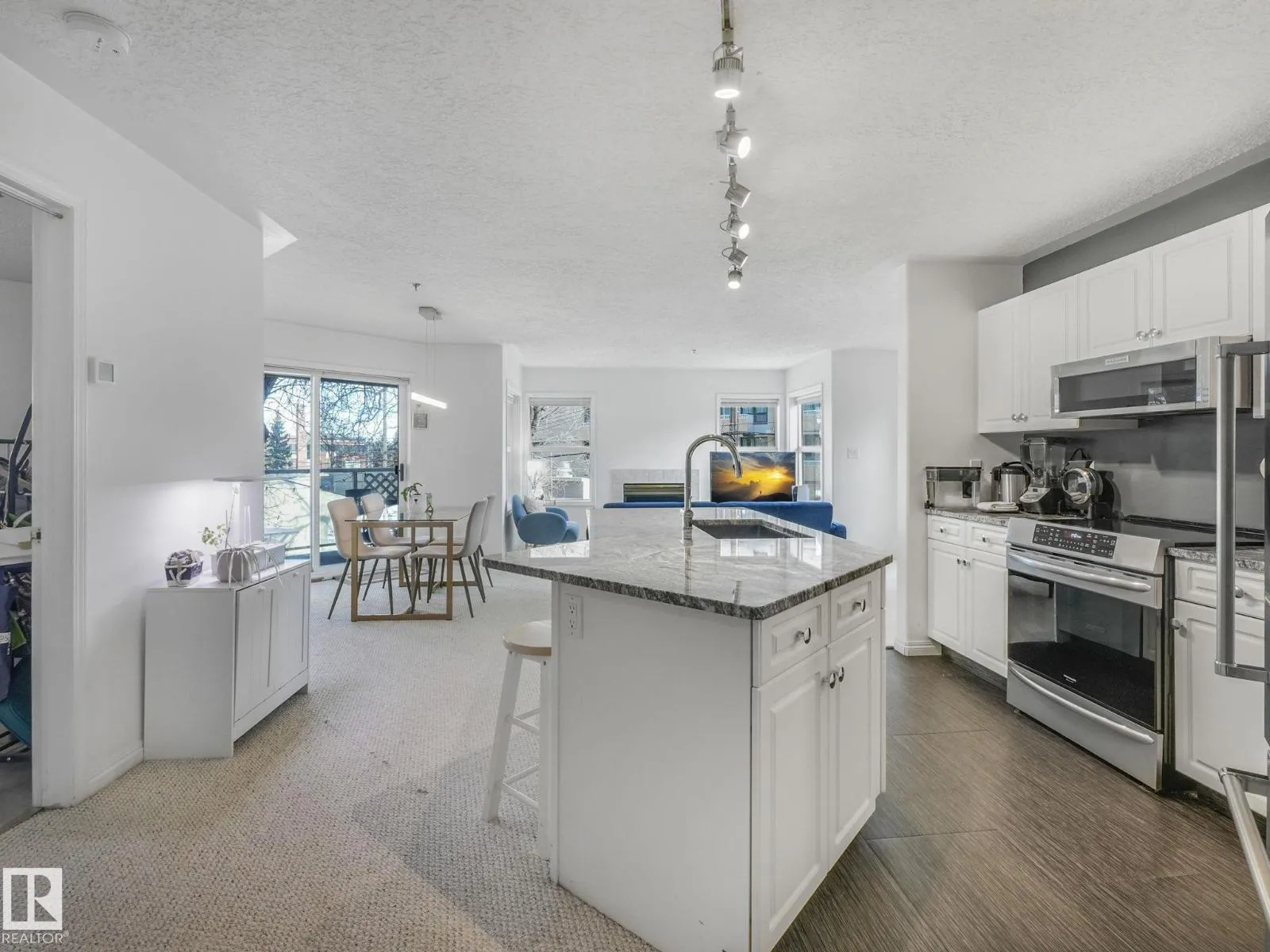 Experience the ultimate urban lifestyle in this bright corner-unit condo located in the vibrant Wîhkwêntôwin neighbourhood. Expansive north and east facing windows allow tons of natural light to fill every corner of the home, creating an airy and welcoming atmosphere. The heart of the residence is an upgraded kitchen featuring, stainless steel appliances, stone countertops, and modern finishes. This spacious layout includes a large living area that transitions seamlessly into the dining space. Two generous bedrooms and two updated full bathrooms provide comfort and privacy, including a primary suite with its own private ensuite. Modern conveniences include in-suite laundry and a secure, underground heated parking stall to protect your vehicle from the Alberta winter. Located just steps from local boutiques, diverse dining, and essential shopping. With excellent access to schools and public transit, this home perfectly connects you to the best of Edmonton. (id:27476)