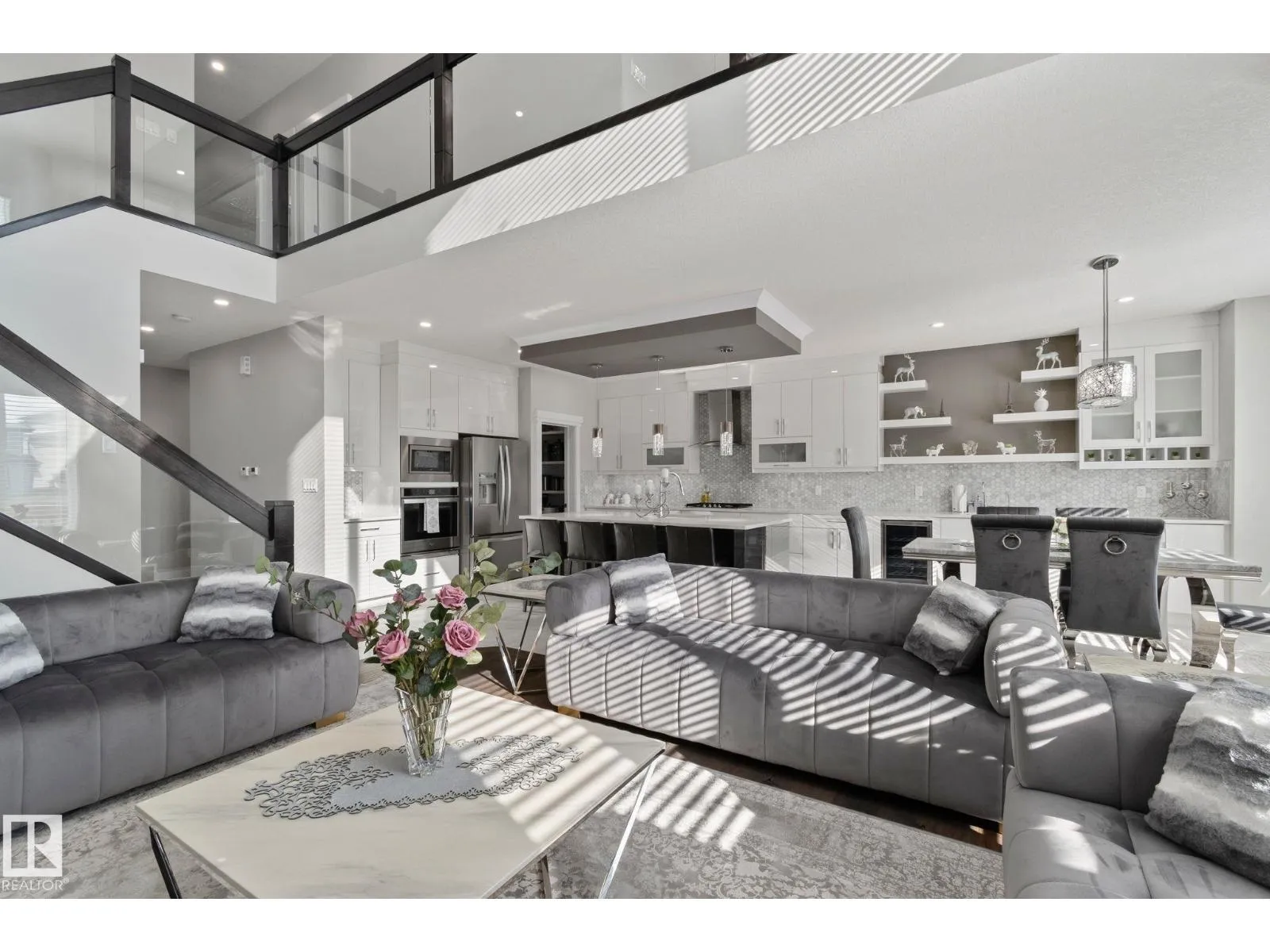 Space, light, and flexibility come together in this beautifully designed Glenridding Heights home offering 3,593 sq ft on all floors plus a fully finished basement. The welcoming entry opens to a bright main floor where large windows, modern tile flooring, and a striking fireplace create a warm gathering space. The kitchen is built for everyday living with quartz countertops, a large island, custom cabinetry, and a convenient walk-through pantry connecting to the mudroom. A main-floor den provides the perfect home office or quiet workspace. Upstairs, the bonus room offers space for movie nights or kidsâ play area, while the spacious primary bedroom features a relaxing 5-piece ensuite. Two additional bedrooms and another full bath complete the upper level. Downstairs, the finished basement with second kitchen and separate entrance adds valuable flexibility for extended family or guests. The home also includes a 4.86 KW solar system, helping reduce monthly energy costs while adding long-term value. (id:27476)