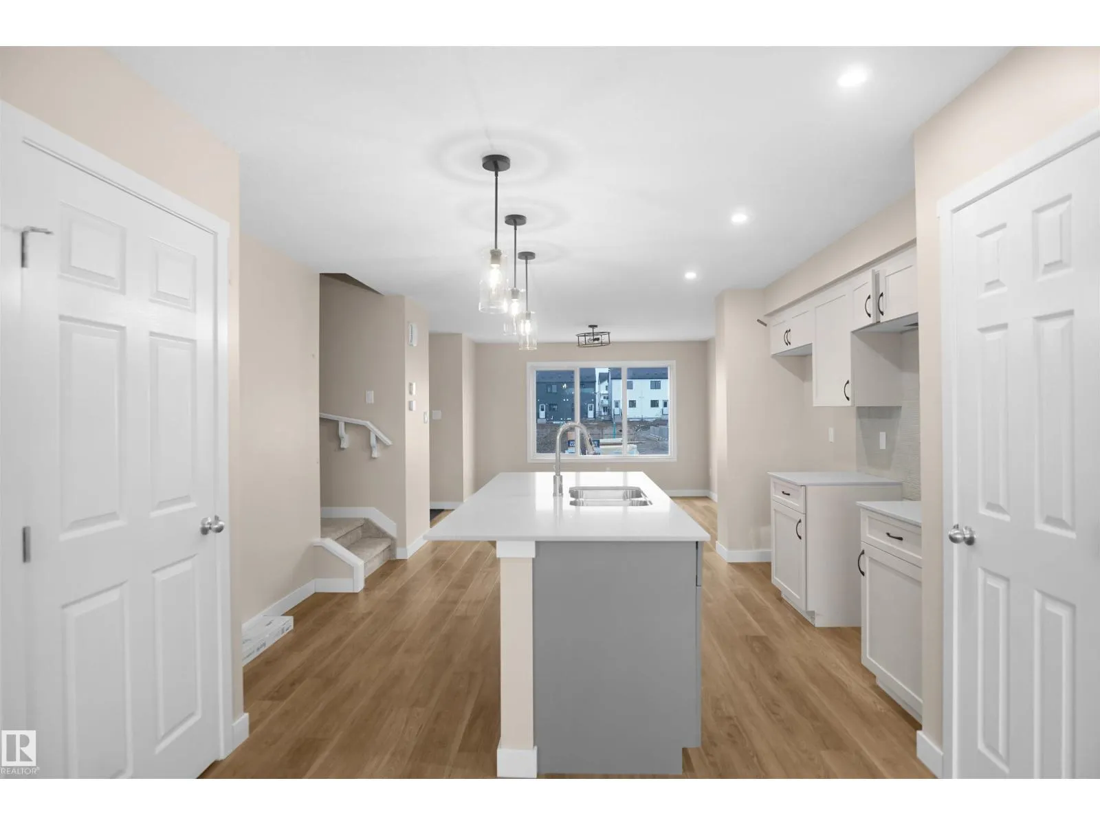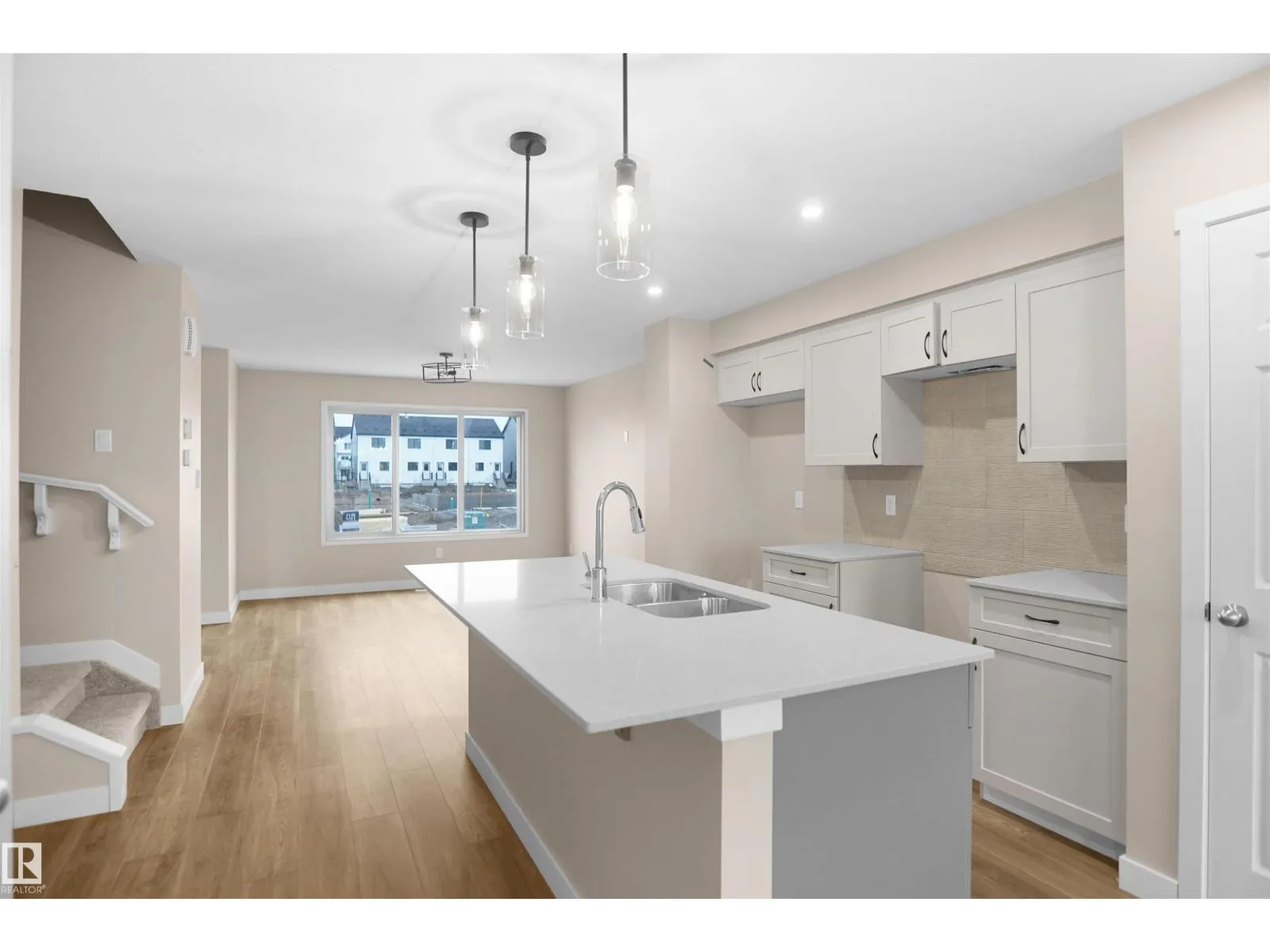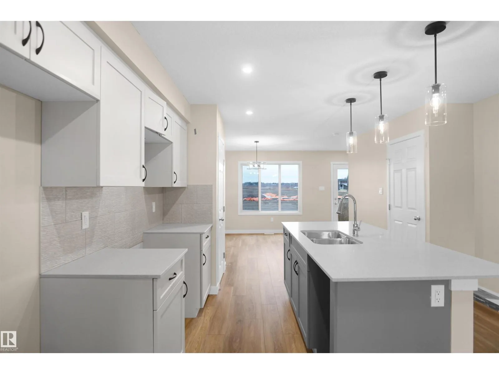 Welcome to this brand new half duplex the âDakota Dâ Built by the award winning builder Pacesetter homes and is located in one of Edmonton's newest north east communities of Marquis. With over 1390 square Feet, this opportunity is perfect for a young family or young couple. Your main floor as you enter has a large living area with a center kitchen perfect for entertaining that's wide open to the dining/nook area. The main floor has luxury vinyl plank through and an upgraded kitchen with quartz counter tops. The second level has a the 3 good size bedrooms and 2 full bathrooms with the stackable laundry area. This duplex also comes with a an oversized detached parking pad. *** Home is under construction photos used are from the same style home recently built to the colors and finishings may vary , to be complete by July 2026 *** (id:27476)