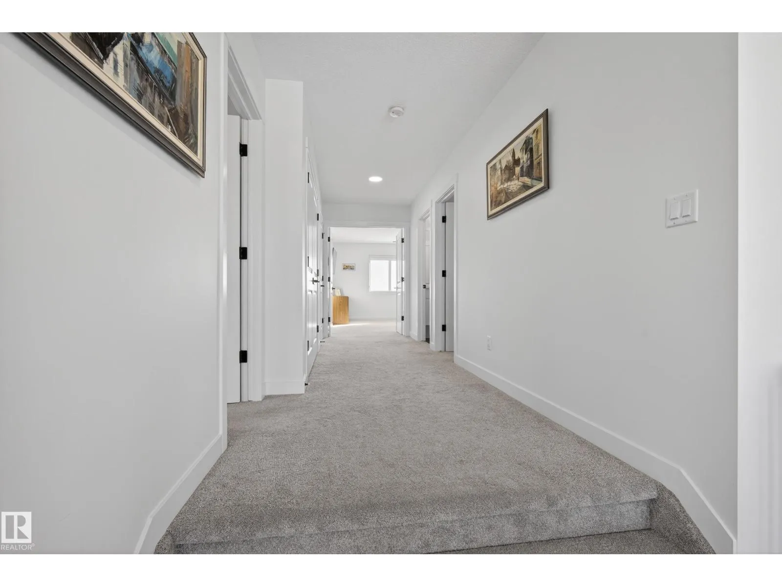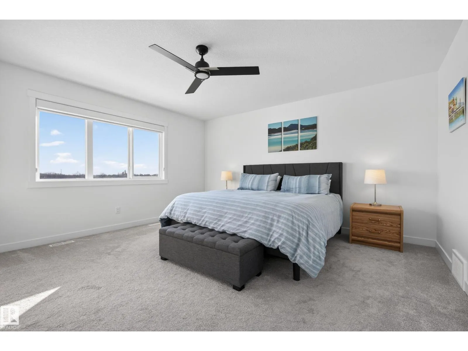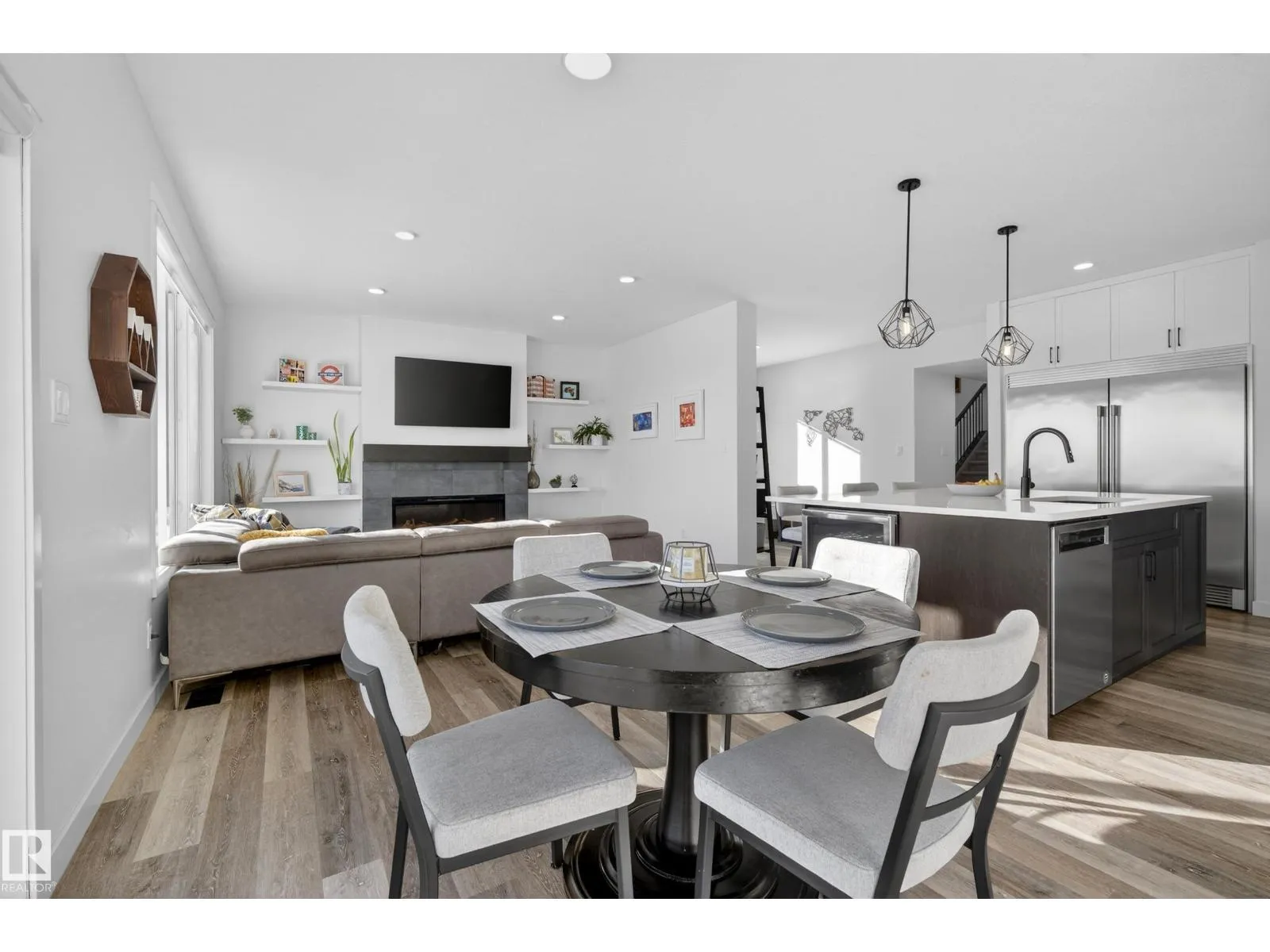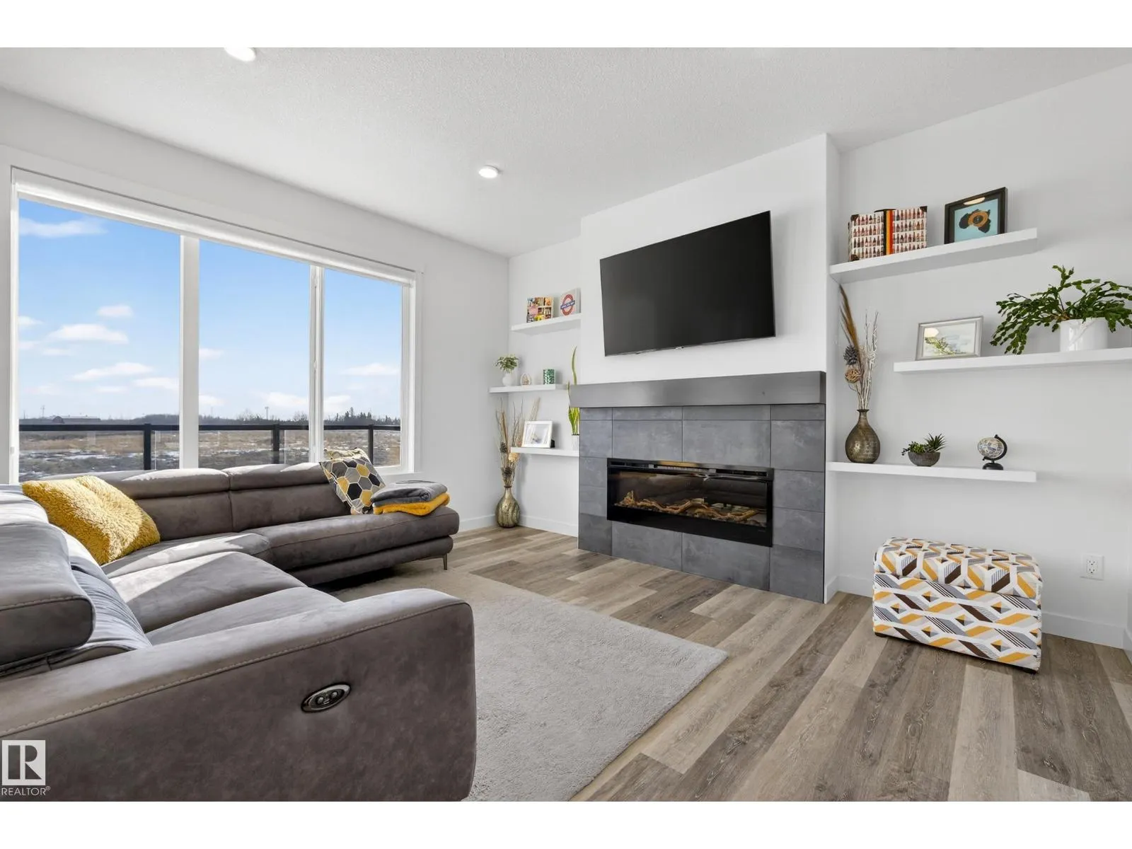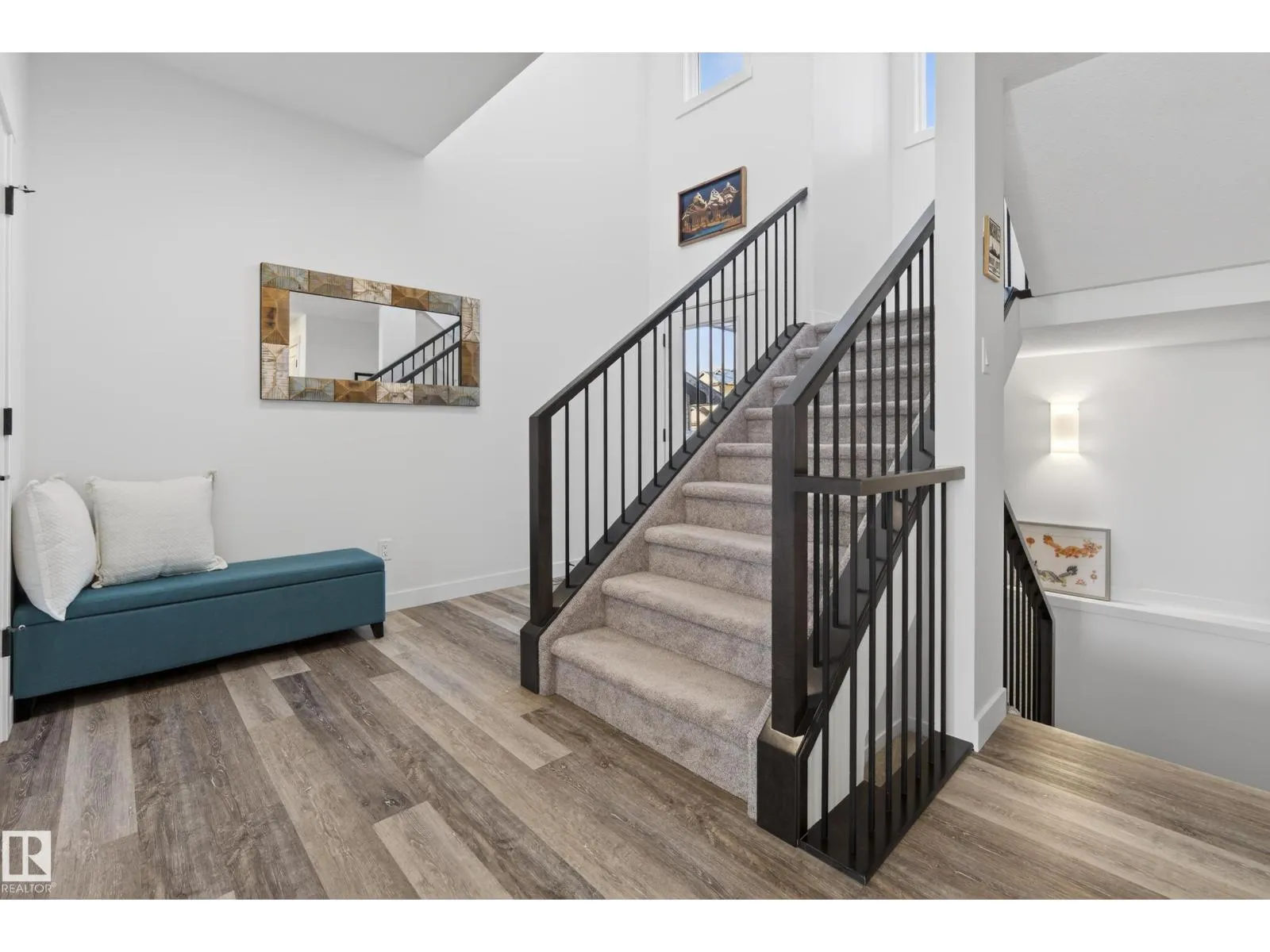 Rare pond-backing home on a quiet street with a walkout basement and double garage. The main floor features a beautiful kitchen with an oversized island, floor-to-ceiling cabinetry, butlerâs pantry, and massive 64-inch fridge/freezer. Just off kitchen is the impressive 10'x26' deck with glass railings, perfect for relaxing or entertaining while enjoying peaceful pond views and local wildlife. The inviting living room offers a cozy electric fireplace, while maple-stained railings lead upstairs to a bright vaulted bonus room. The upper level includes upgraded bathrooms with tile accents, quartz countertops, and floating cabinetry with under-cabinet lighting. The walkout basement with 9-ft ceilings adds a bedroom and great living space with a 90-inch projector screen for movie nights. Step outside to a 260 sq ft concrete patio with electrical roughed in for future hot tub and exterior stairs from the deck. Energy saving features include 6.2kW of solar panels and upgraded high-efficiency furnace and AC unit. (id:27476)